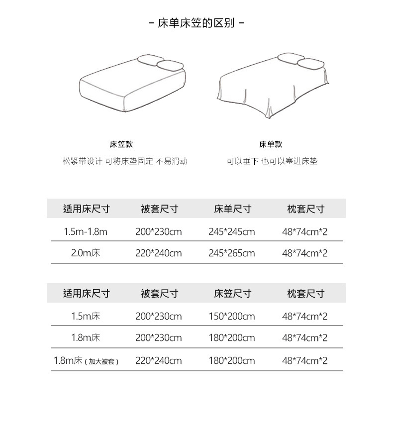 | 2.0m bed sheet four-piece set (recommended with 220 * 240cm duvet insert)(2.0m床单款四件套(建议搭配220*240cm被芯)) | USD $59.11 | 888 set available |