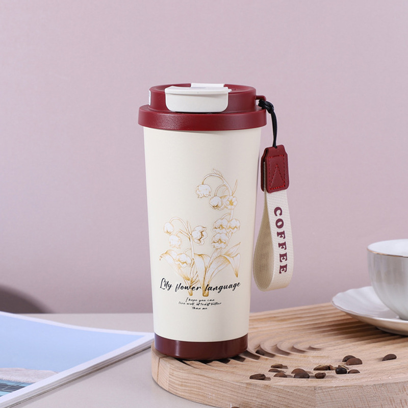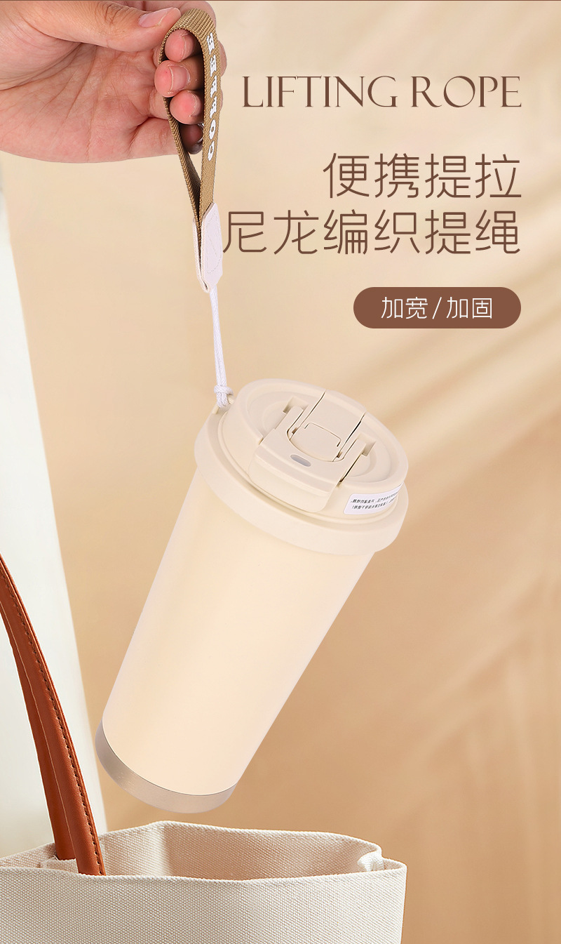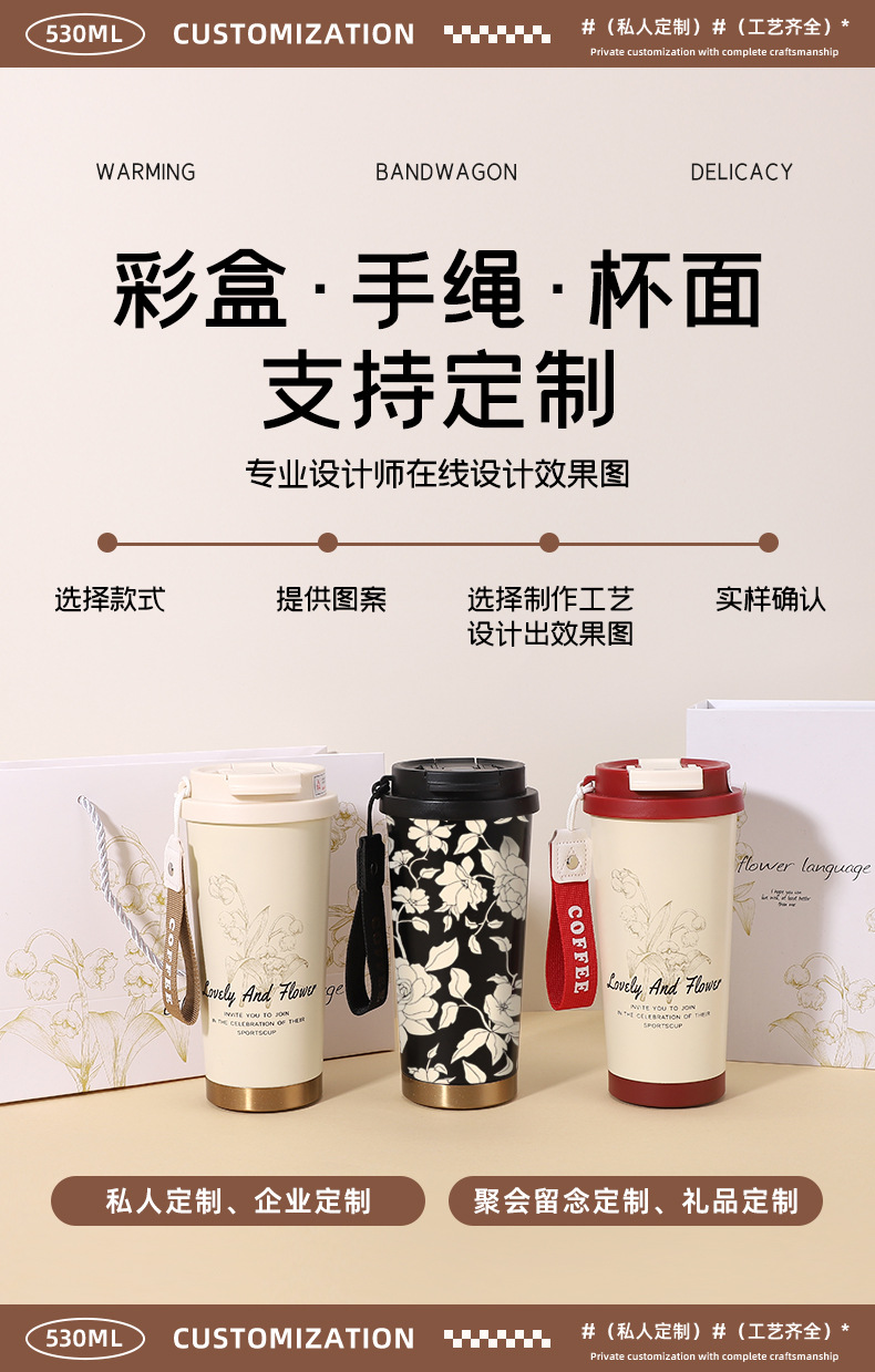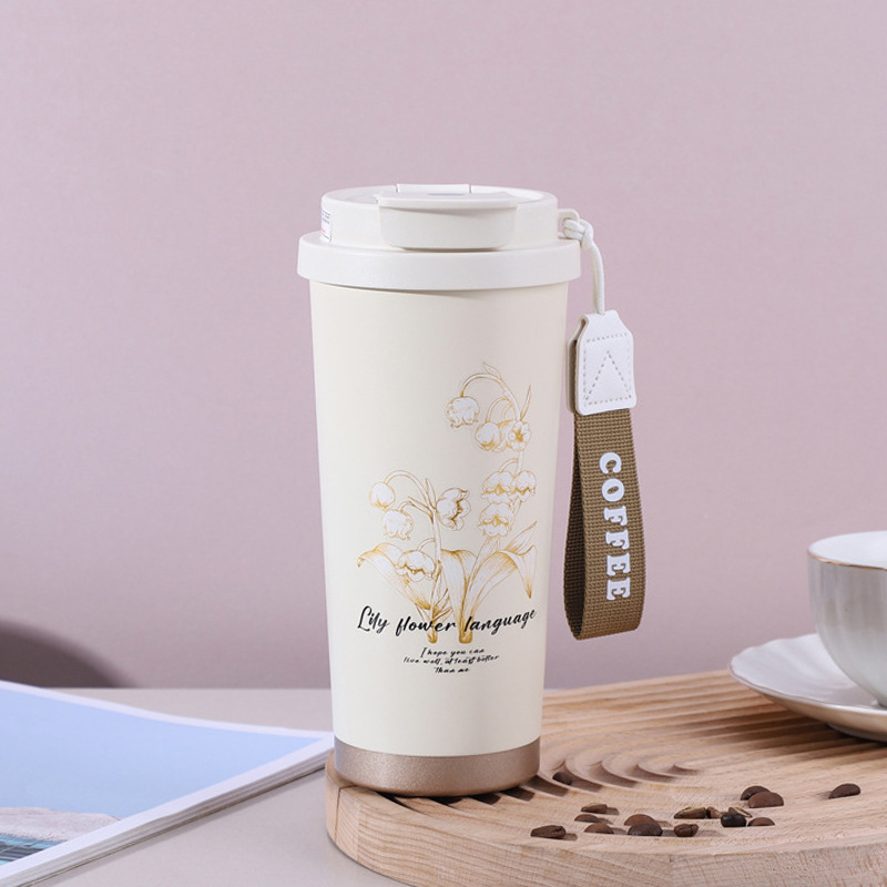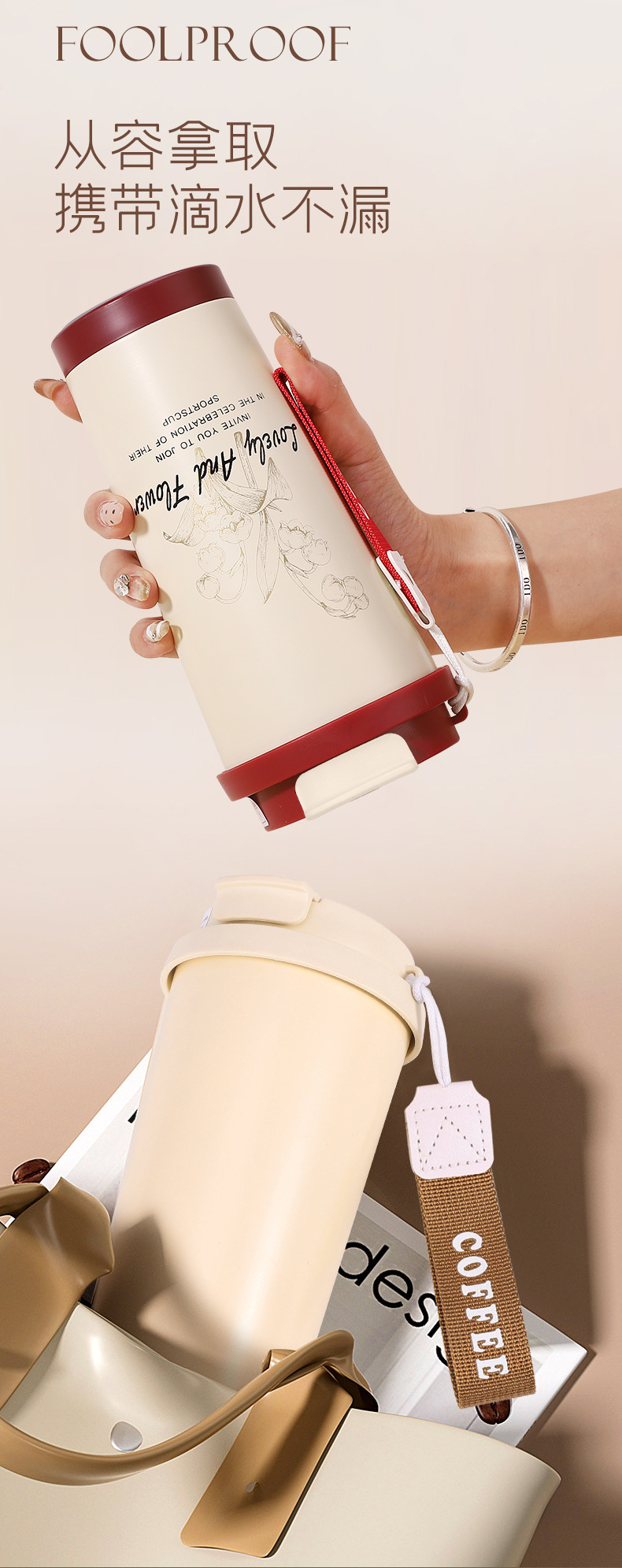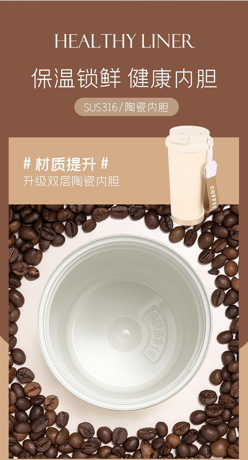 双饮铃兰不锈钢咖啡杯陶瓷内胆随行保温杯带提绳礼品水杯定制logo