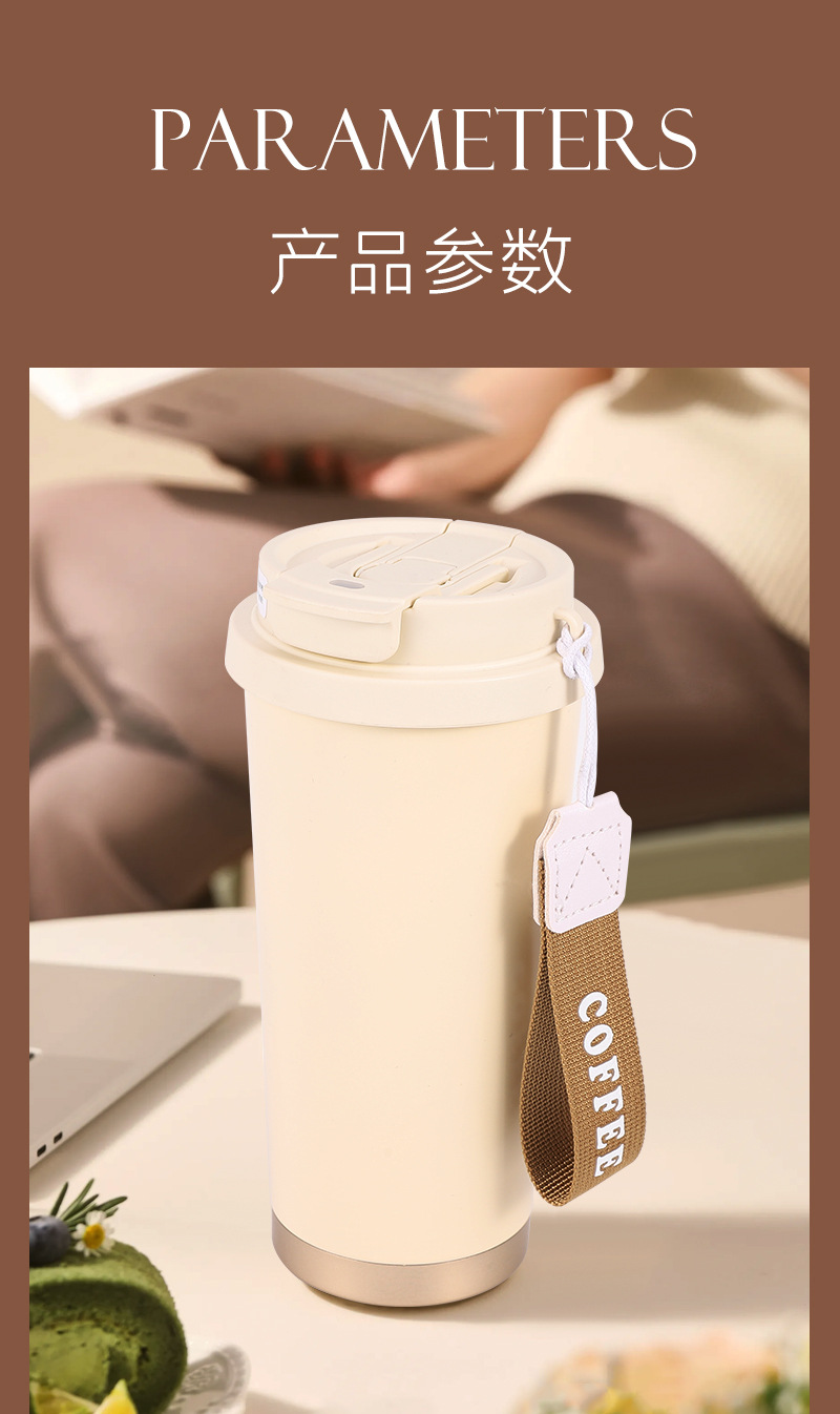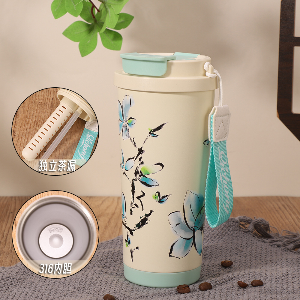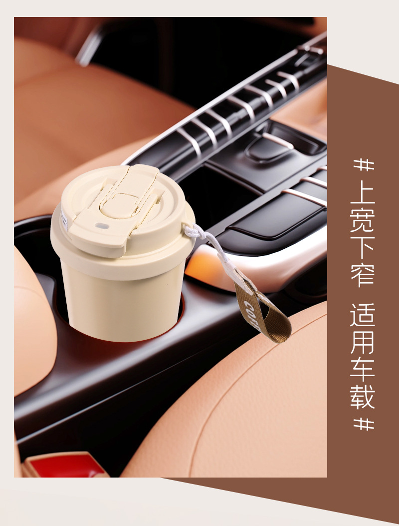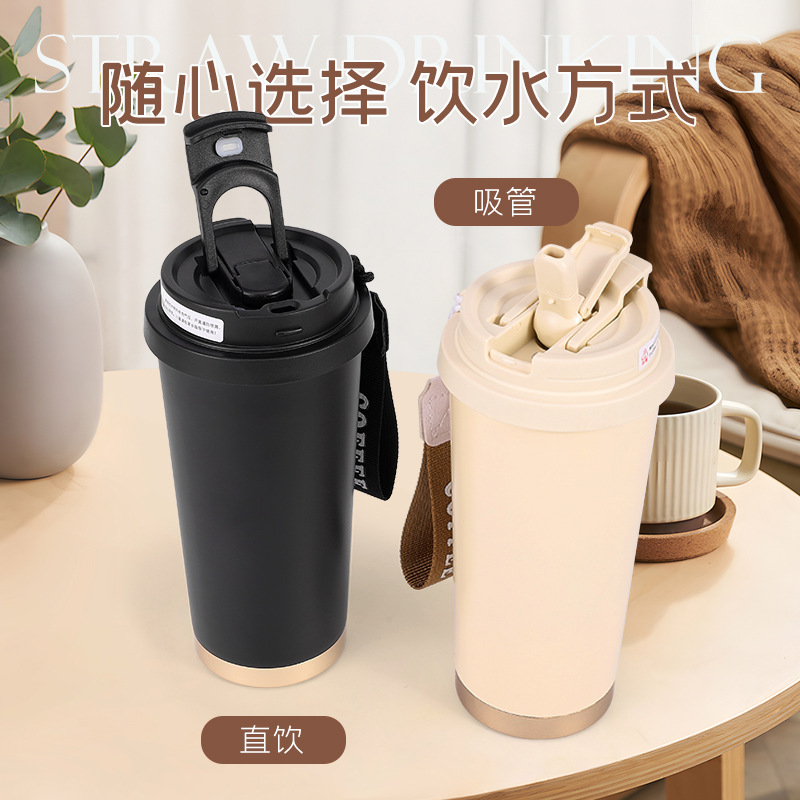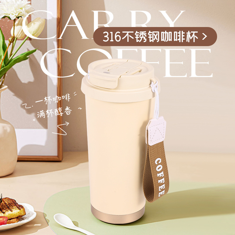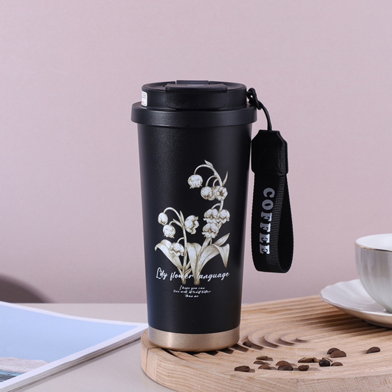 双饮铃兰不锈钢咖啡杯陶瓷内胆随行保温杯带提绳礼品水杯定制logo