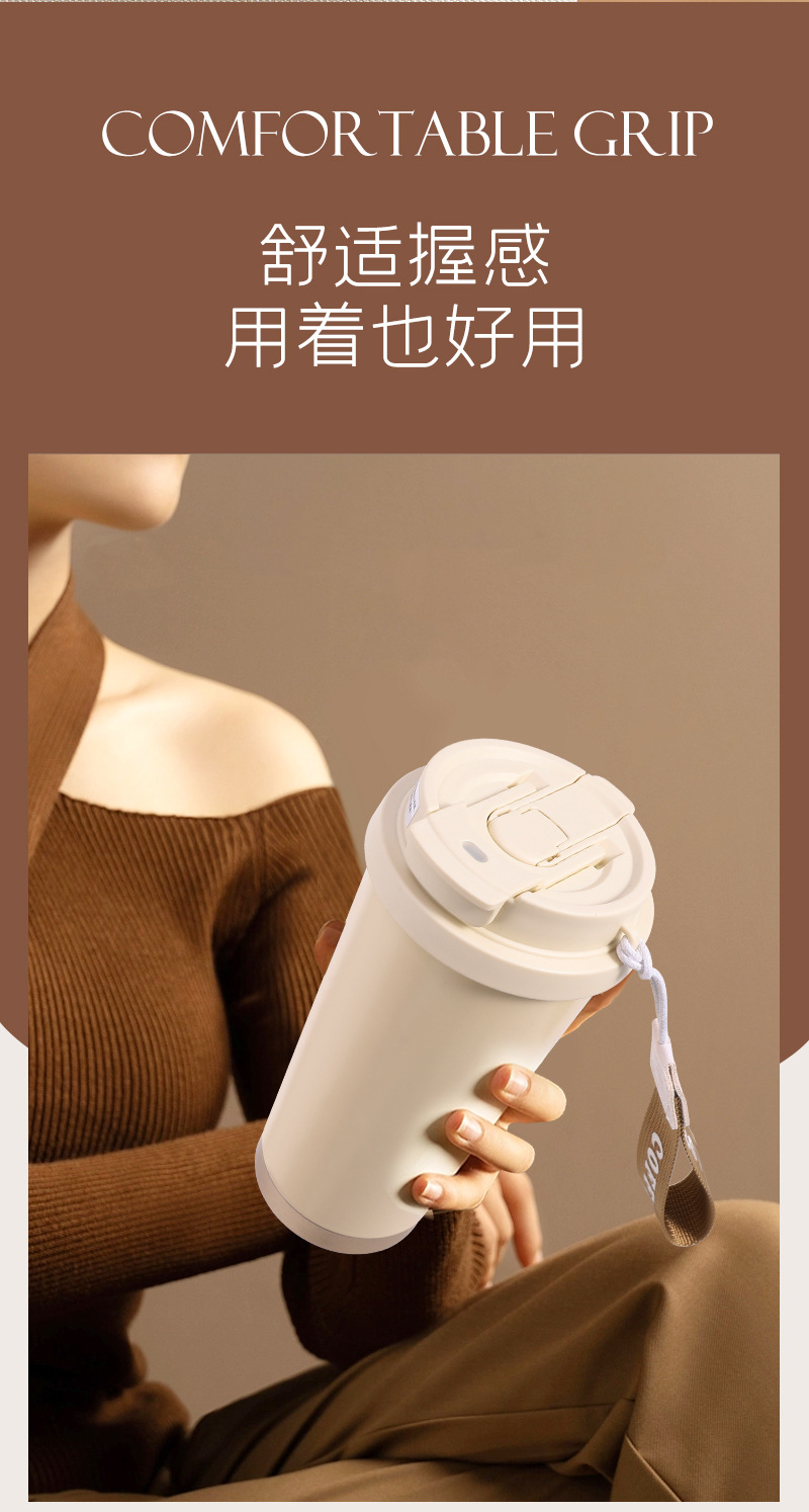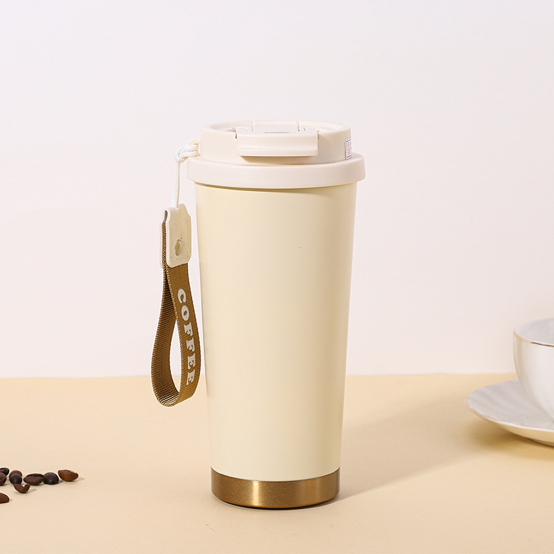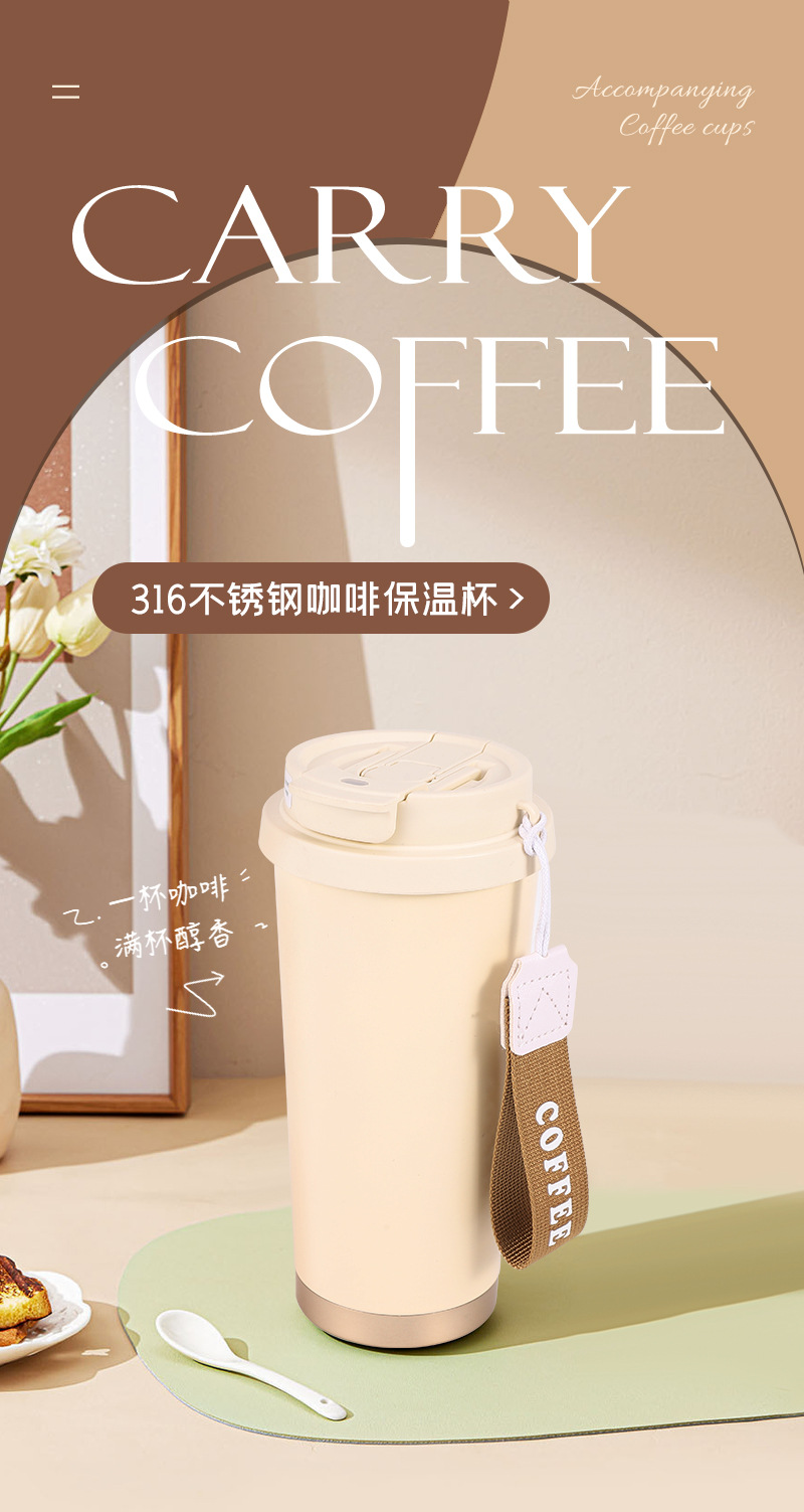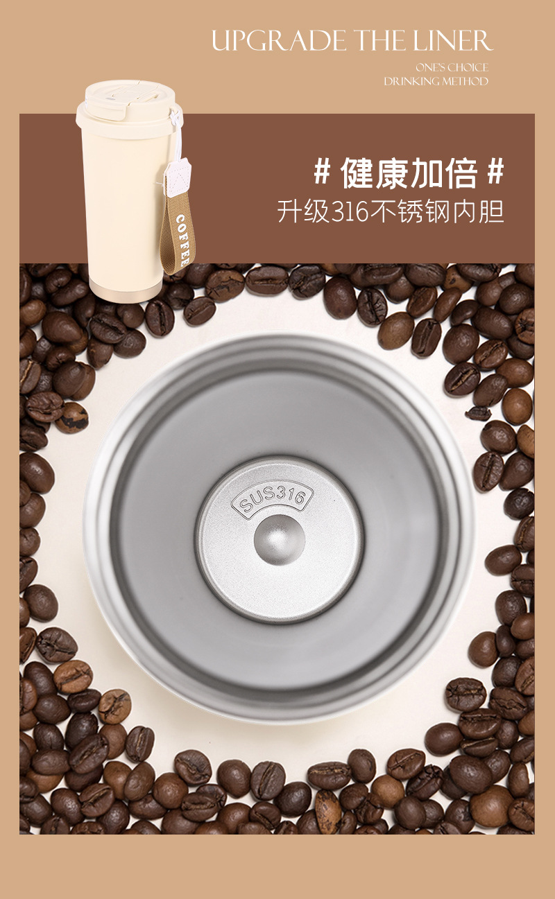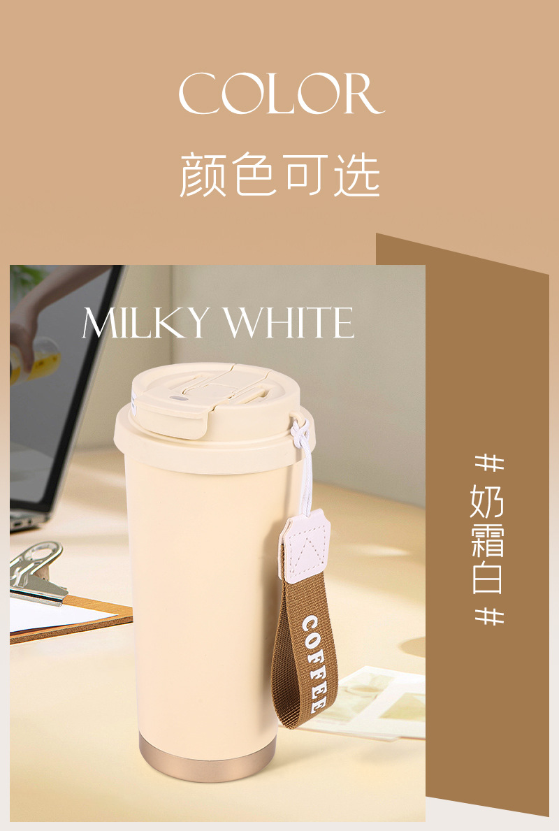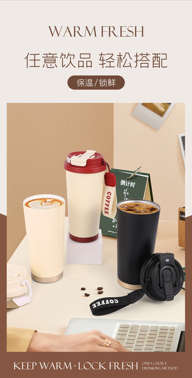 双饮铃兰不锈钢咖啡杯陶瓷内胆随行保温杯带提绳礼品水杯定制logo