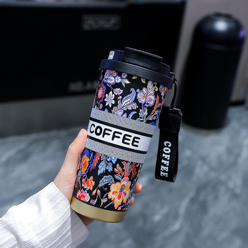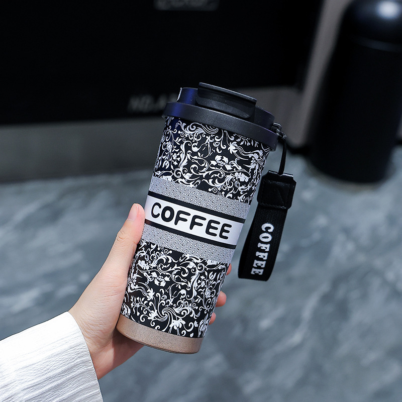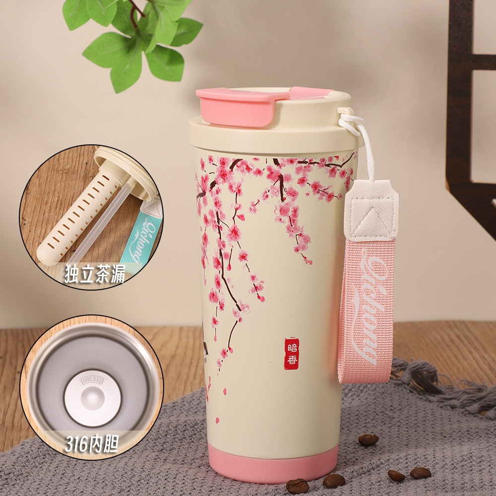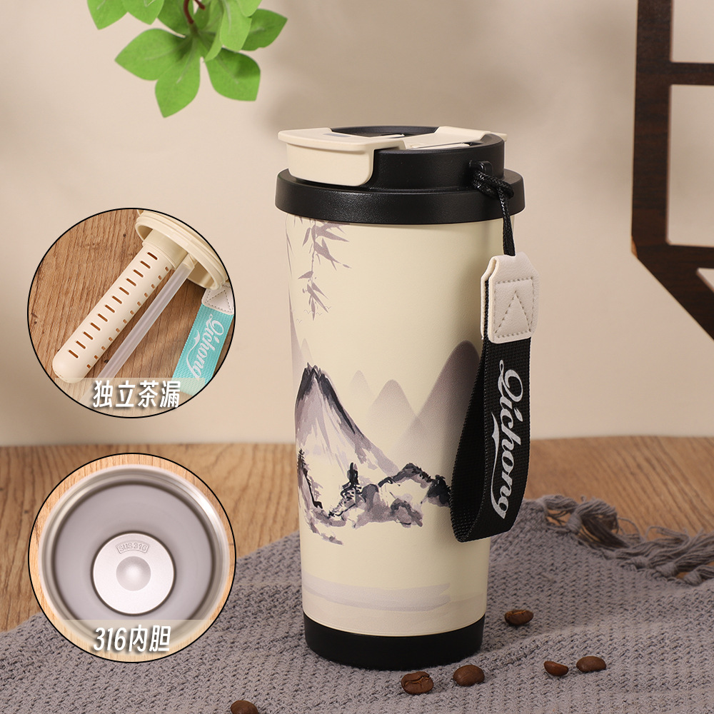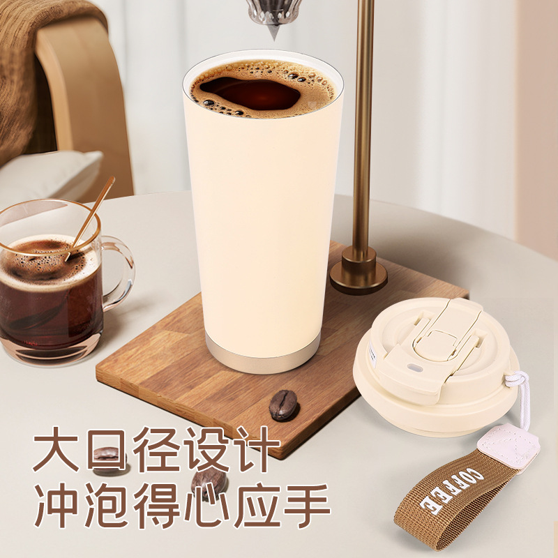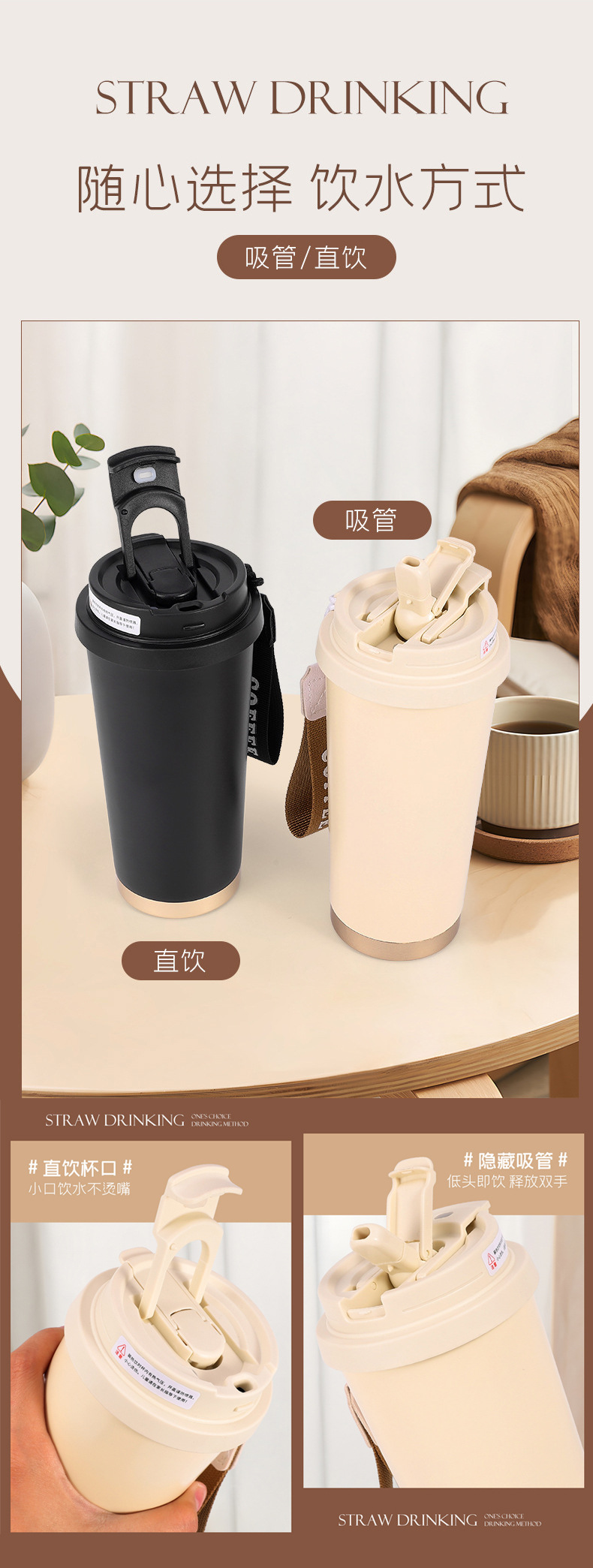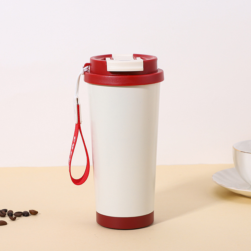 双饮铃兰不锈钢咖啡杯陶瓷内胆随行保温杯带提绳礼品水杯定制logo