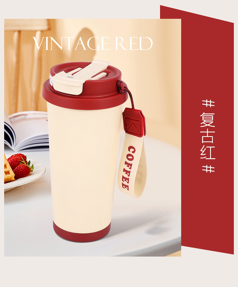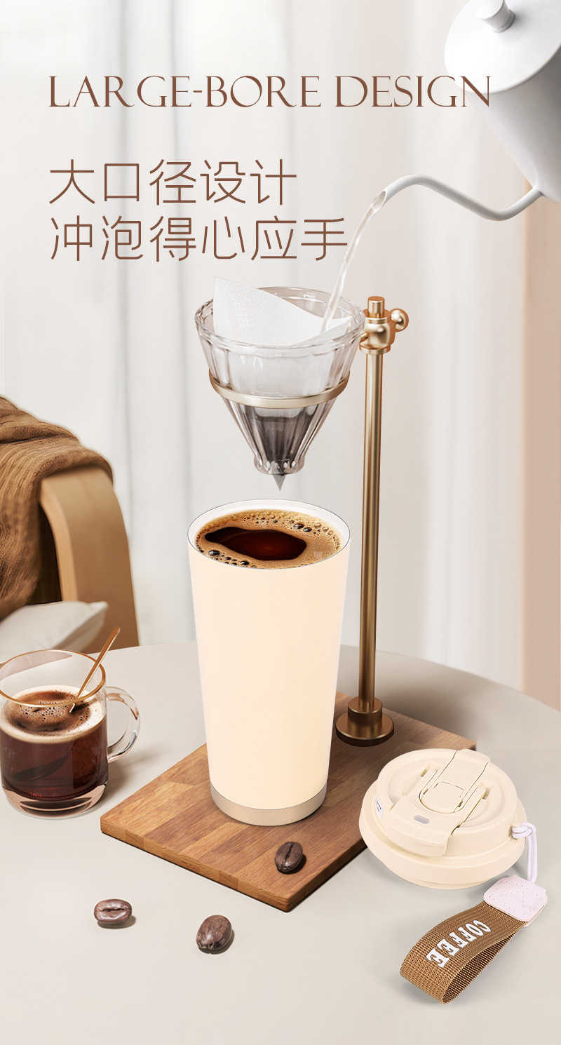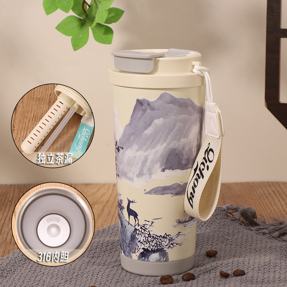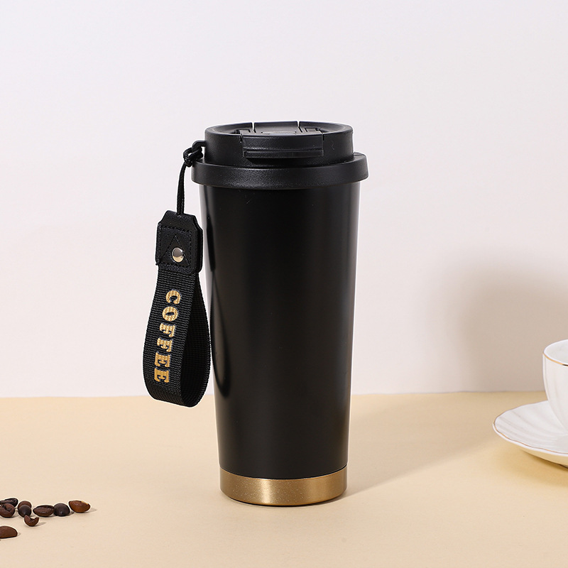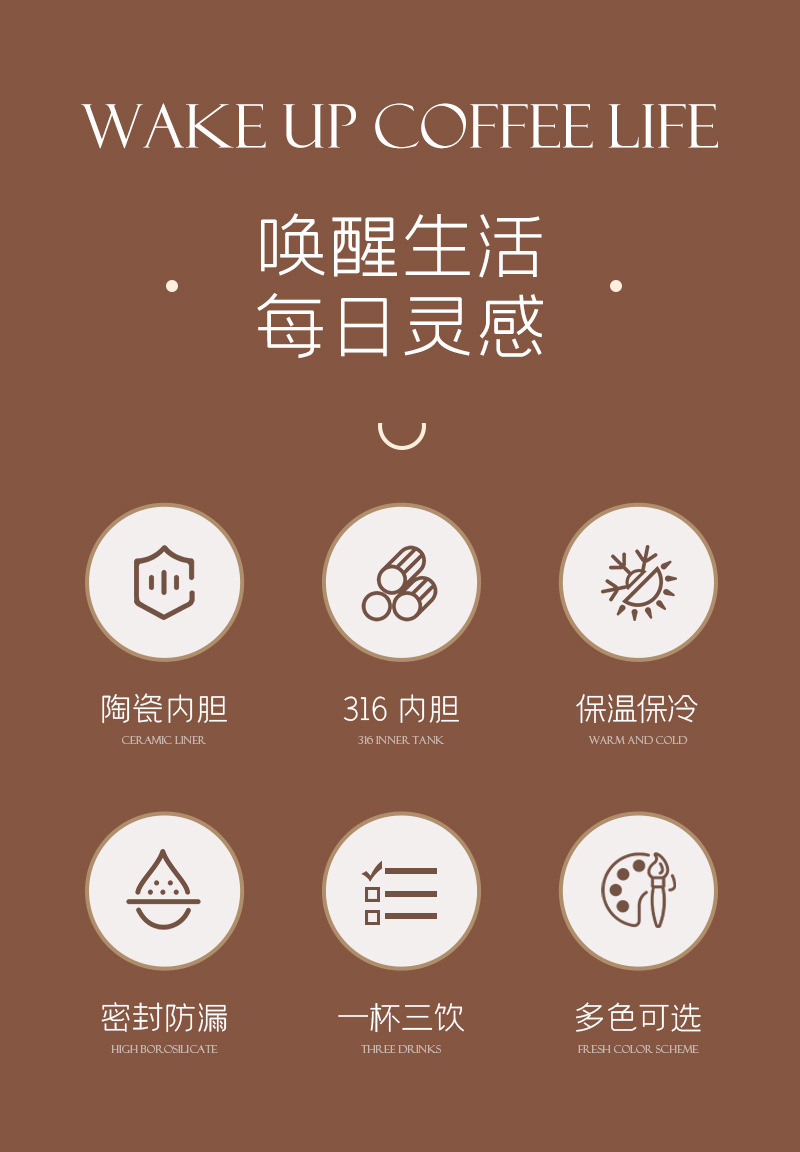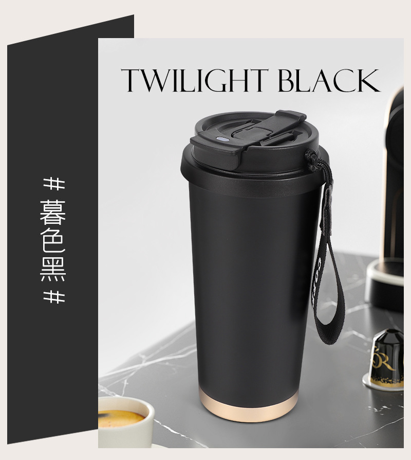 双饮铃兰不锈钢咖啡杯陶瓷内胆随行保温杯带提绳礼品水杯定制logo