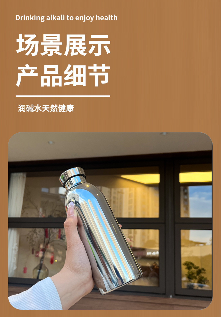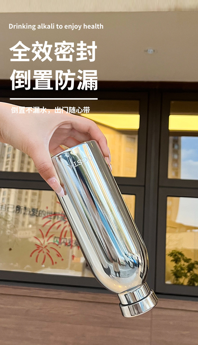 航空碎水杯弱碱性304不锈钢保温杯纯色简约养生水杯