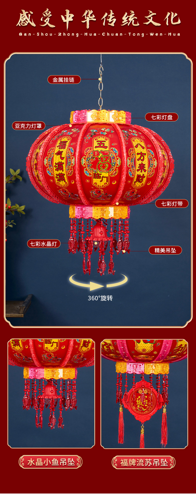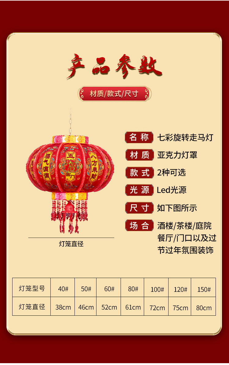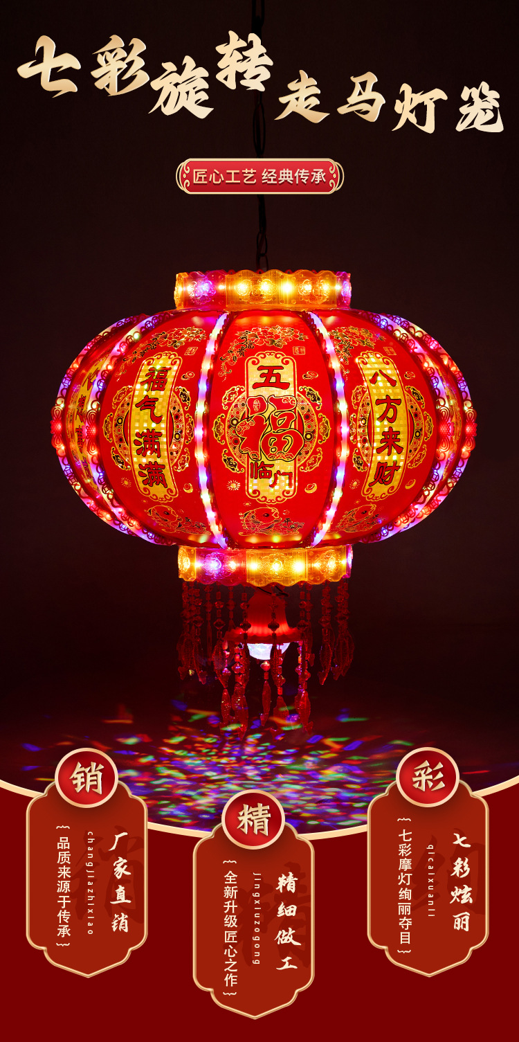 中秋灯笼led旋转走马灯新年发光灯笼结婚乔迁阳台装饰七彩走马灯