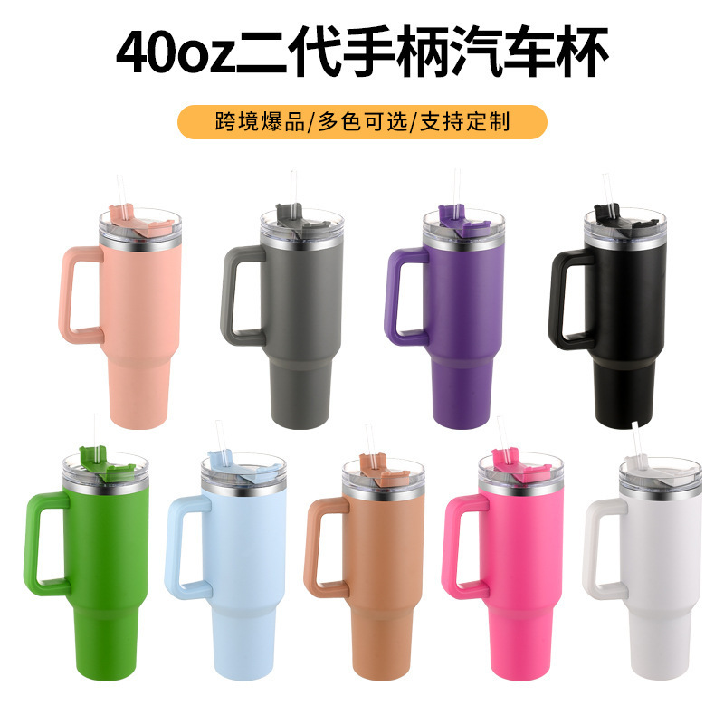 跨境40oz车载汽车杯大容量304不锈钢手柄杯户外带吸管便携保温杯
