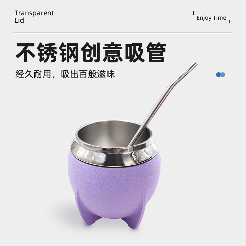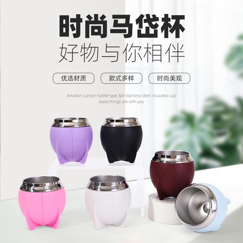 阿根廷南美新品马黛杯创意时尚便携水杯304不锈钢真空吸管保温杯