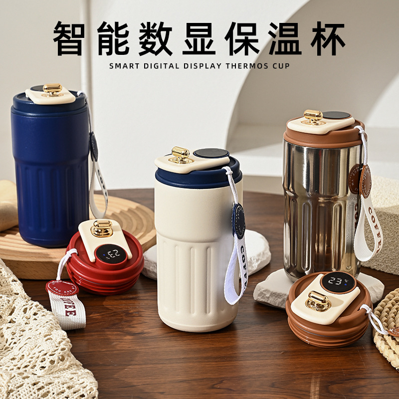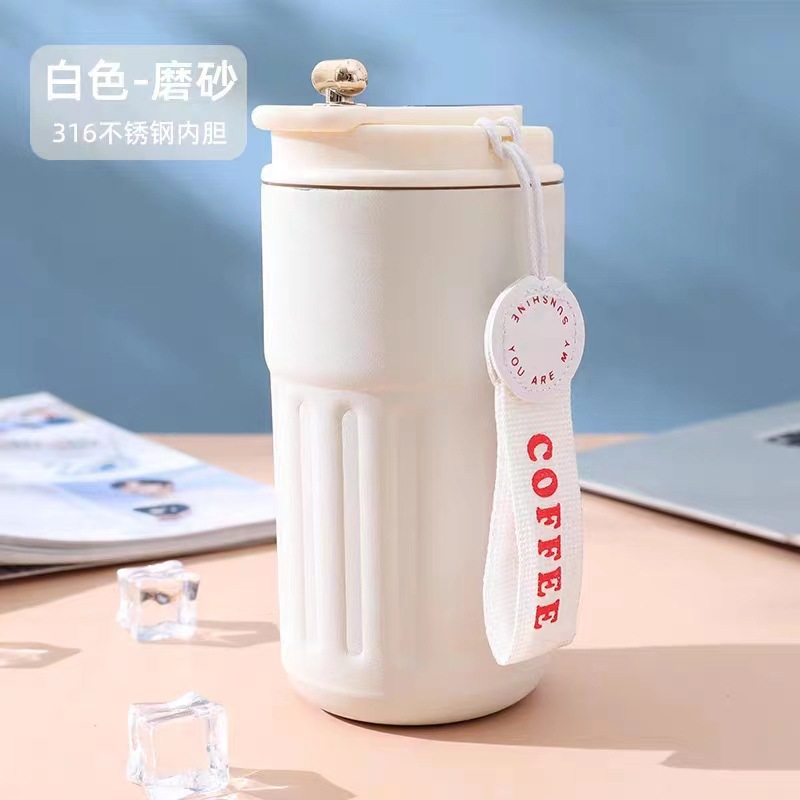批发定制不锈钢办公室高颜值保温杯提绳随行杯子便携智能咖啡杯女