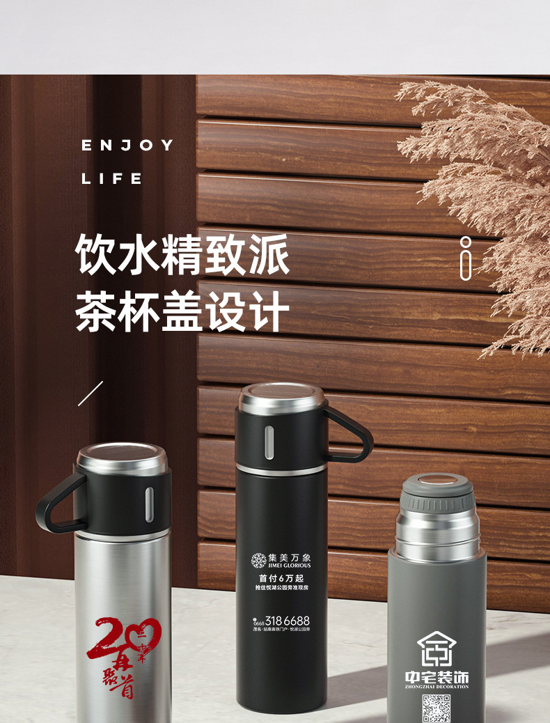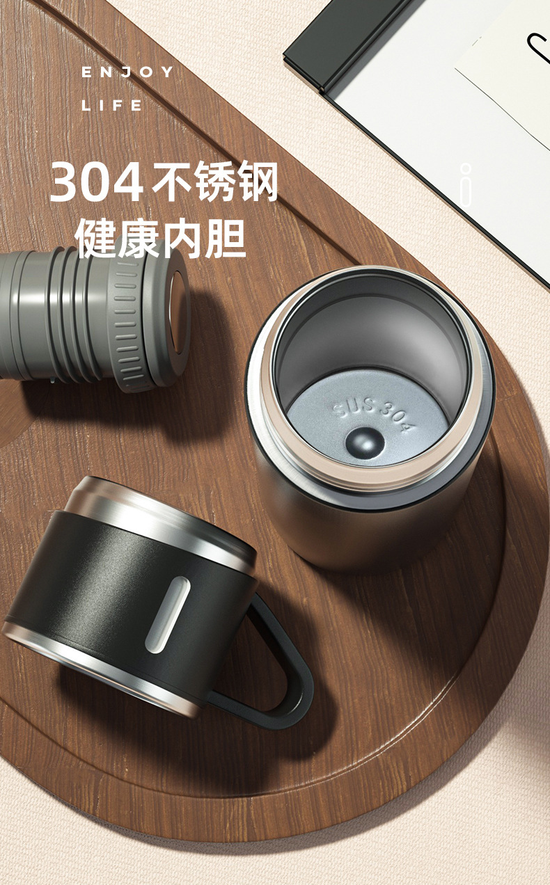 厂家美式保温杯套装一盖两用不锈钢保温杯手柄便携商务广告礼品杯