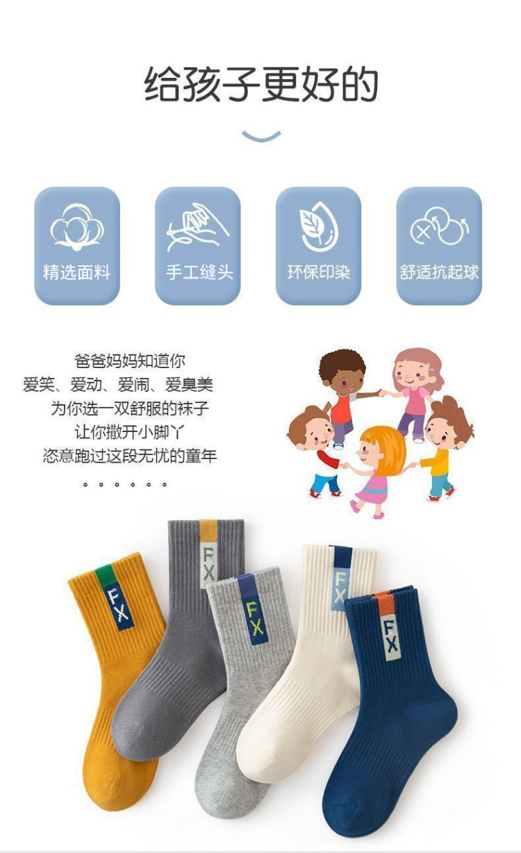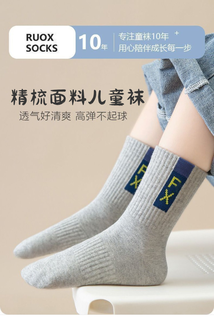 【直销】儿童袜子男童袜子中筒春秋冬季纯色学生男宝宝韩版学院风