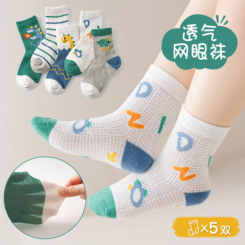 儿童袜子春夏薄款全网眼纯透气男女童宝宝a类夏季棉小熊袜子批发
