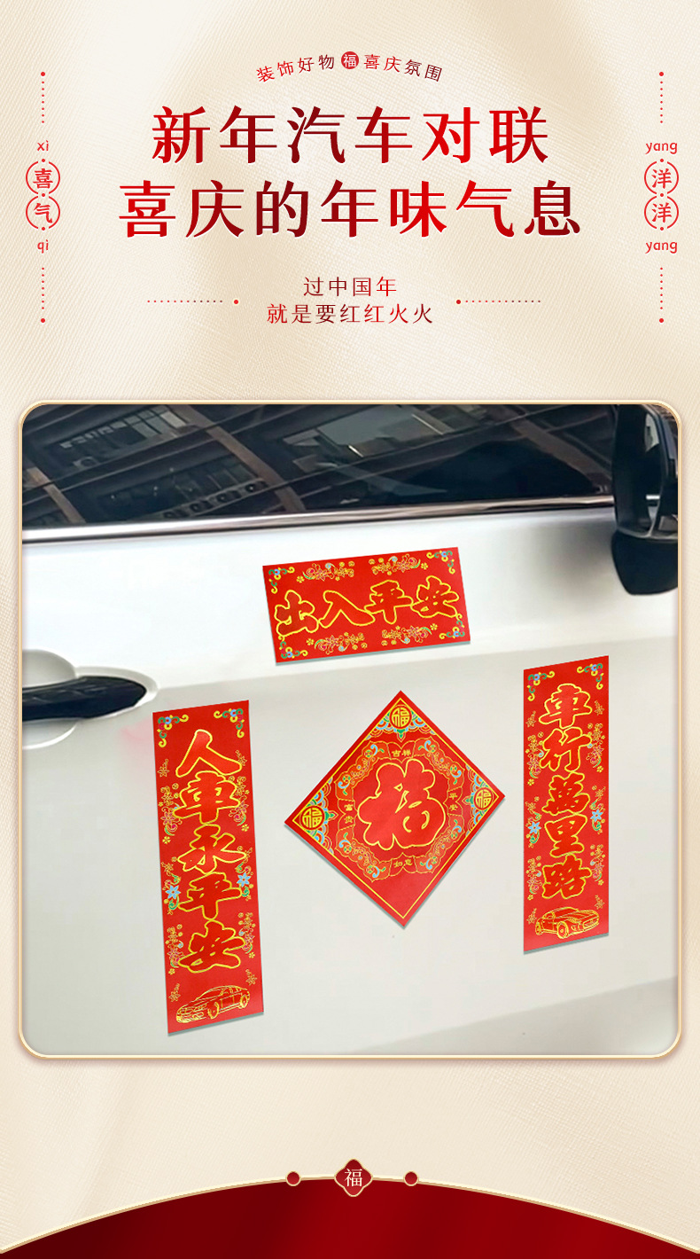 2025新款蛇年磁吸大号汽车贴新年小春联车对联过年装饰车用磁力贴