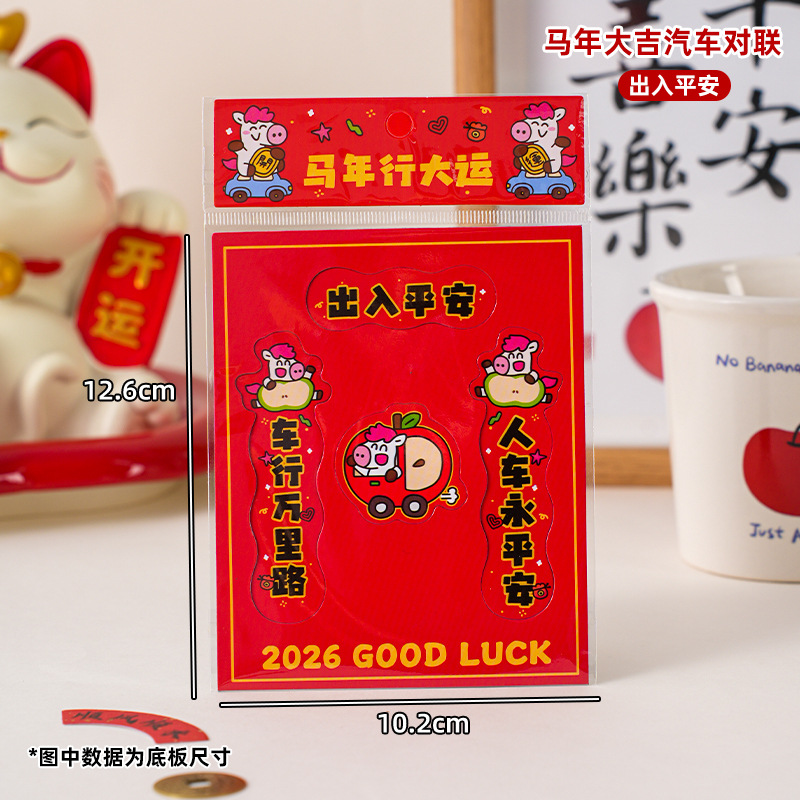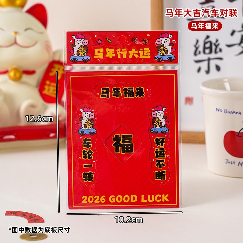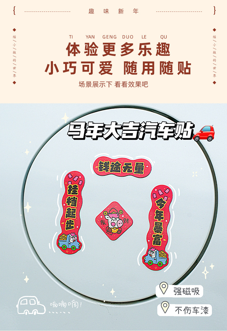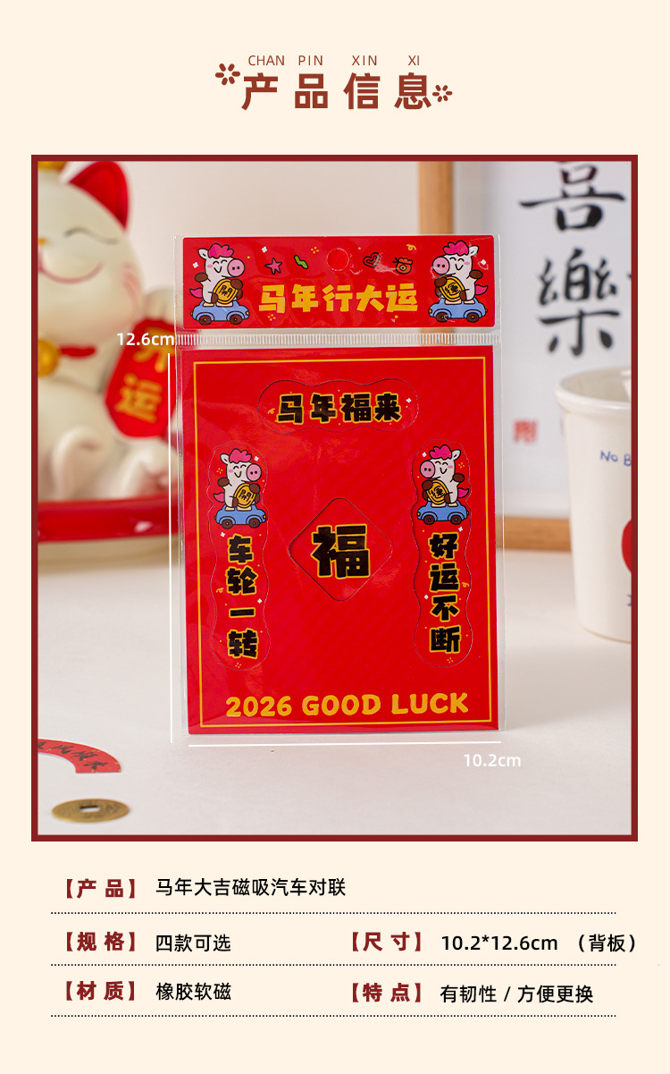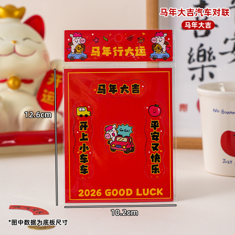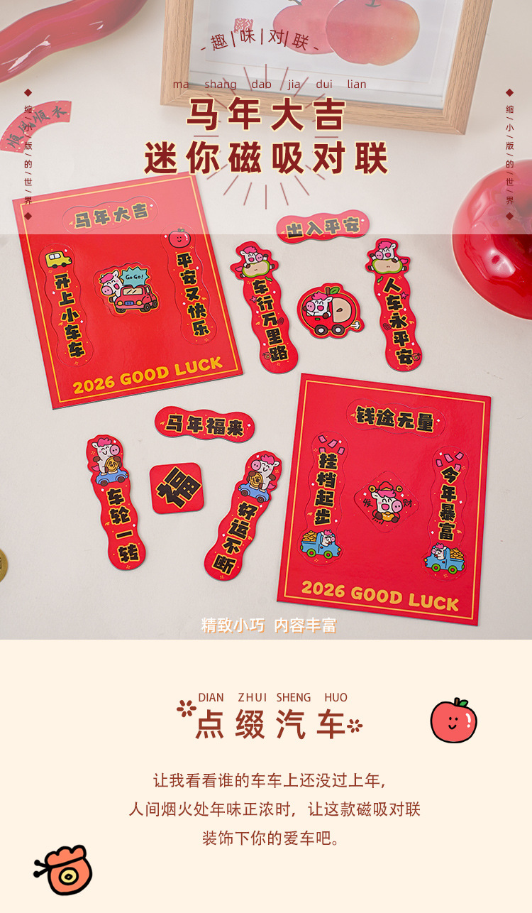 2026马年汽车对联创意磁吸小对联卡通可爱迷你春联车上装饰贴防水