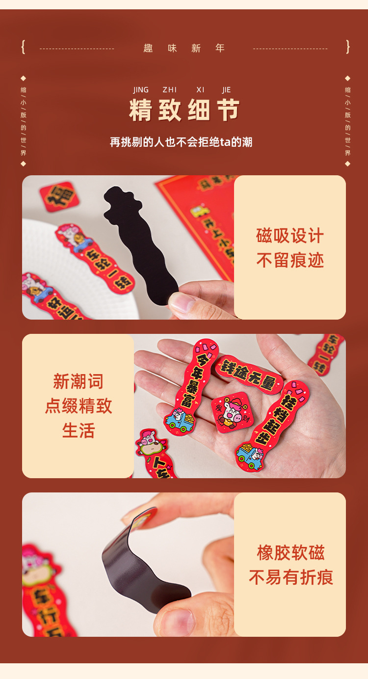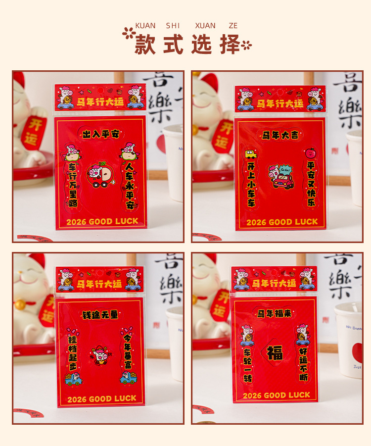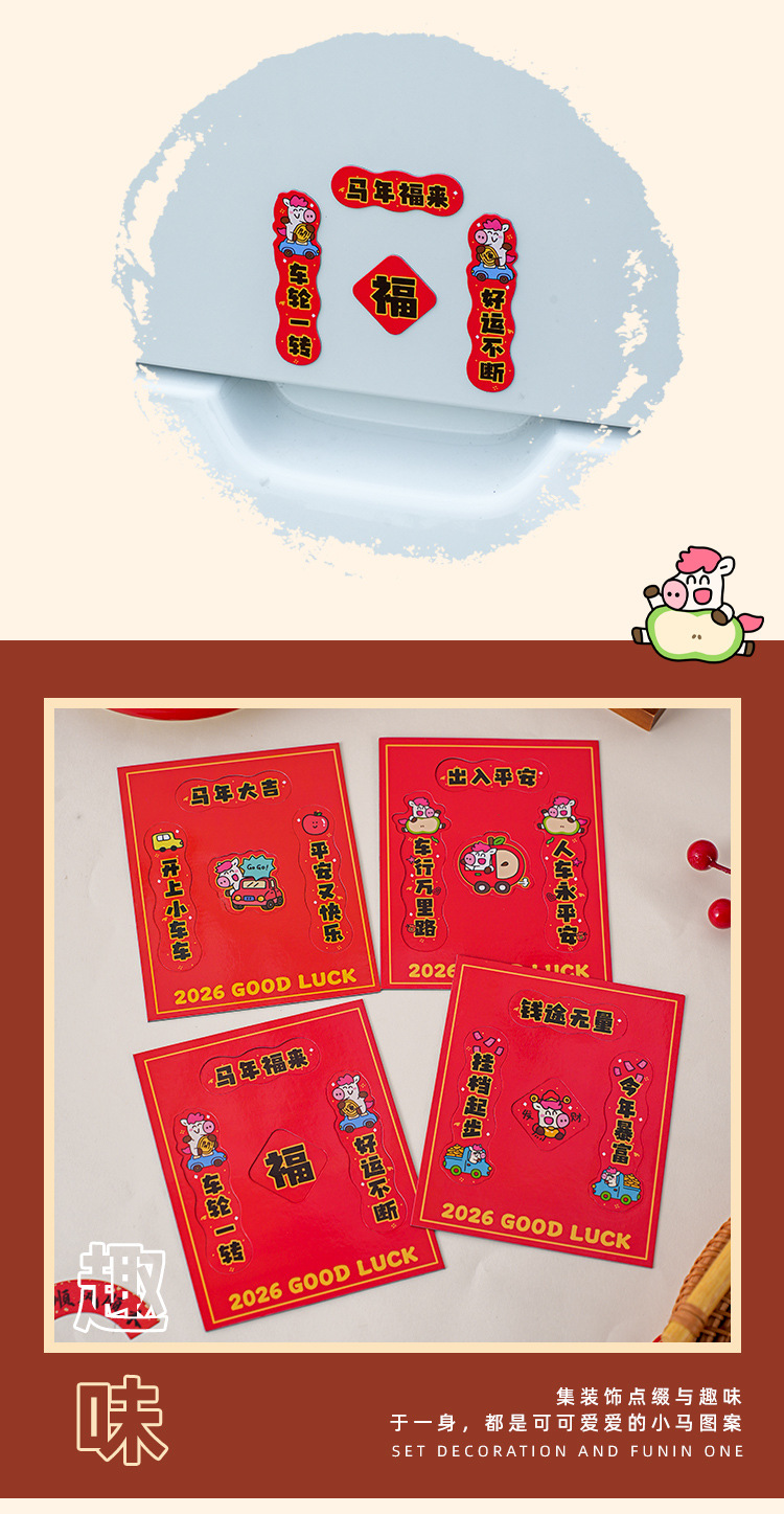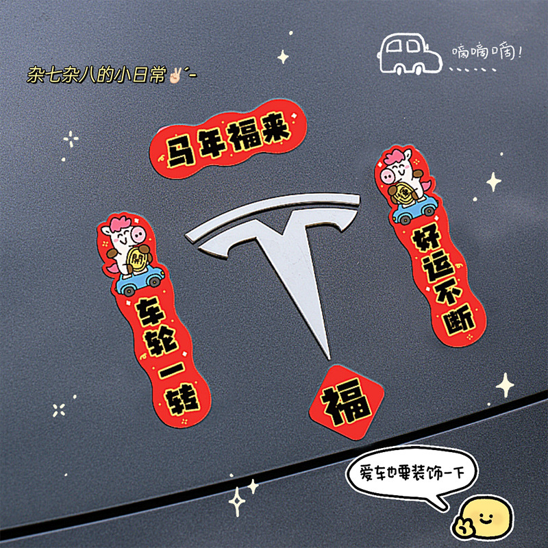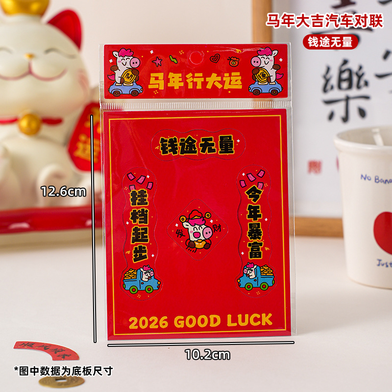 2026马年汽车对联创意磁吸小对联卡通可爱迷你春联车上装饰贴防水