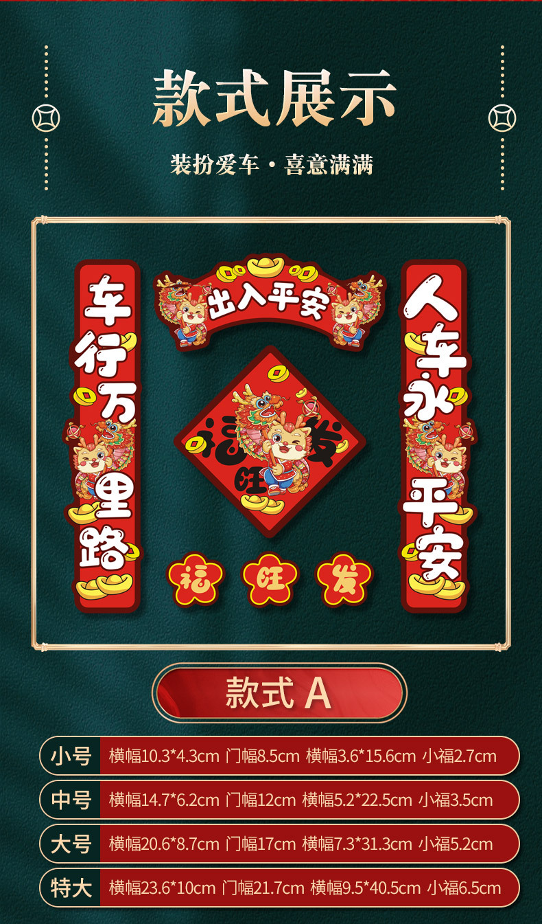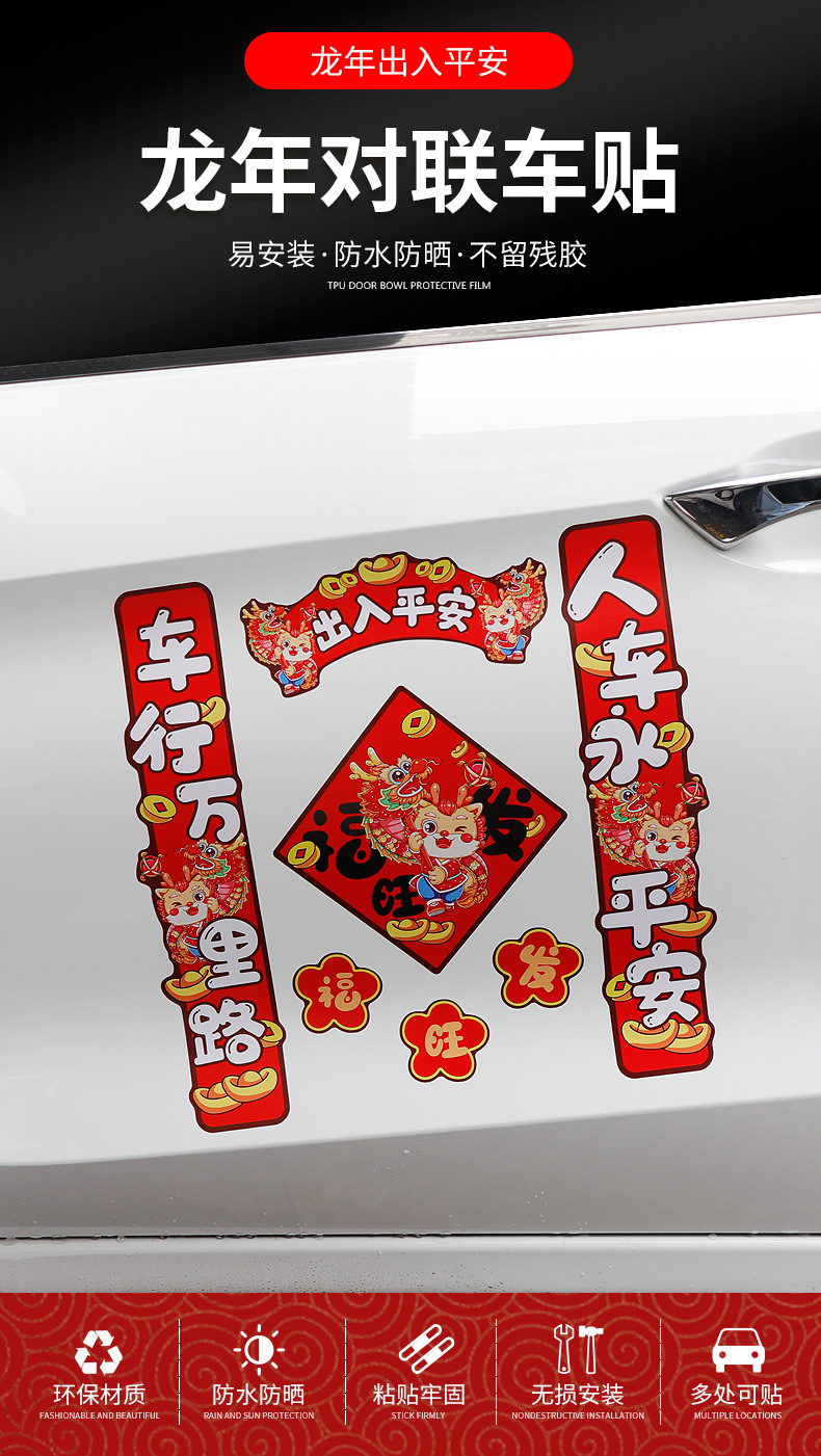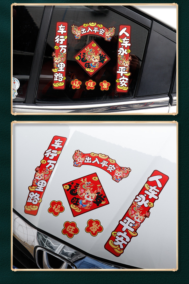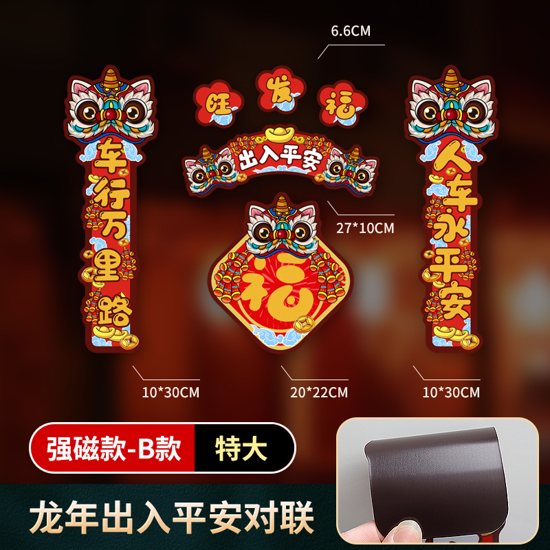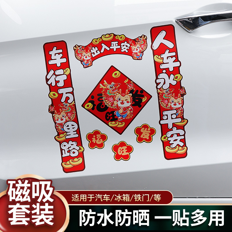 2024龙年磁性车对联龙年滋吸贴大号磁吸车贴春节过年新年春联