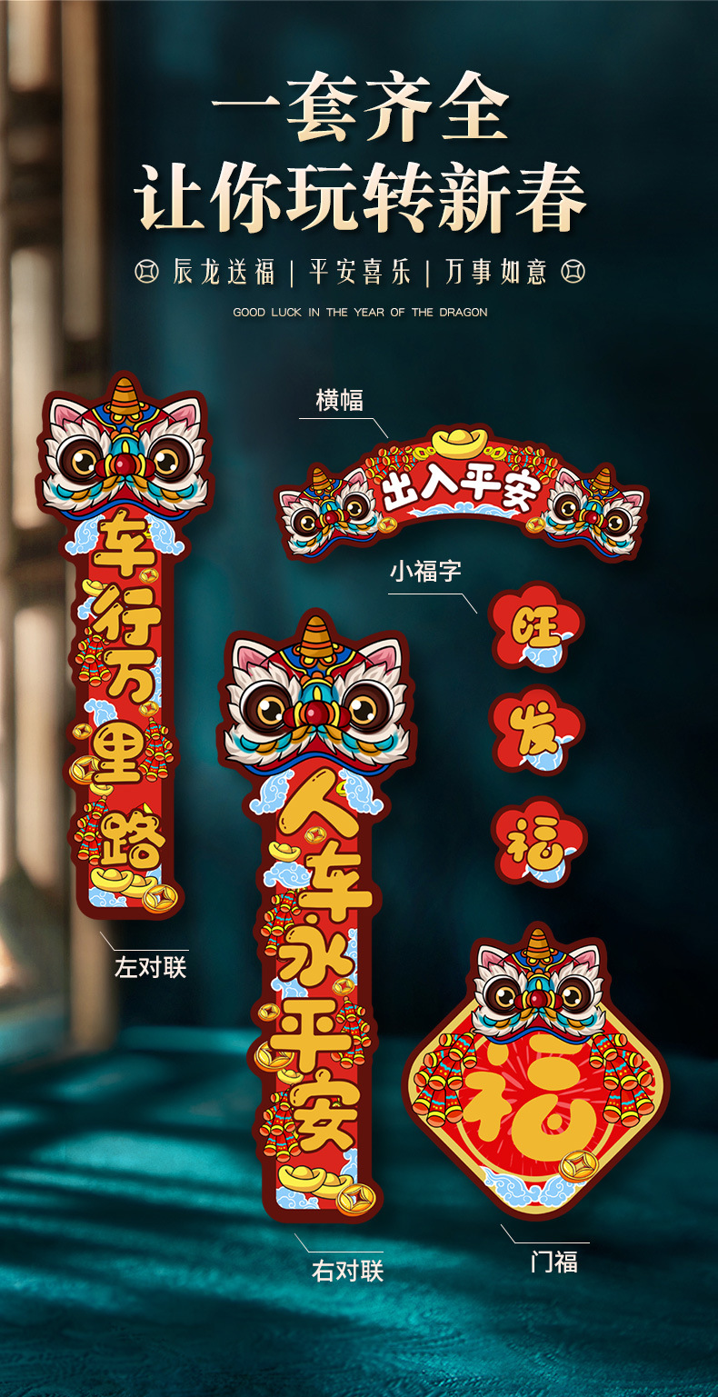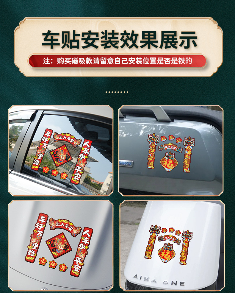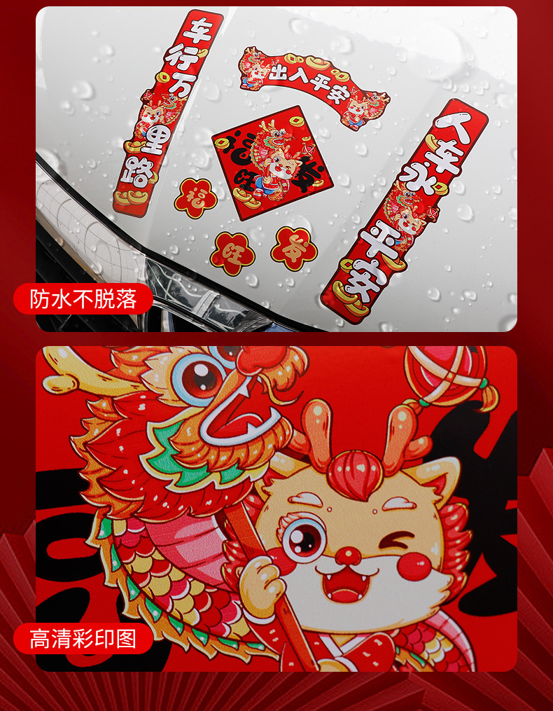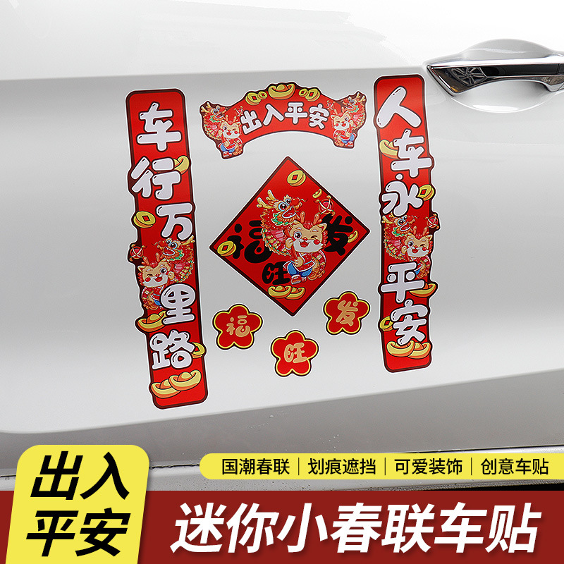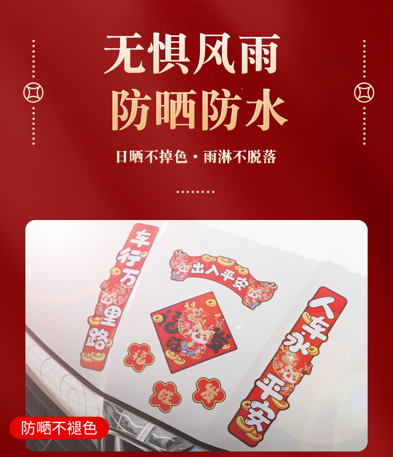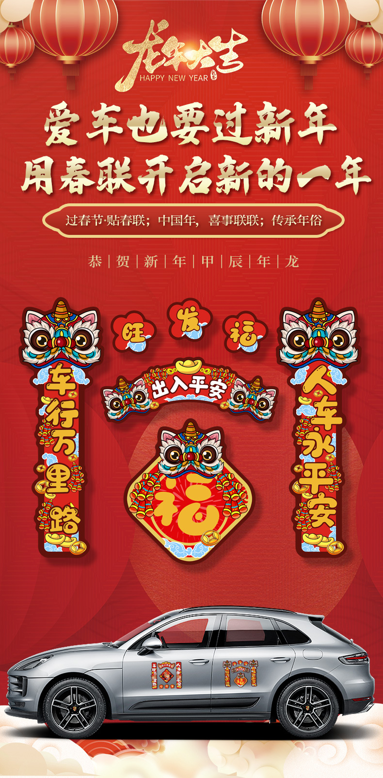 2024龙年磁性车对联龙年滋吸贴大号磁吸车贴春节过年新年春联