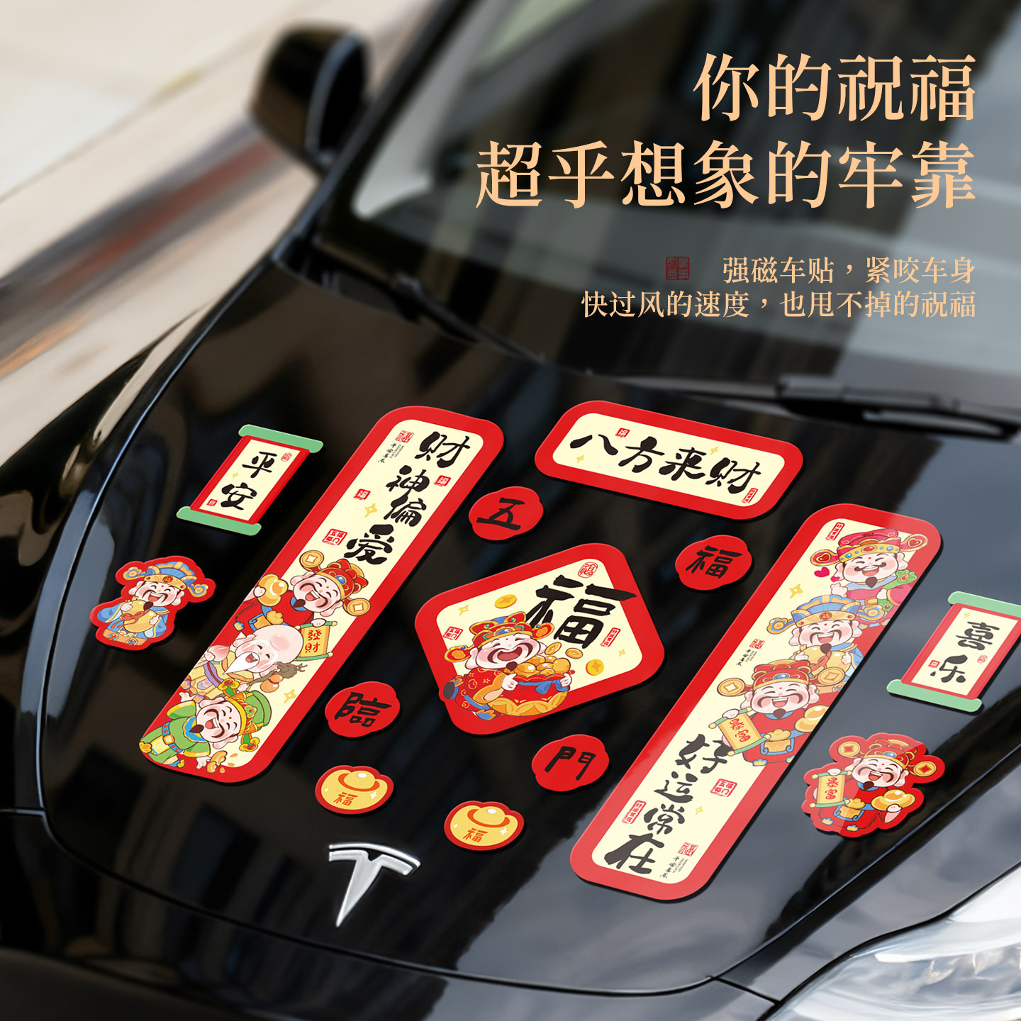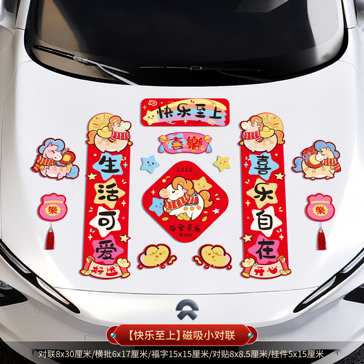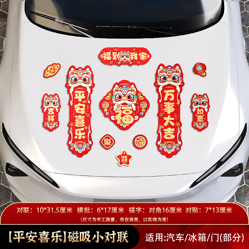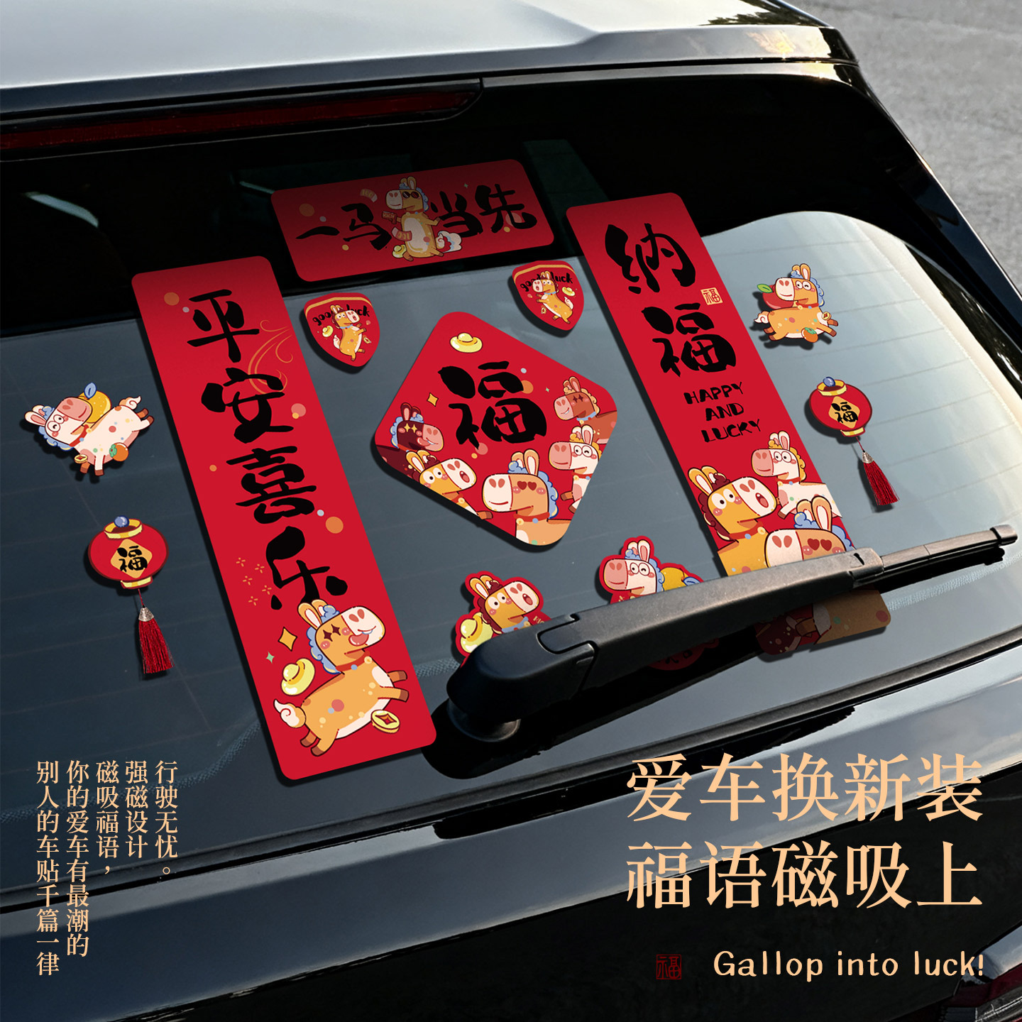 2026年马年磁吸汽车对联车贴新款出入平安新年过年车上迷你对贴