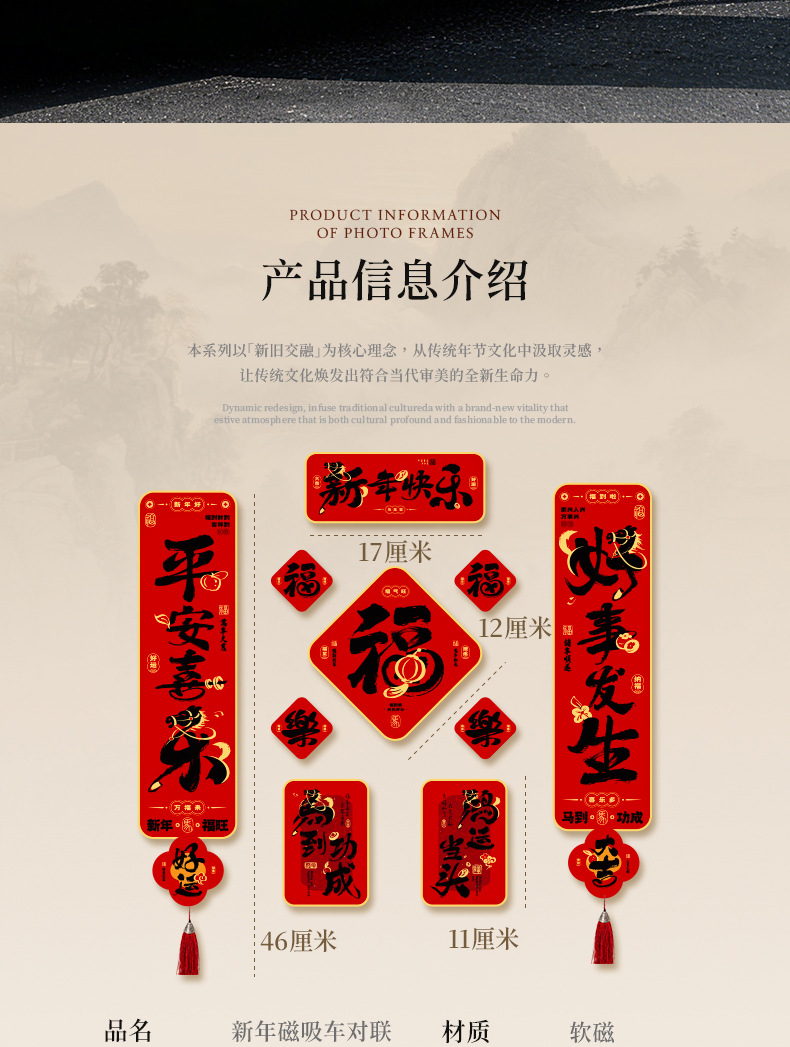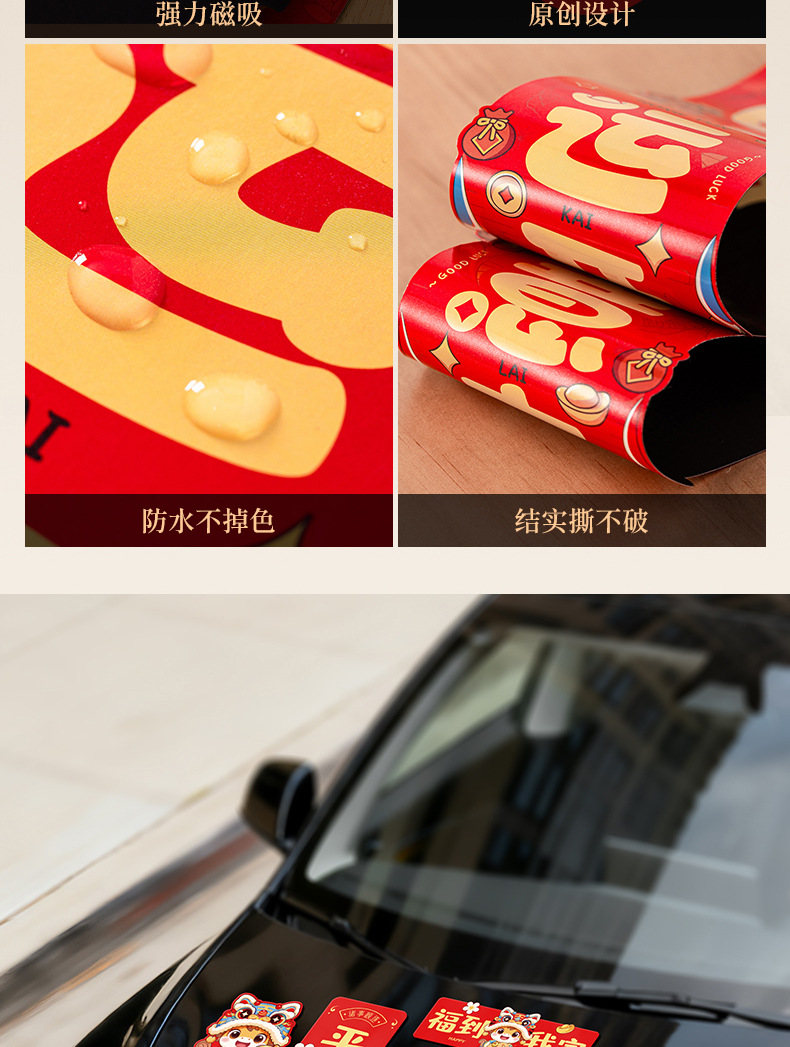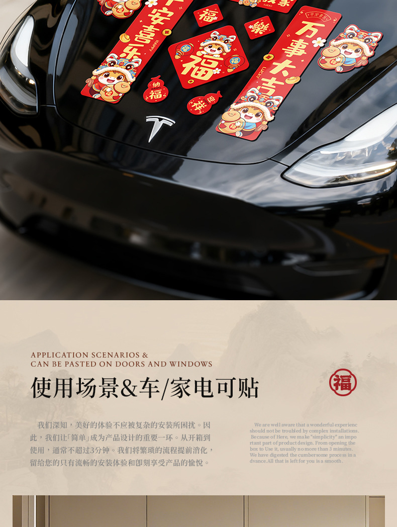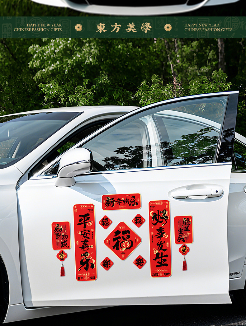 2026年马年磁吸汽车对联车贴新款出入平安新年过年车上迷你对贴