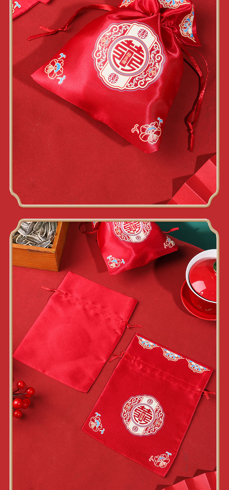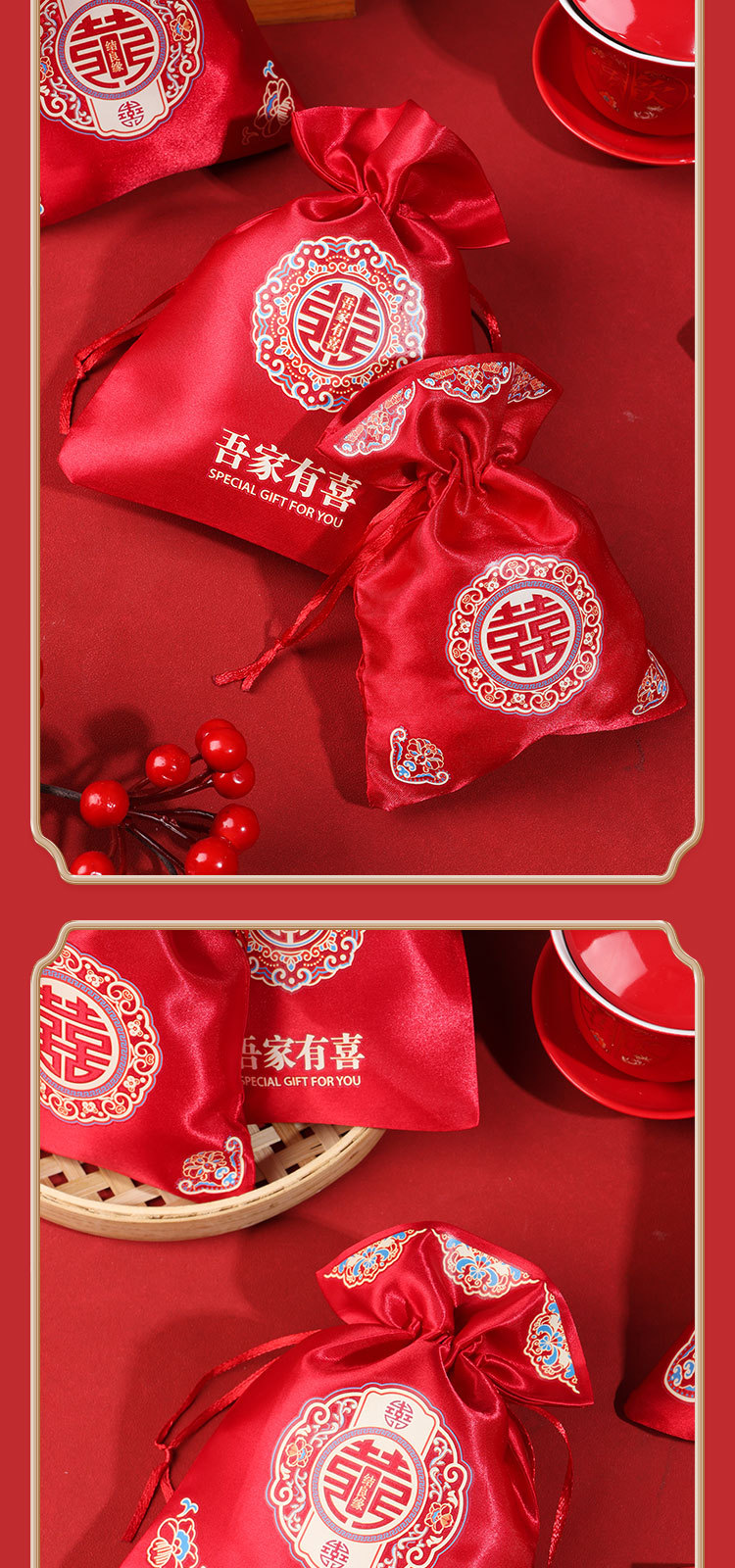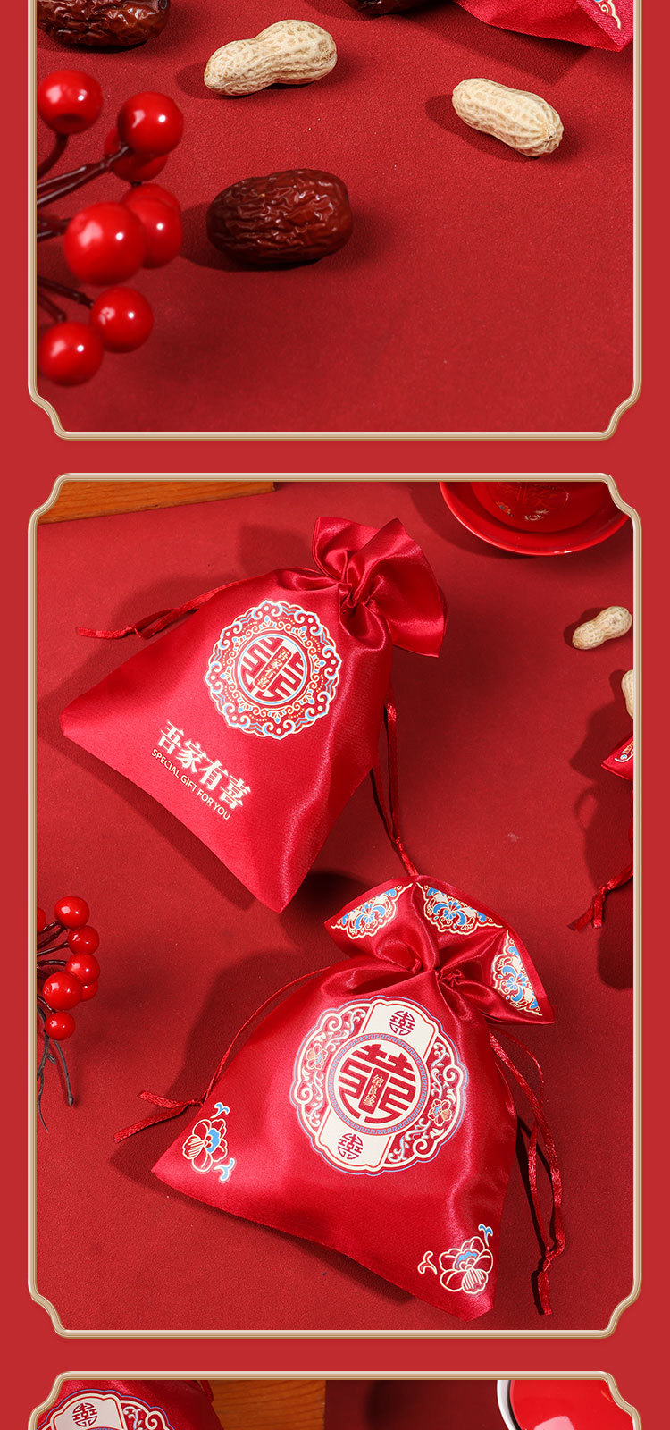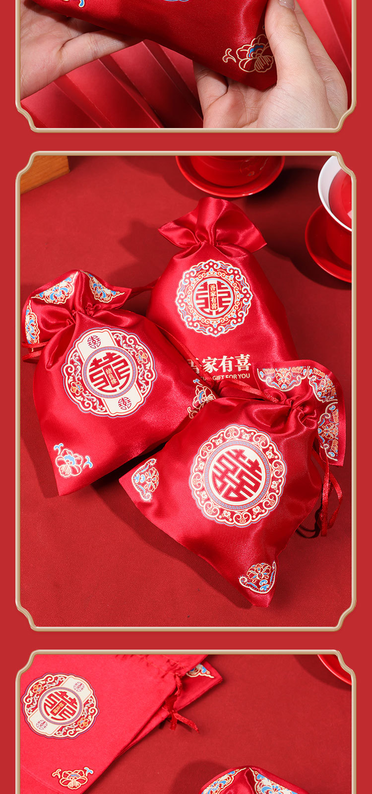 新款结婚烫画喜糖袋伴手礼回礼袋高级感中式婚礼喜添萌宝糖果袋子
