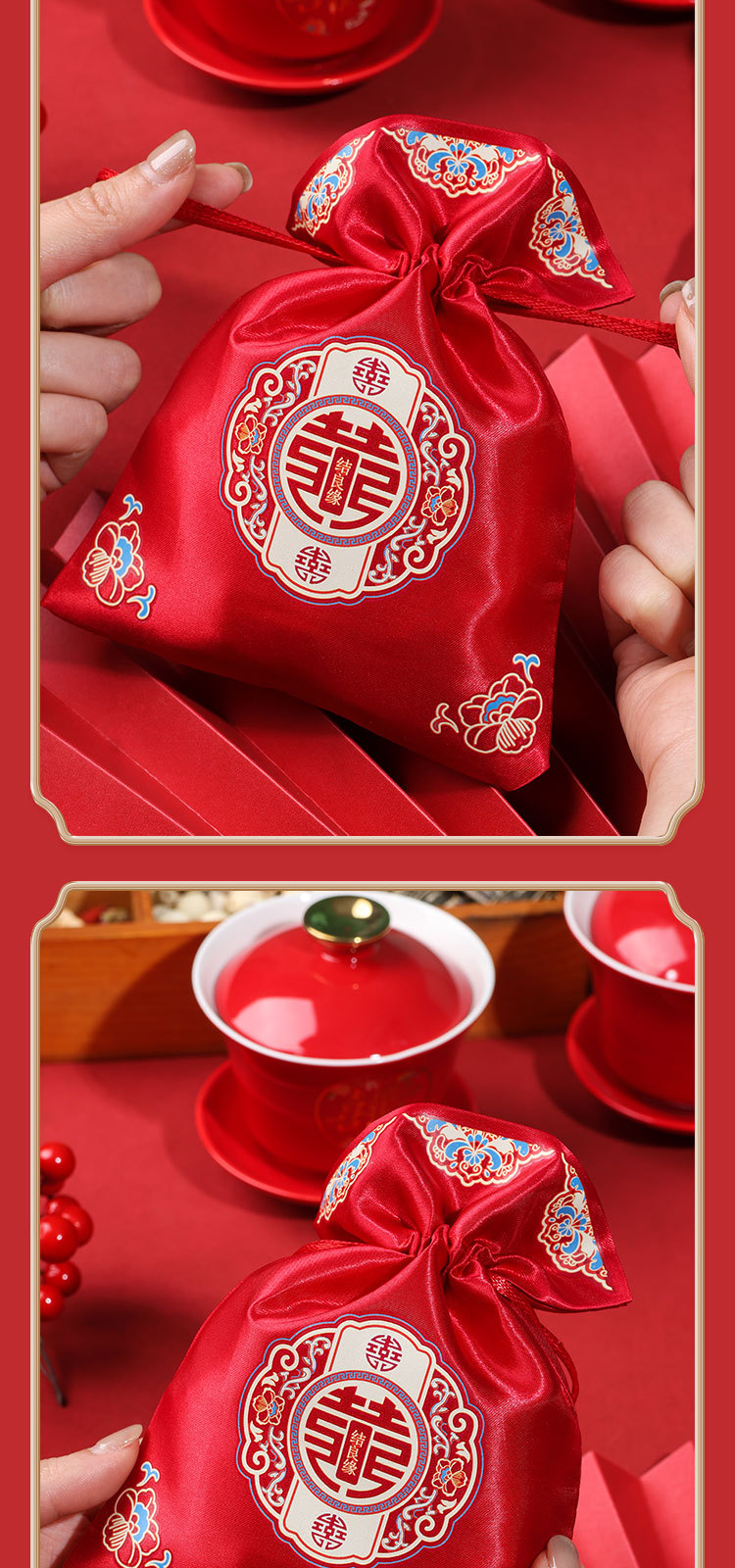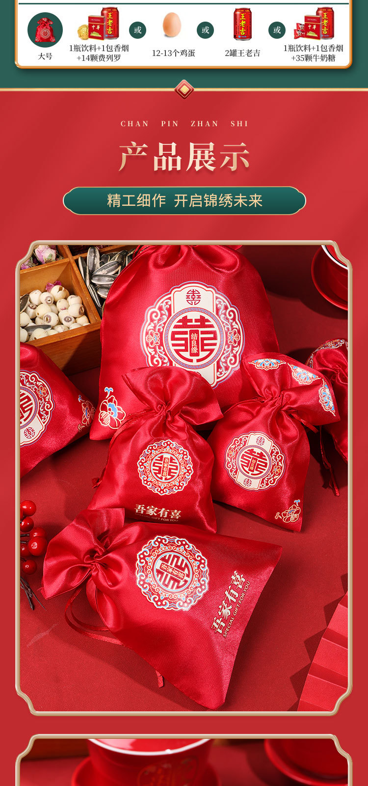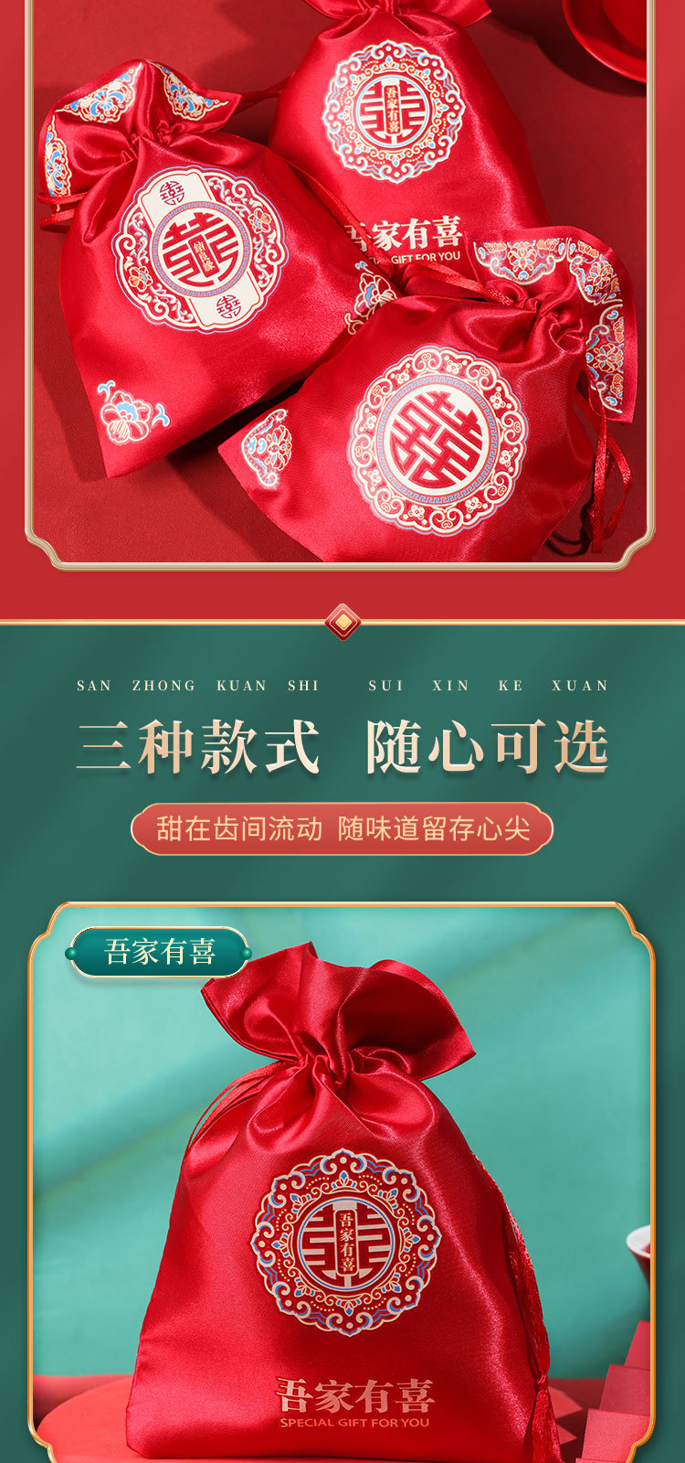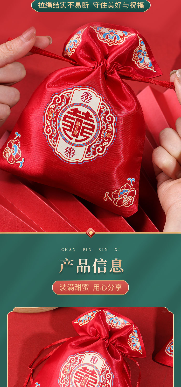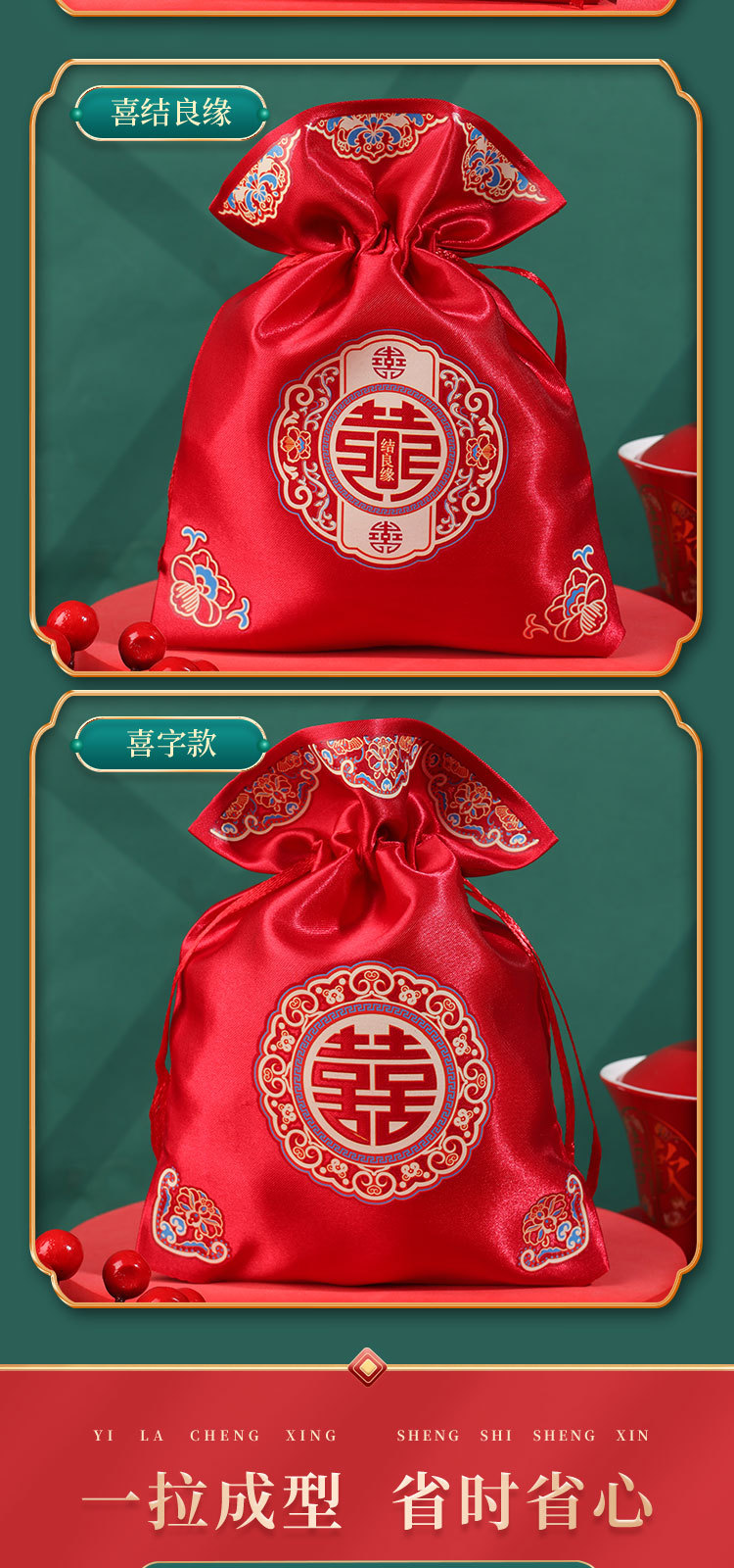 新款结婚烫画喜糖袋伴手礼回礼袋高级感中式婚礼喜添萌宝糖果袋子