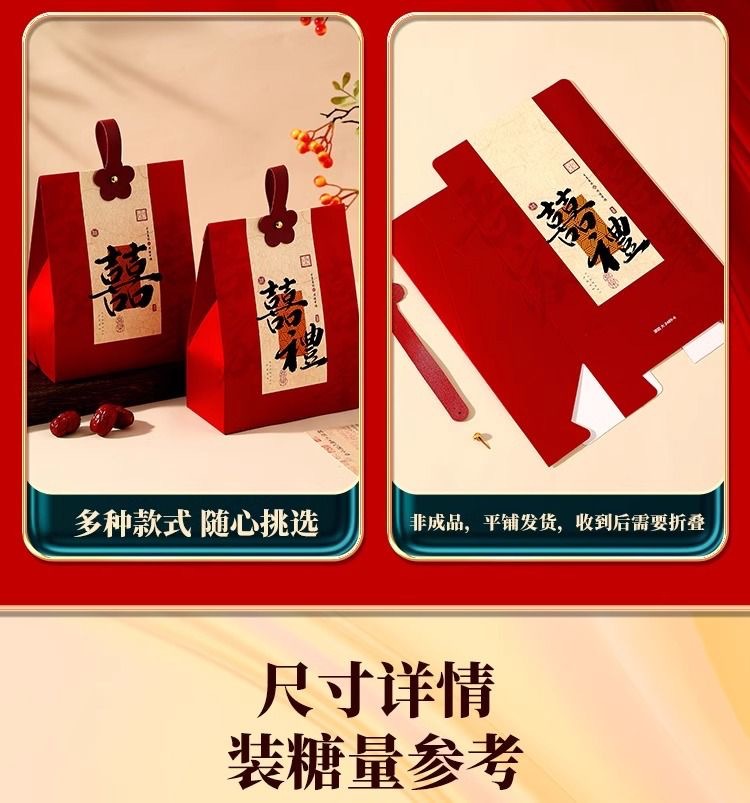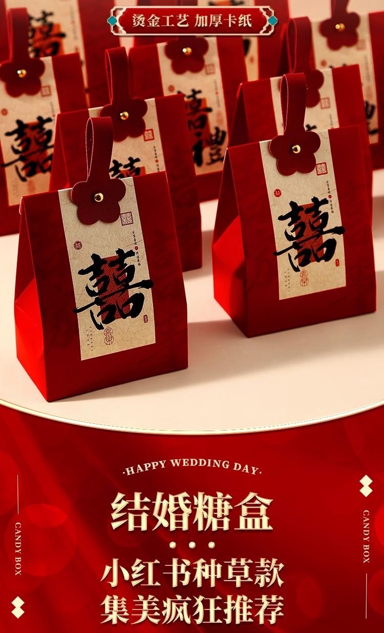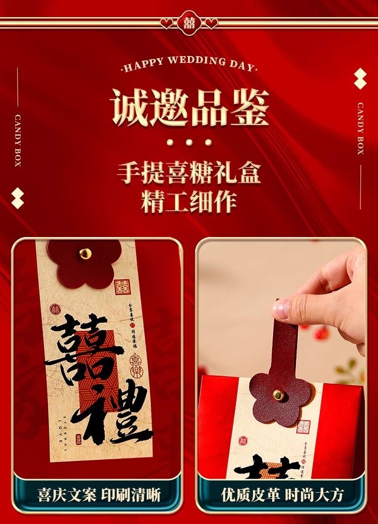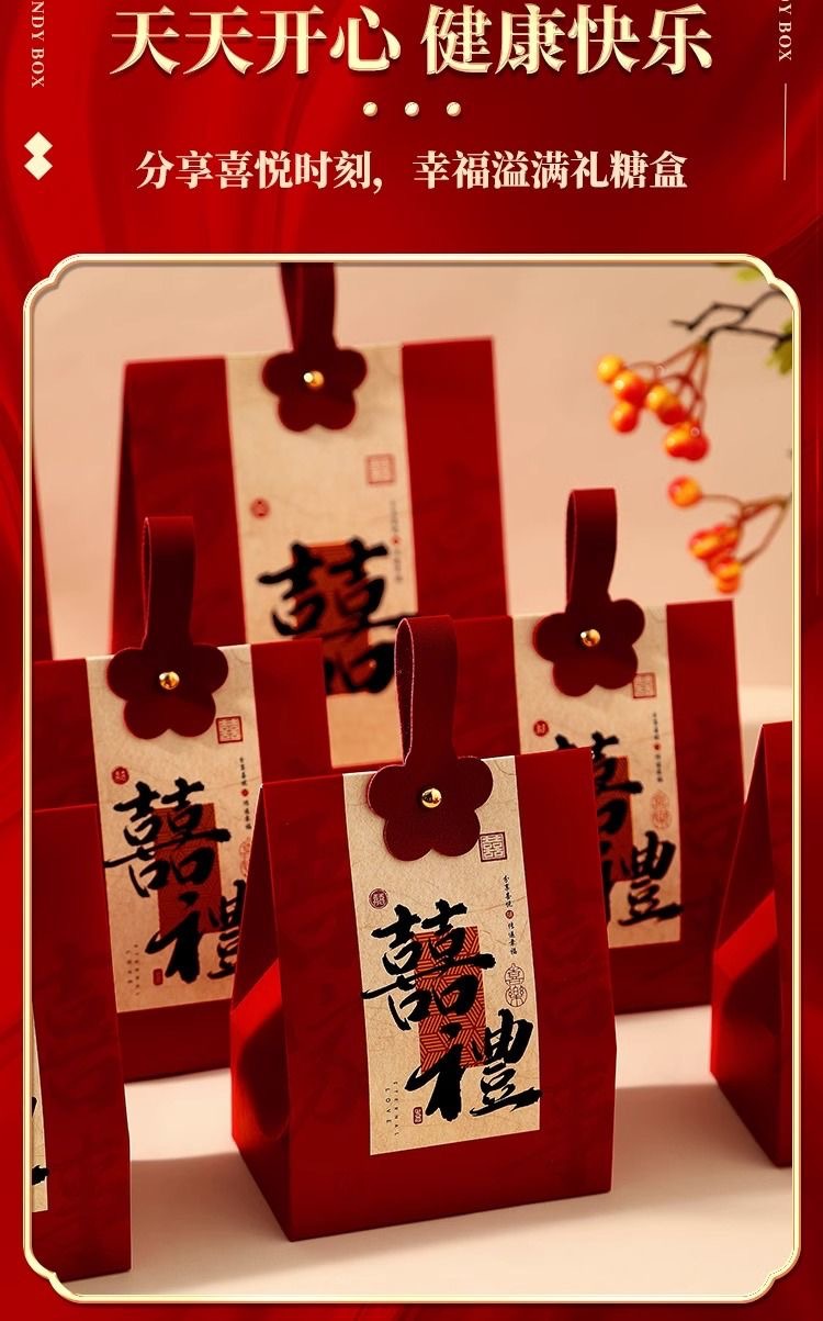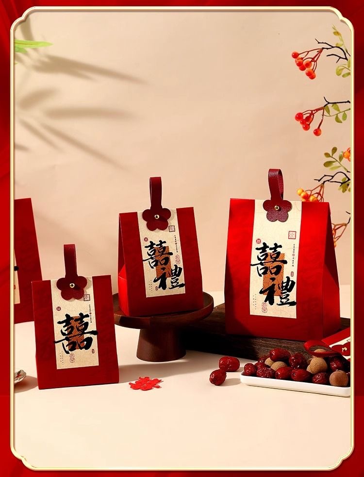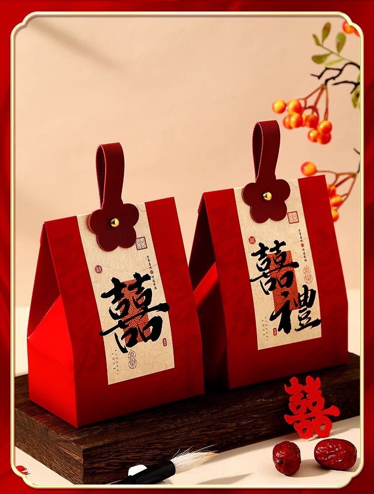 结婚喜糖盒2025新款中式高级感喜糖袋子婚礼订婚装糖果礼盒包装盒