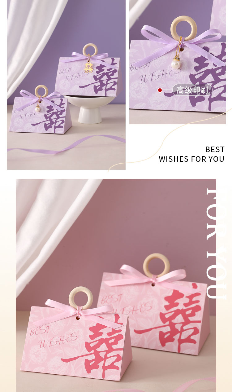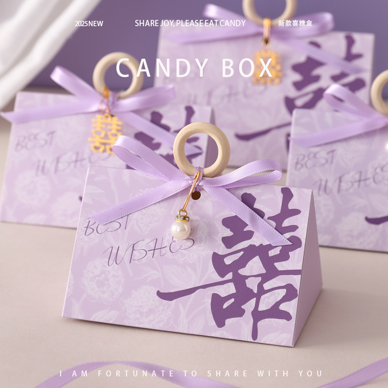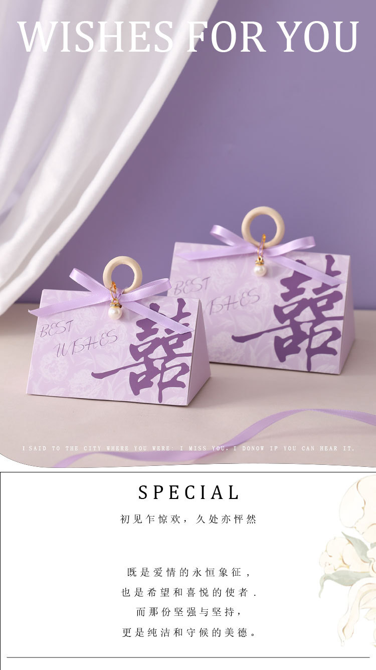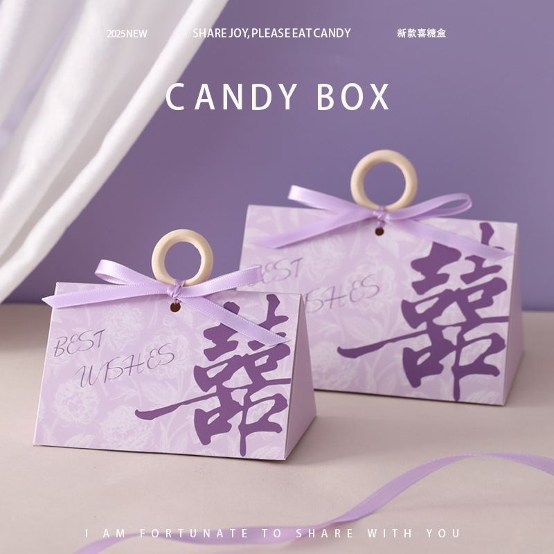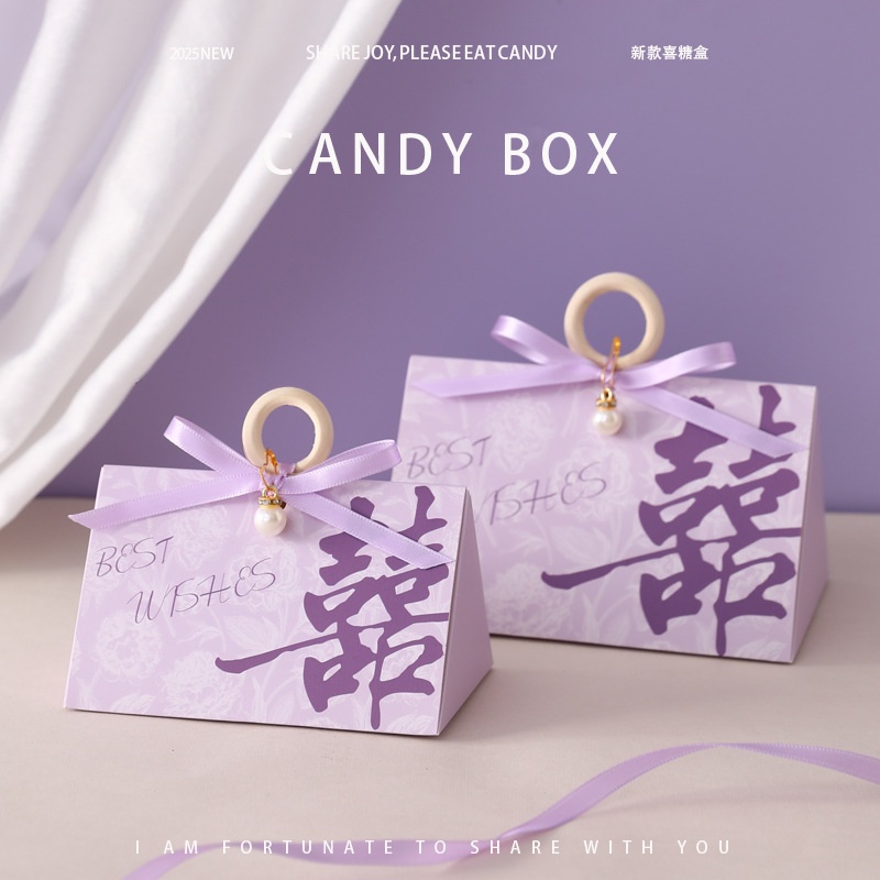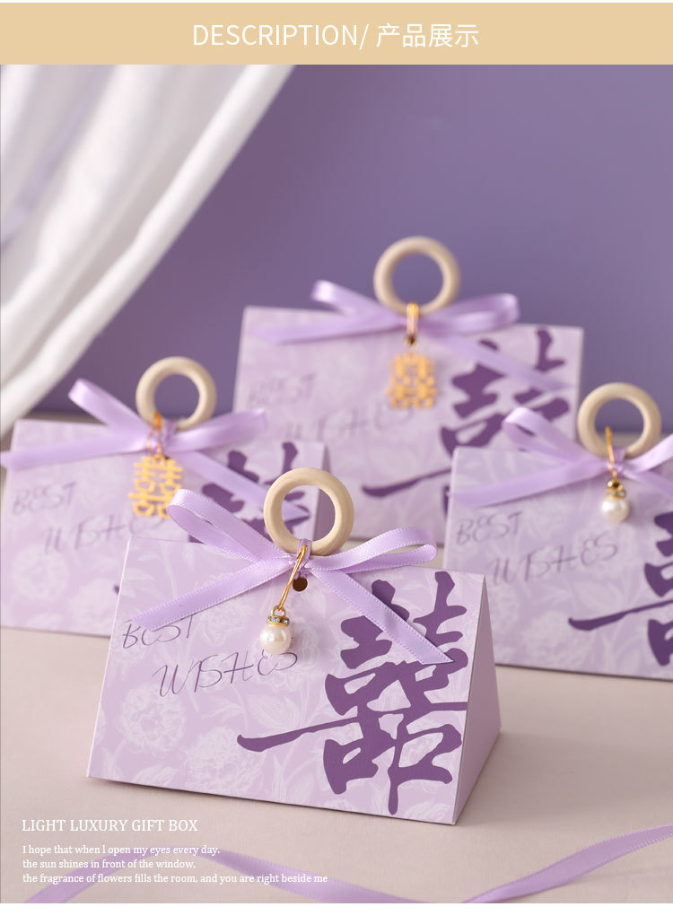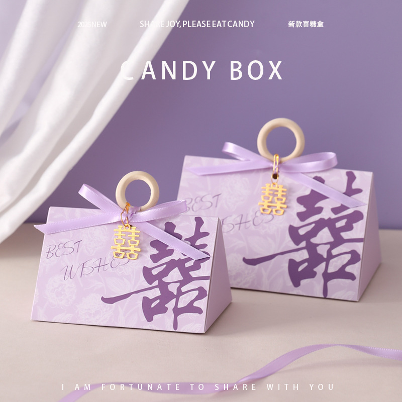 结婚喜糖盒子糖盒伴手礼盒婚礼手提袋紫色小众高级感中式订婚空盒