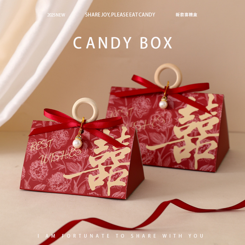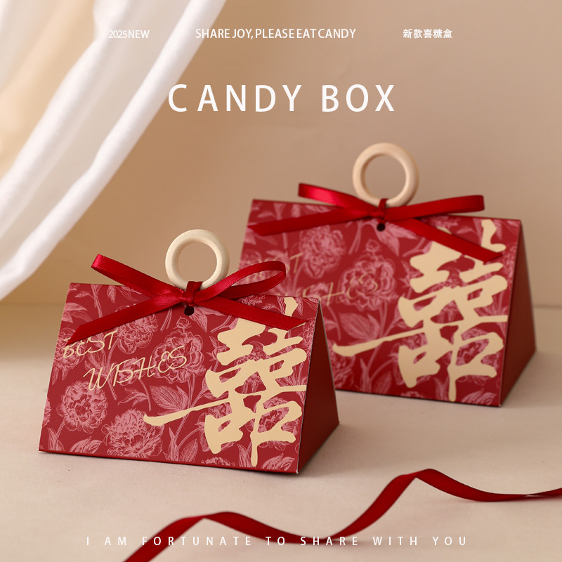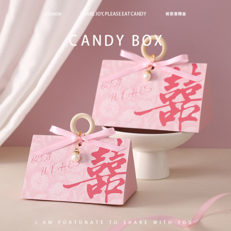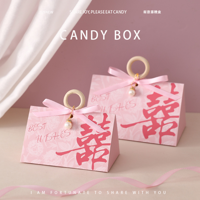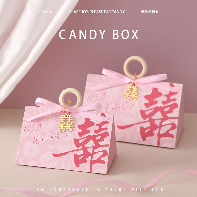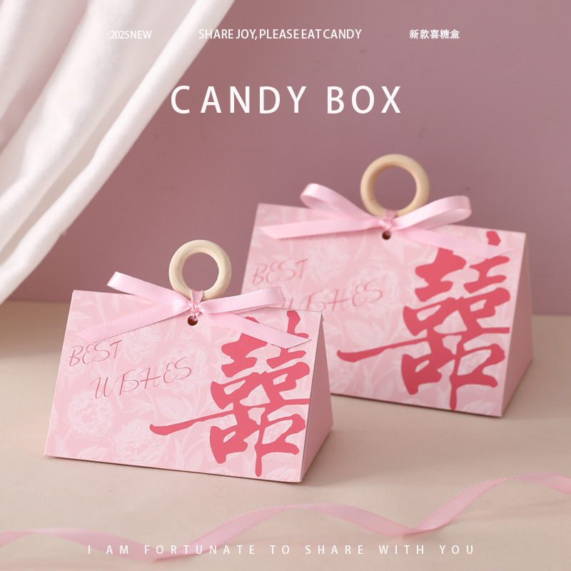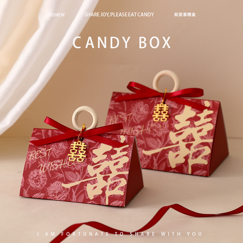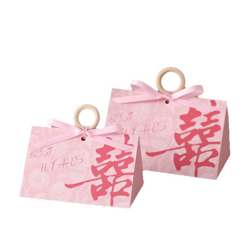 结婚喜糖盒子糖盒伴手礼盒婚礼手提袋紫色小众高级感中式订婚空盒
