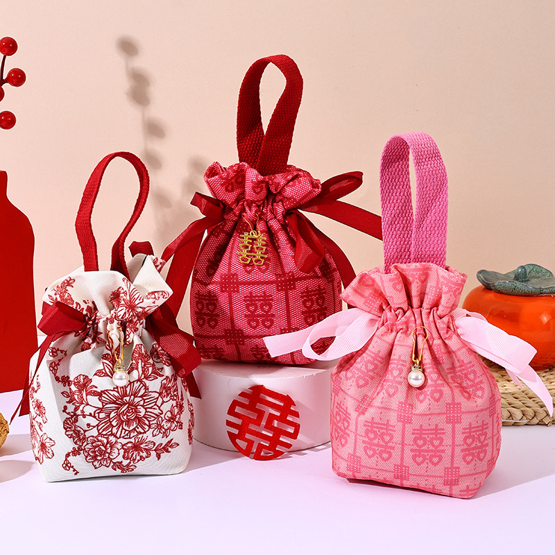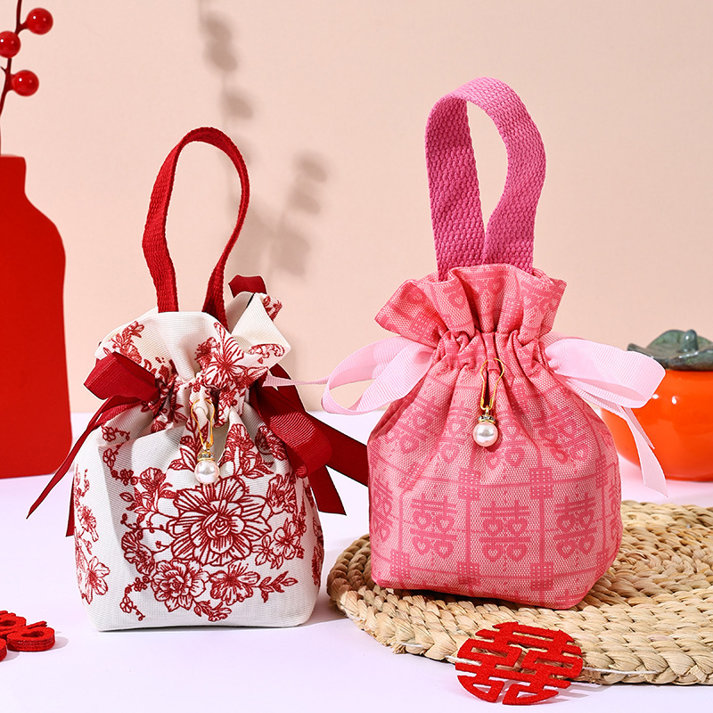 提花喜糖袋结婚喜糖盒子婚礼喜糖盒婚礼创意手绘喜糖果包装盒袋子