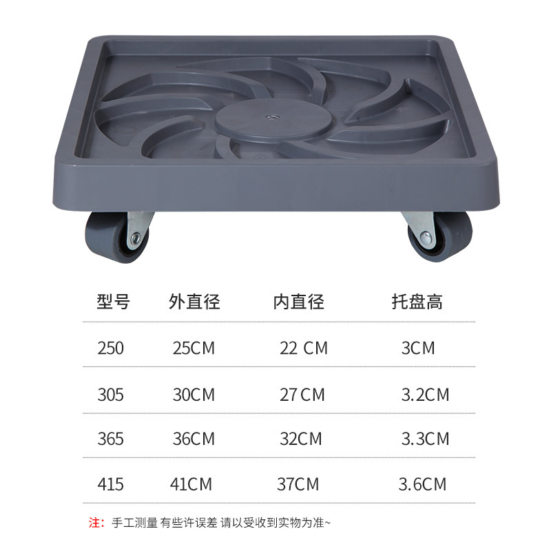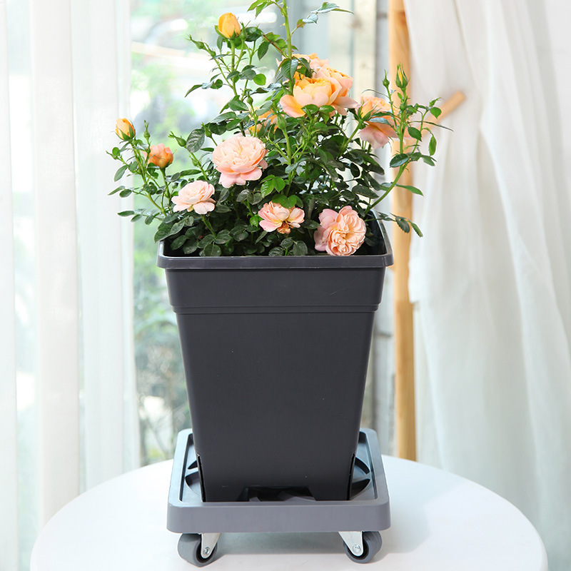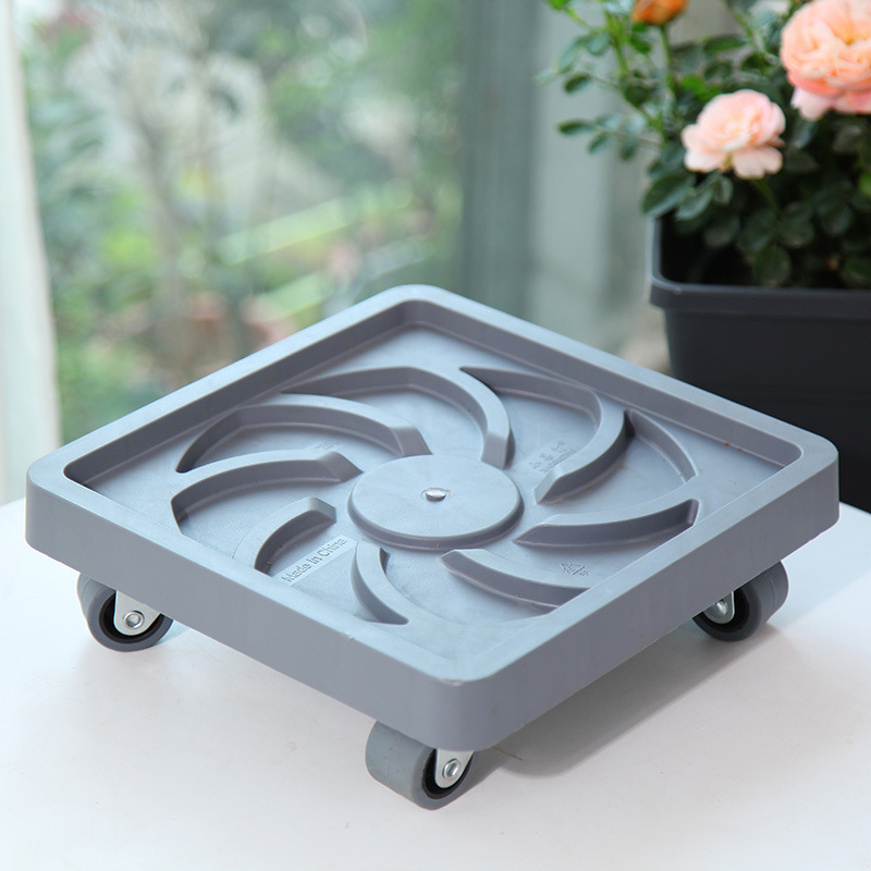 小果汀大承重方形花盆移动托盘PP树脂底托金属轮毂带刹车接水盆