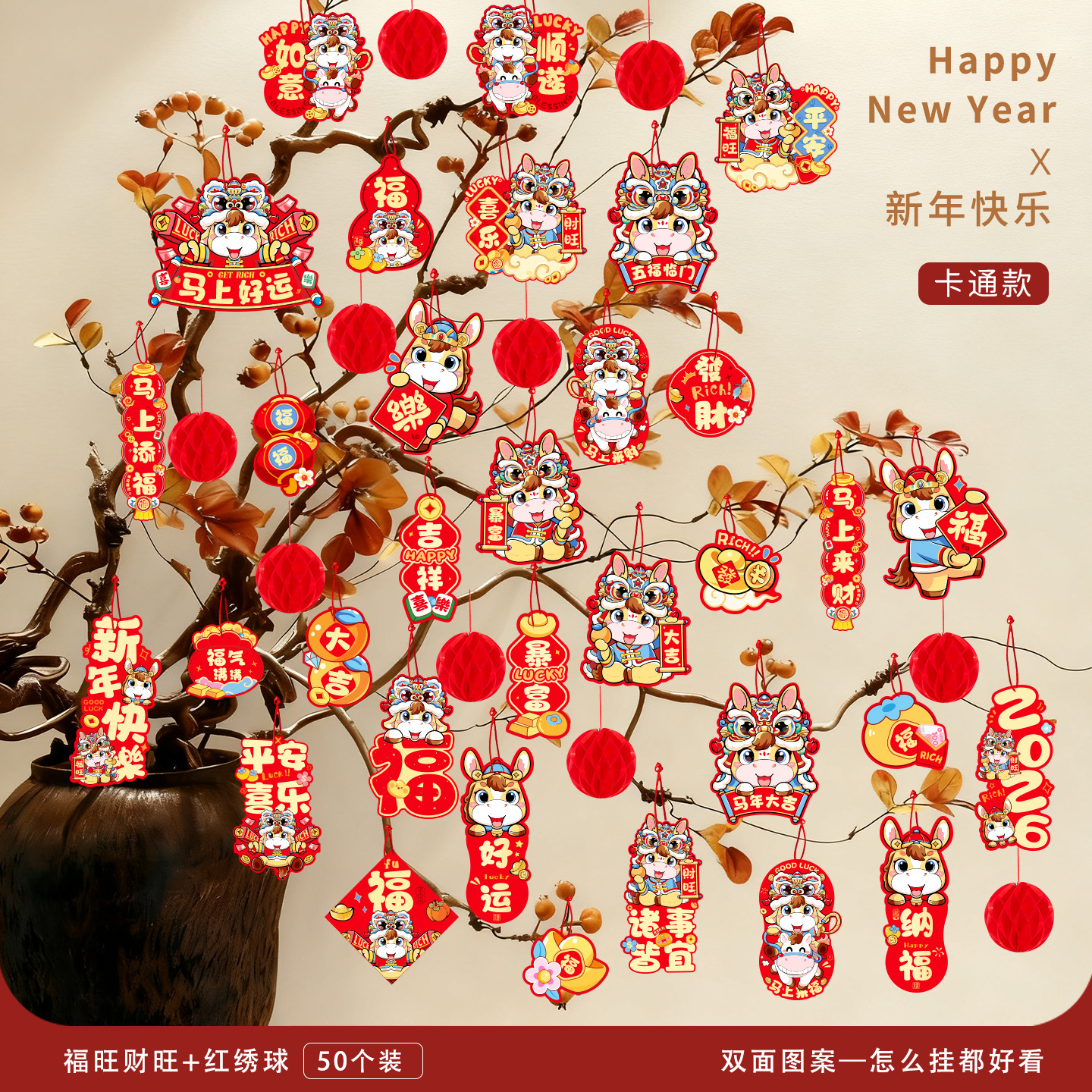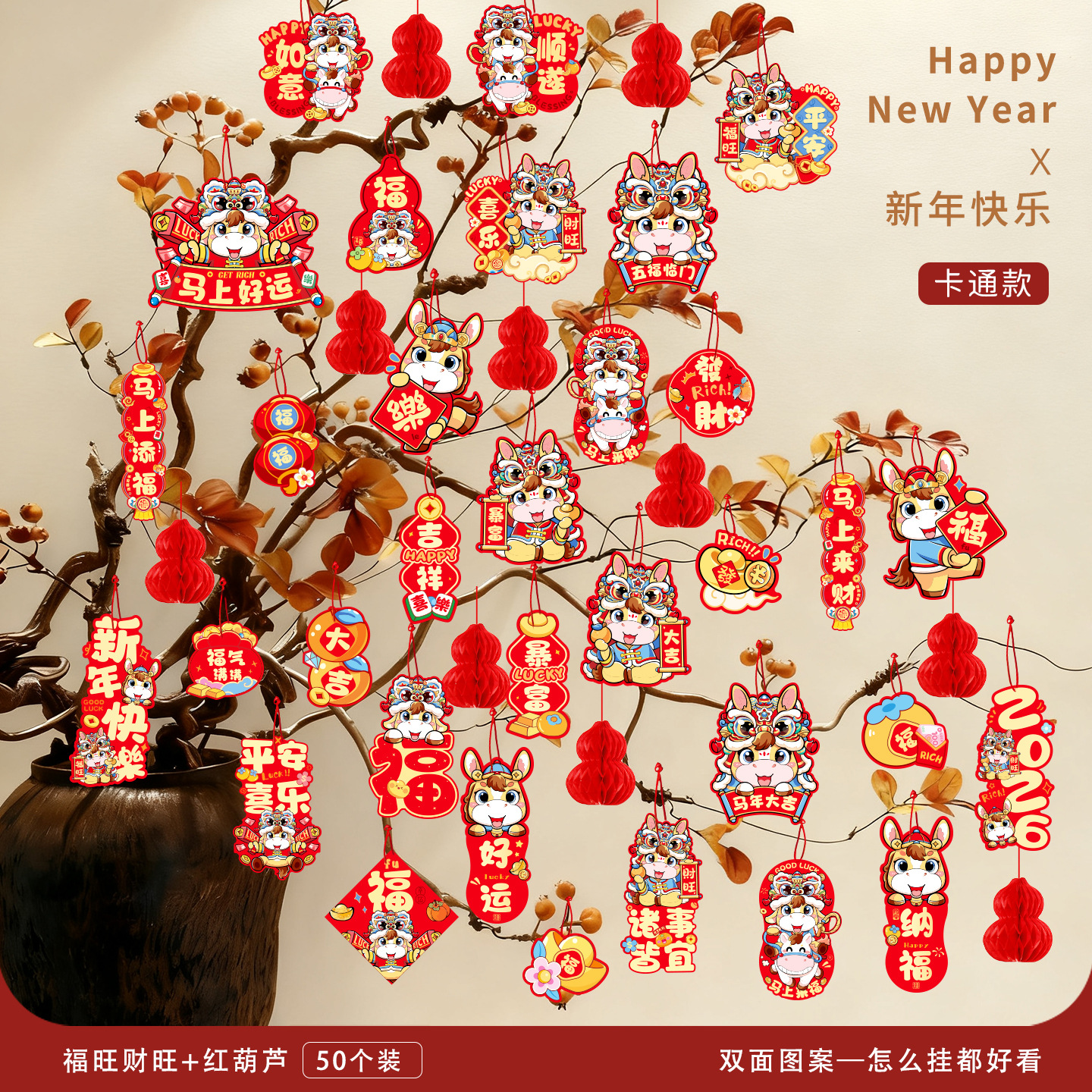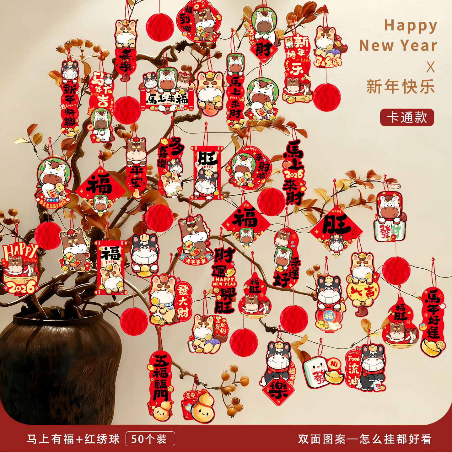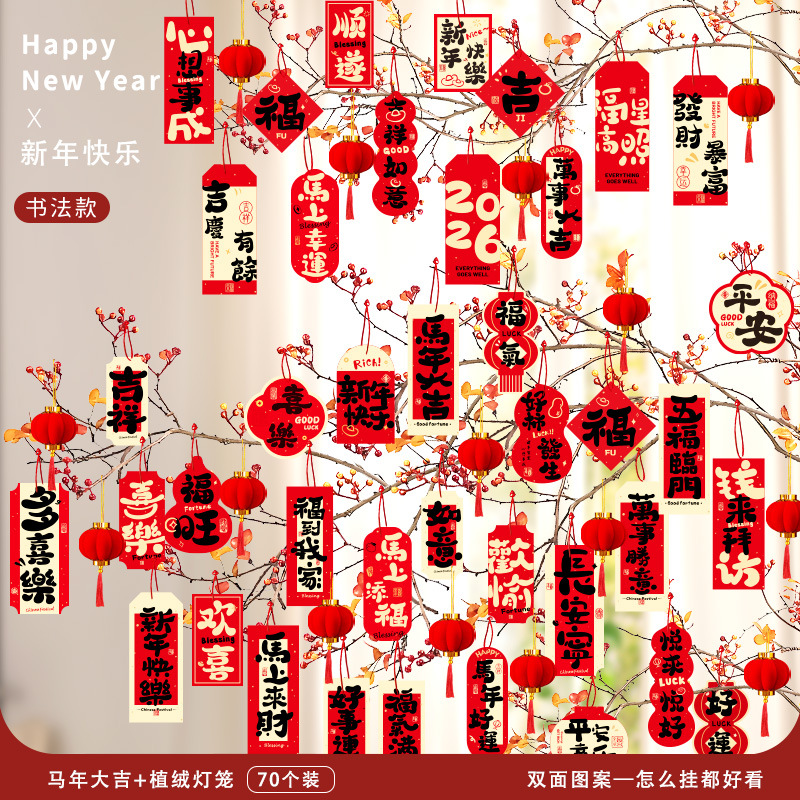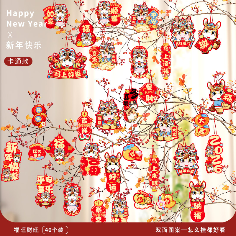 2026马年装饰盆景福字挂饰新年布置春节墙壁绿植过年氛围装扮挂件