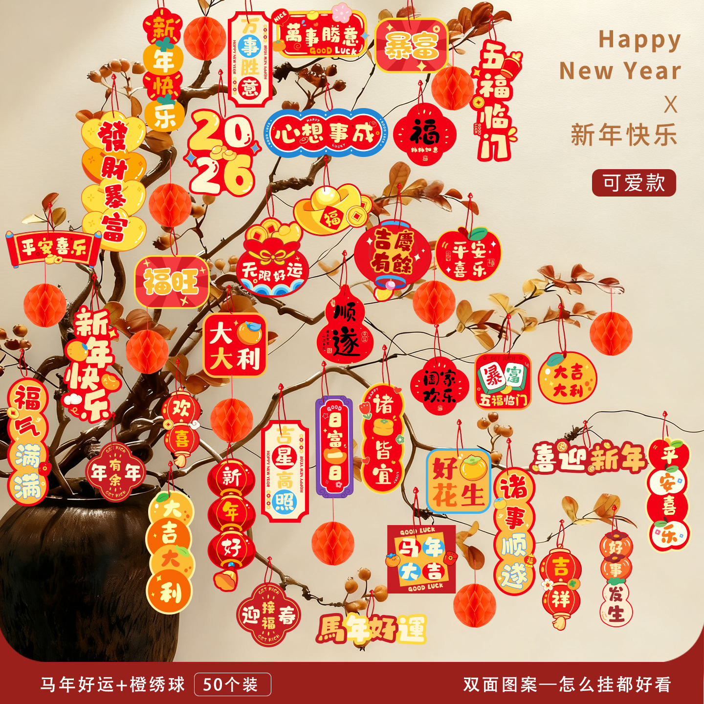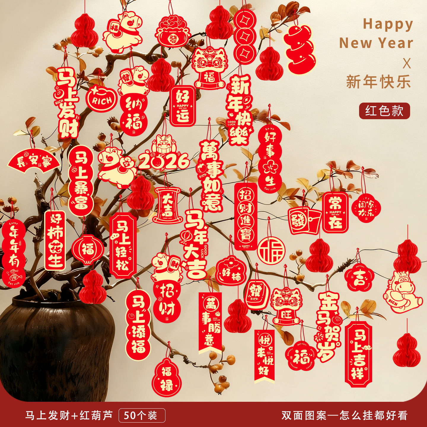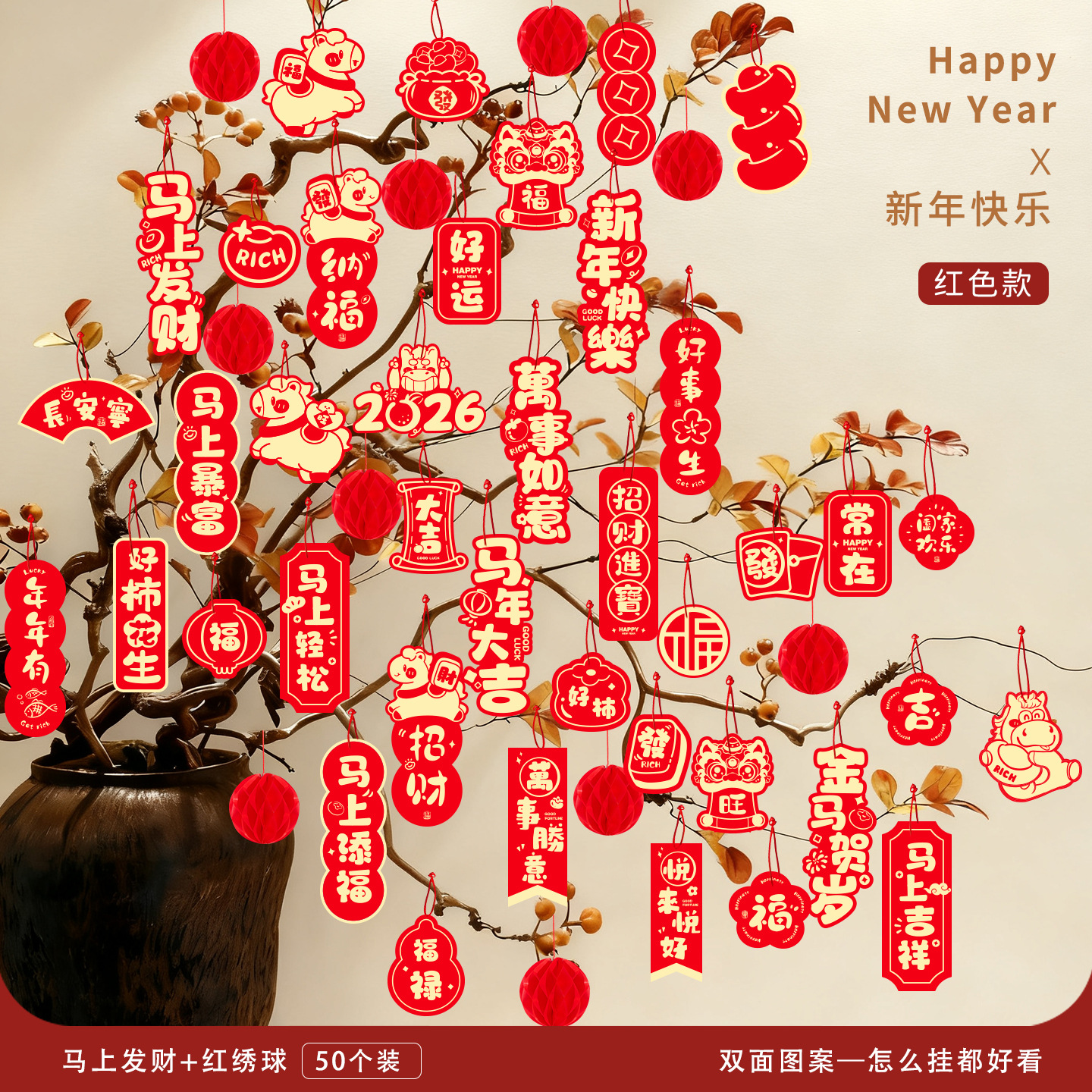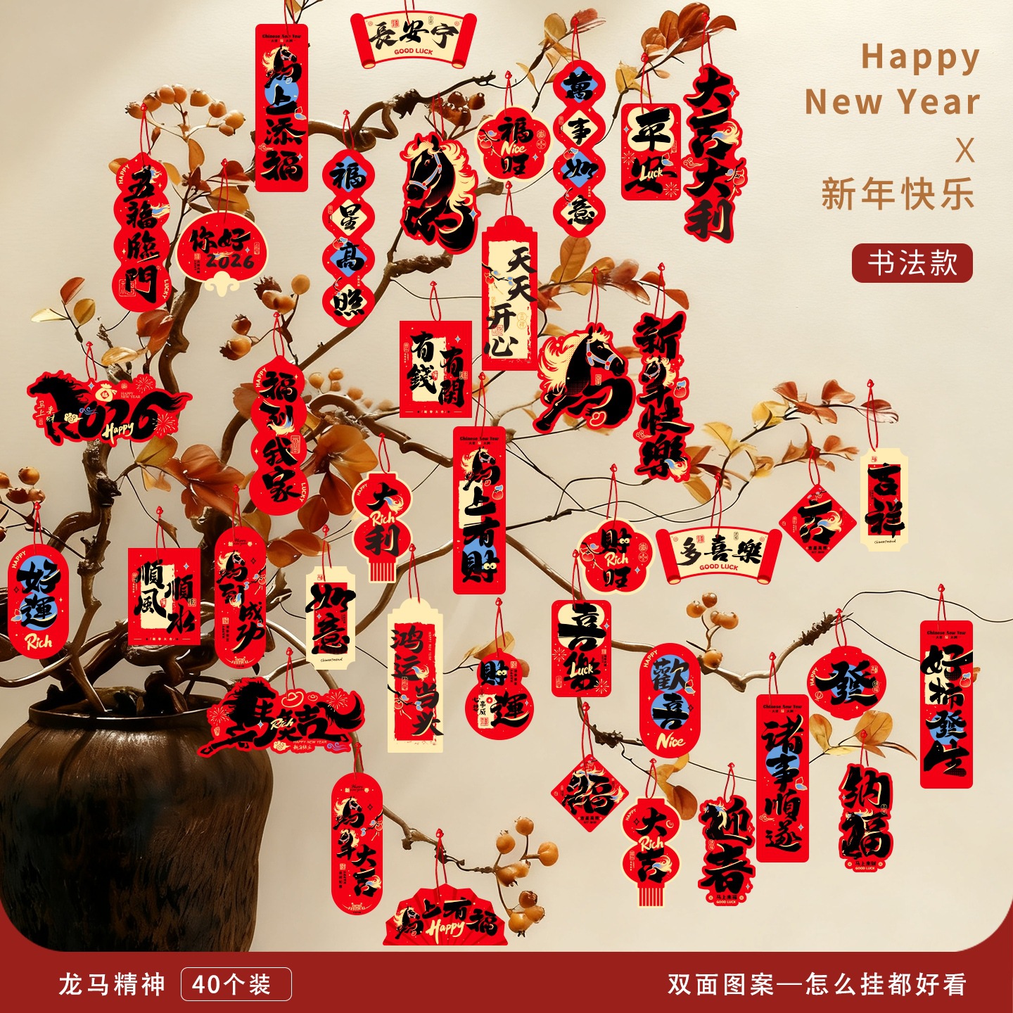 2026马年装饰盆景福字挂饰新年布置春节墙壁绿植过年氛围装扮挂件