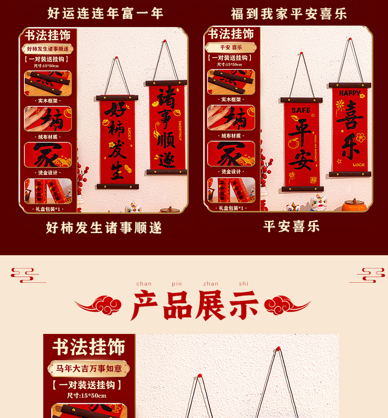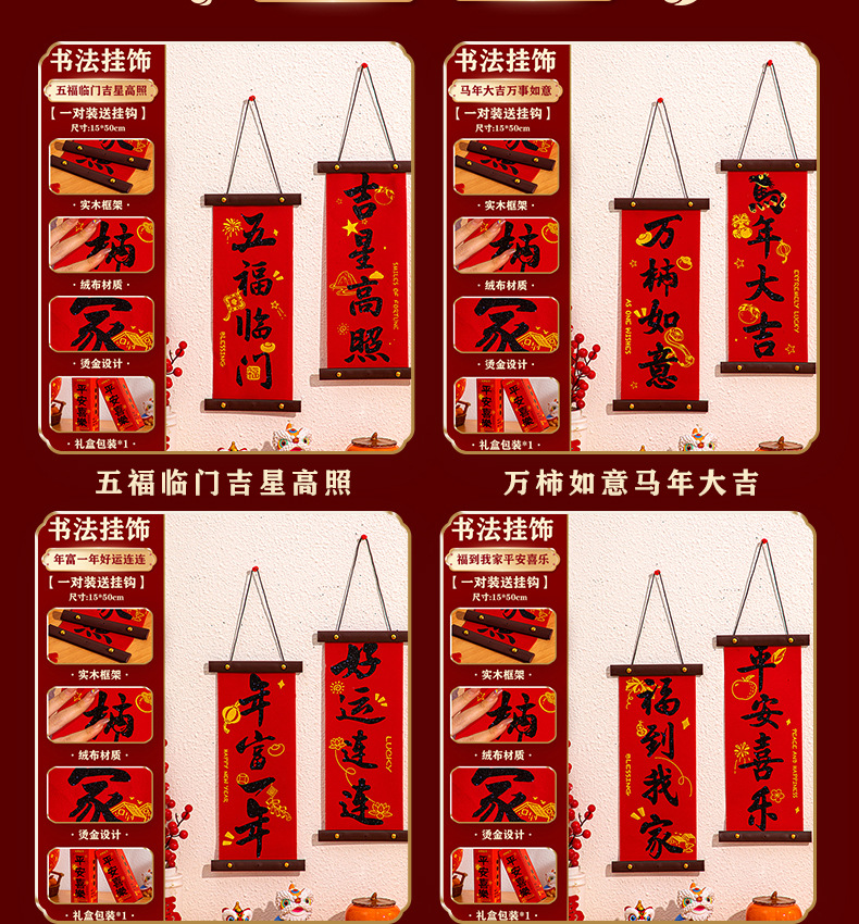 新年春节过年装饰墙面挂件DIY平安喜乐礼物2026布置对联马年挂饰