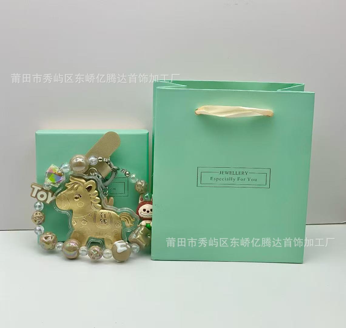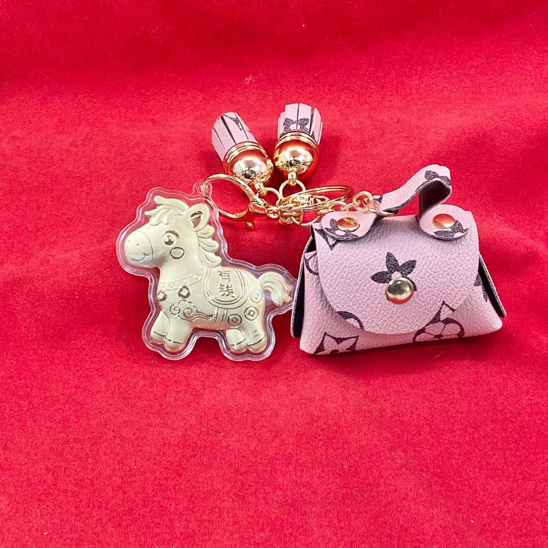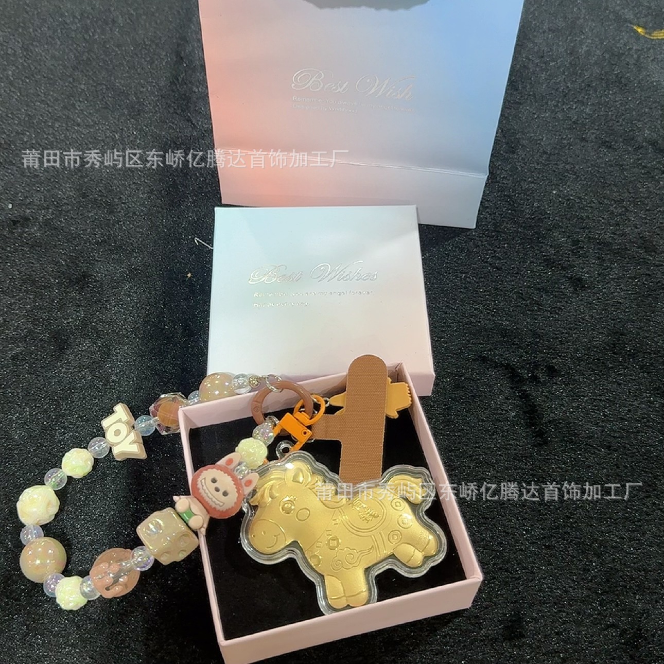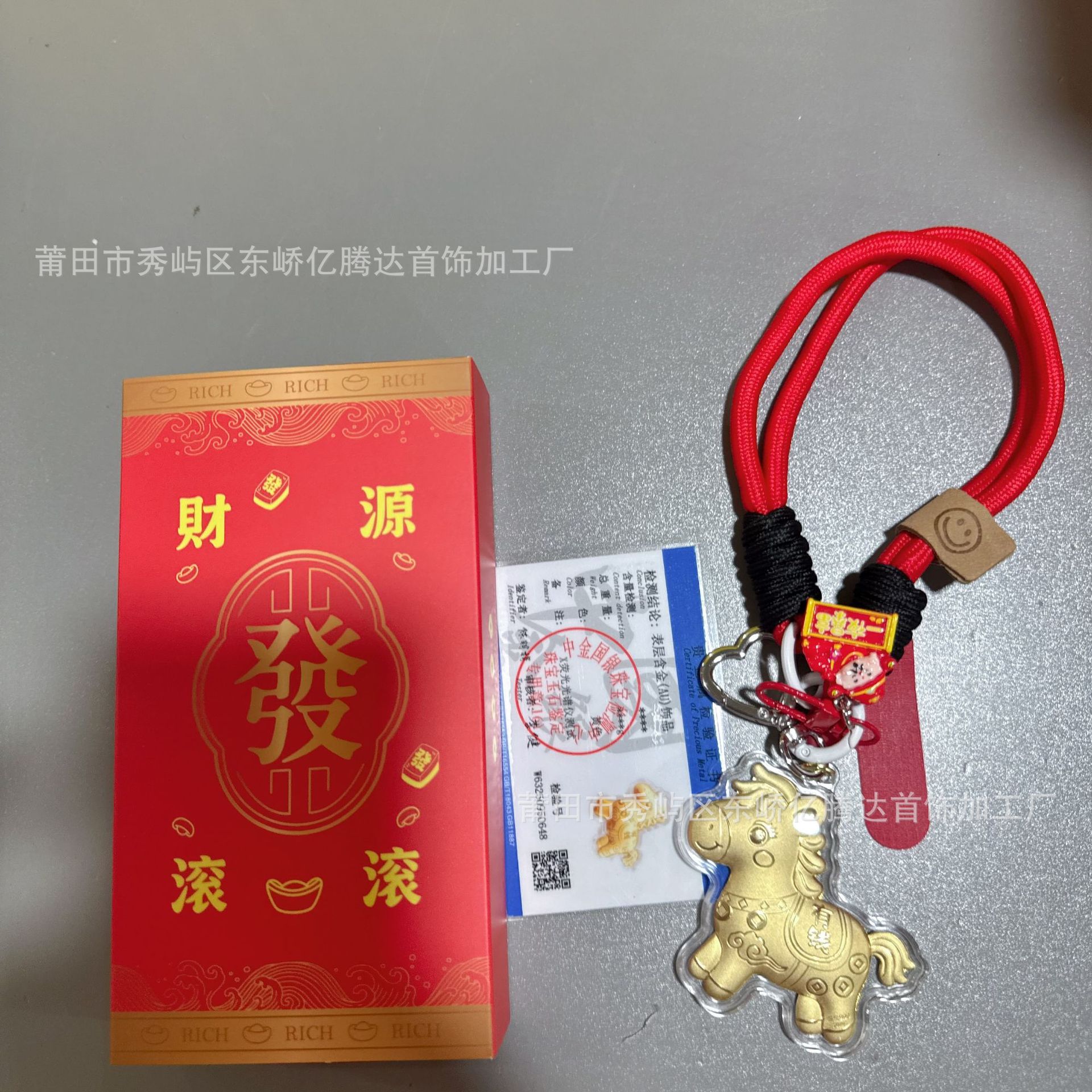 马年钥匙扣马上有钱手机挂件 足金999手机链包包挂件批发