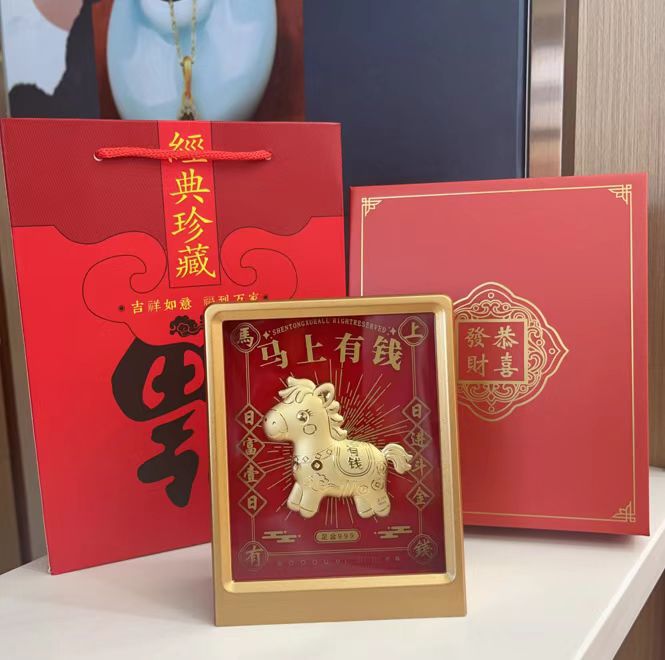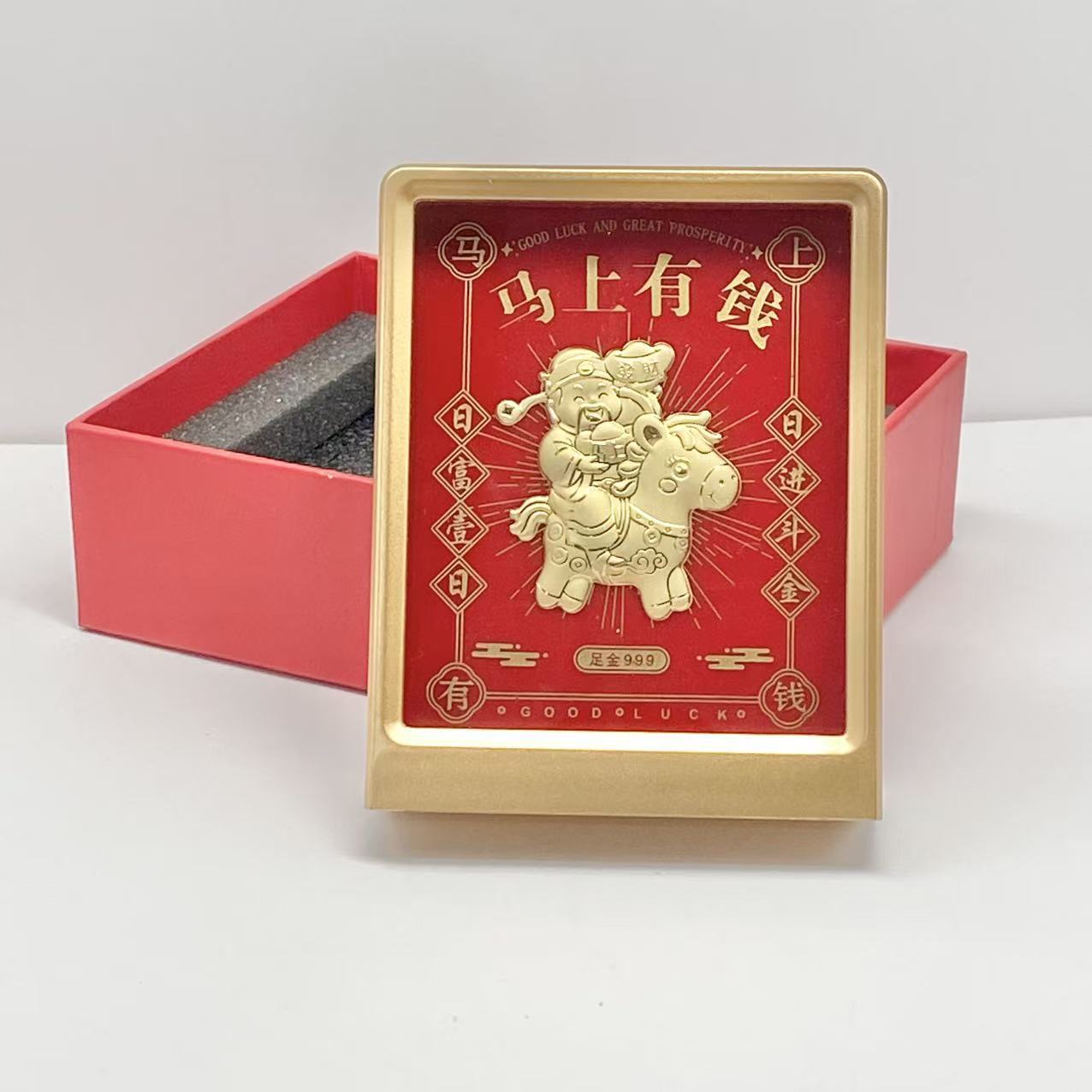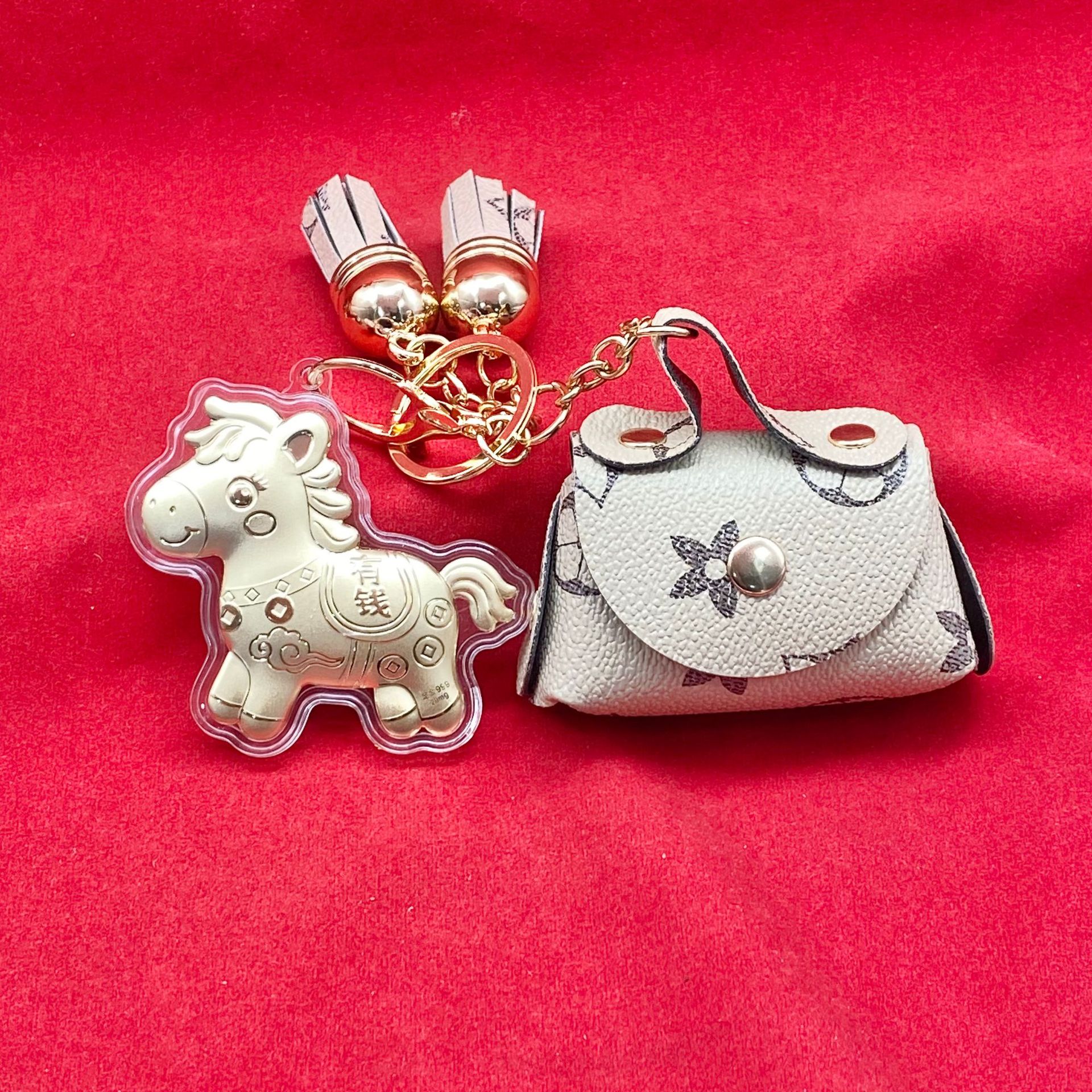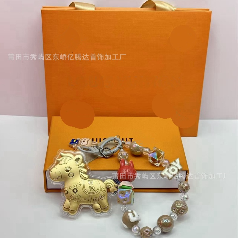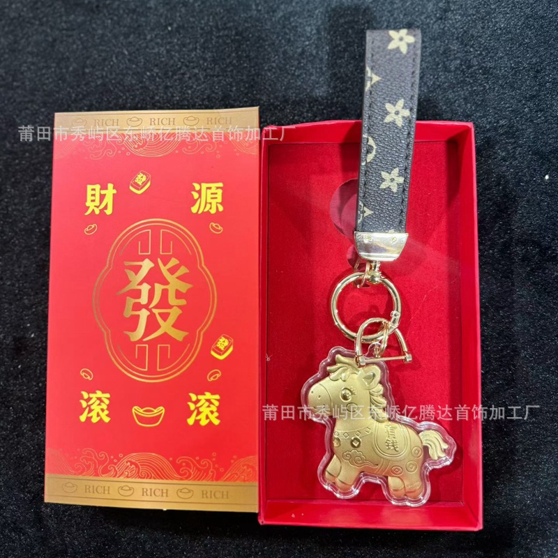 马年钥匙扣马上有钱手机挂件 足金999手机链包包挂件批发