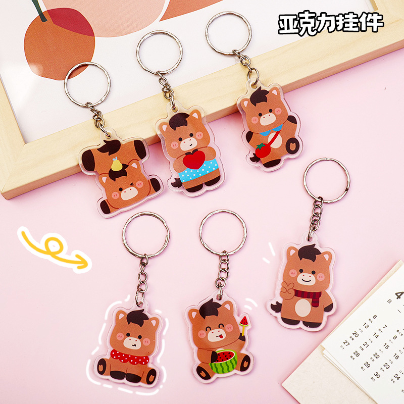 新款马年可爱小马驹卡通亚克力钥匙扣挂件书包书包挂饰动漫钥匙圈