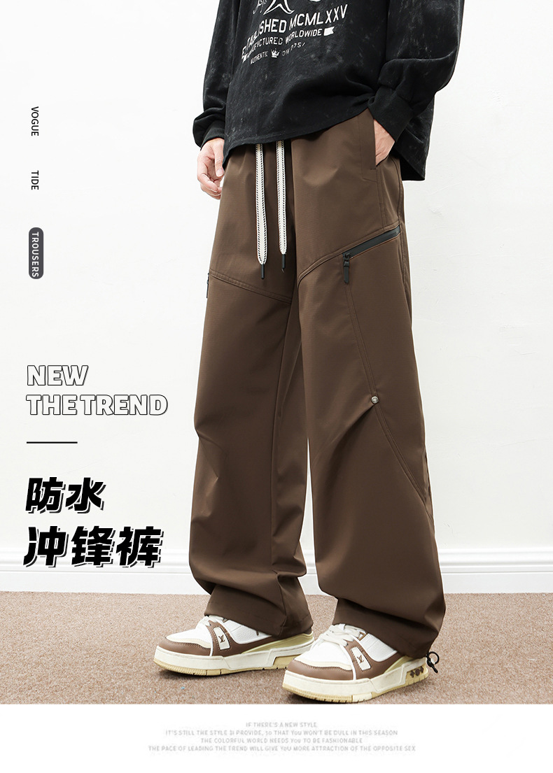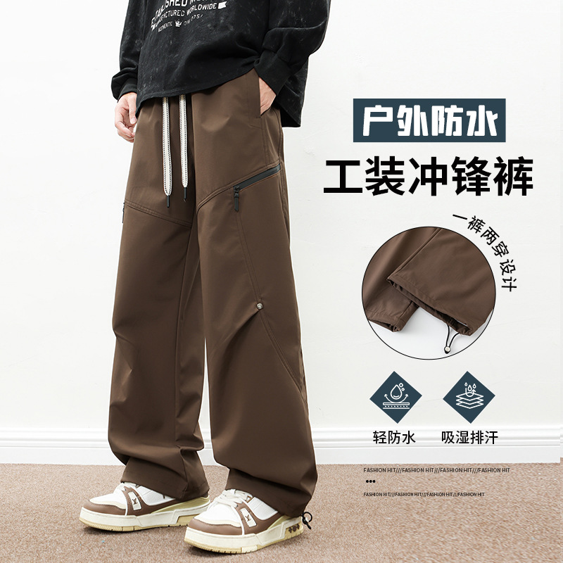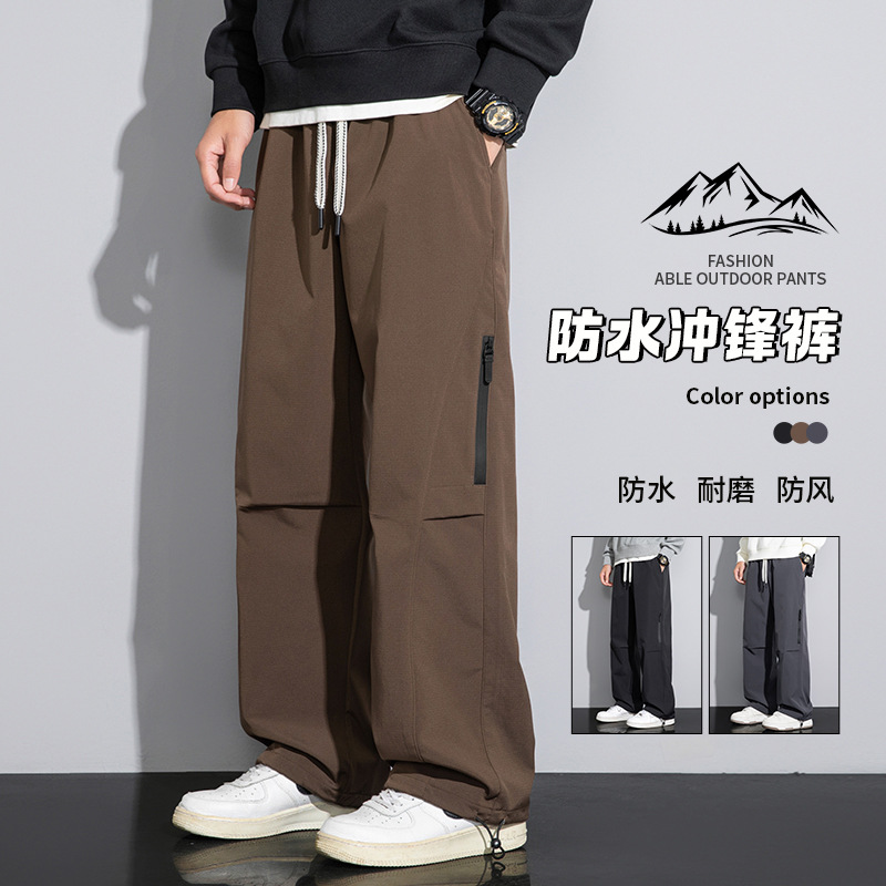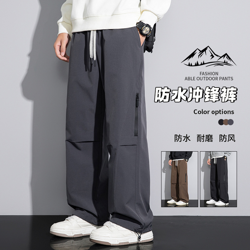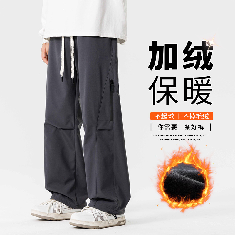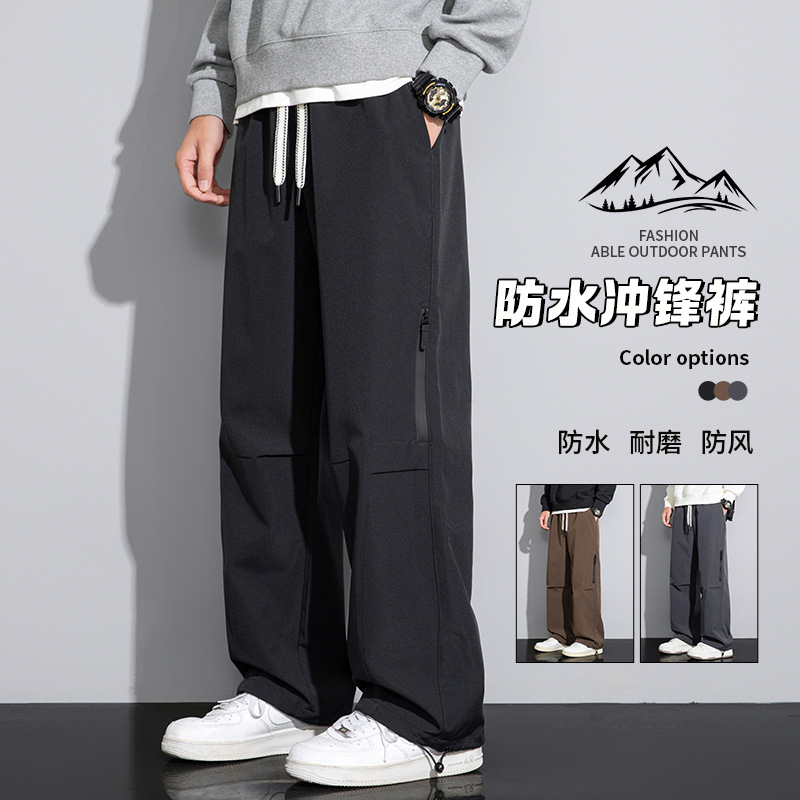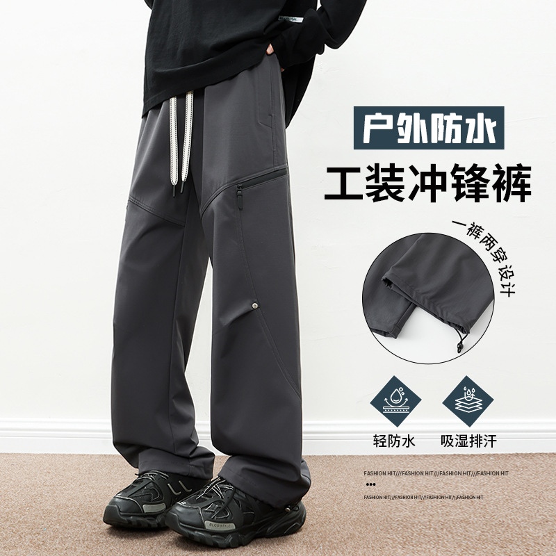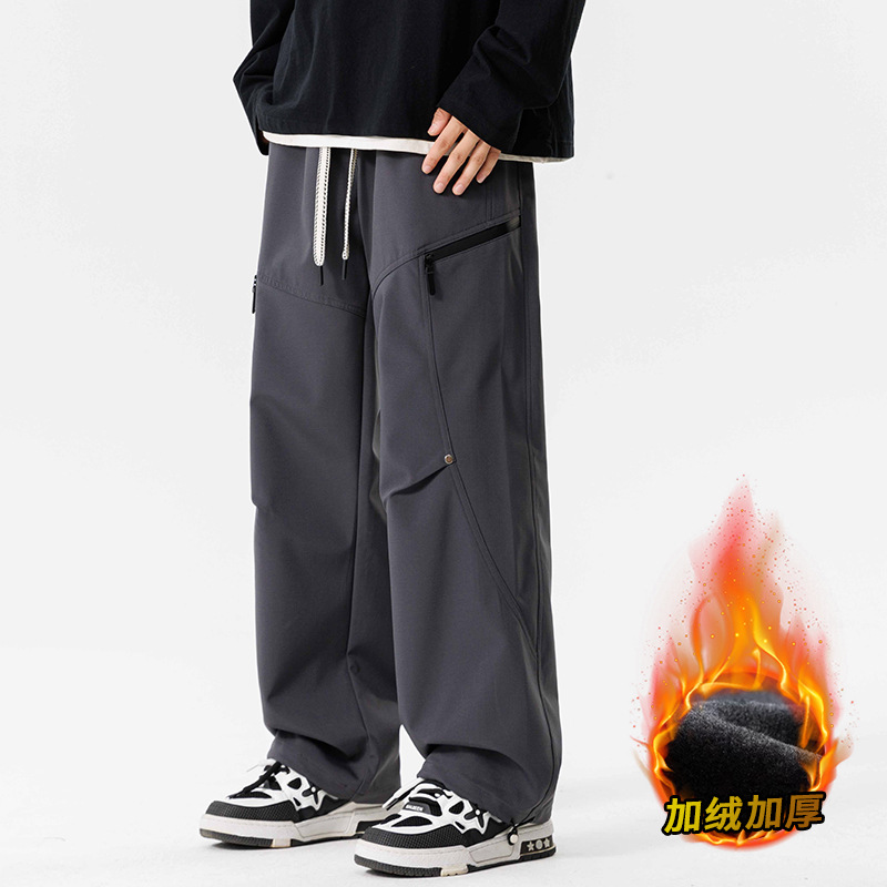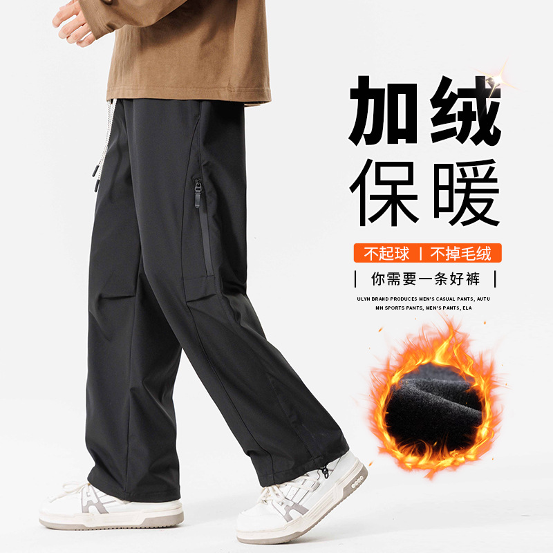 户外工装裤男款秋冬直筒长裤青少年裤子男宽松加绒加厚防水冲锋裤