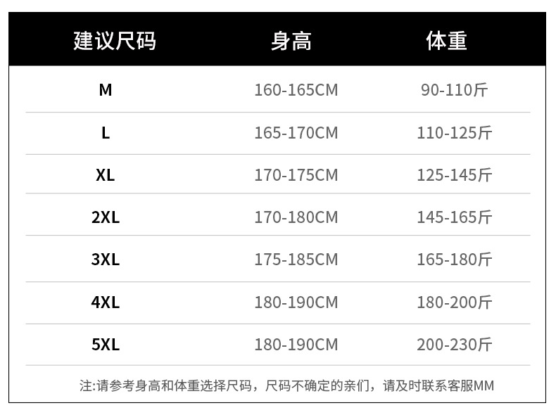| 5XL【建议200-230斤】 | USD $10.3 | 100 piece available |