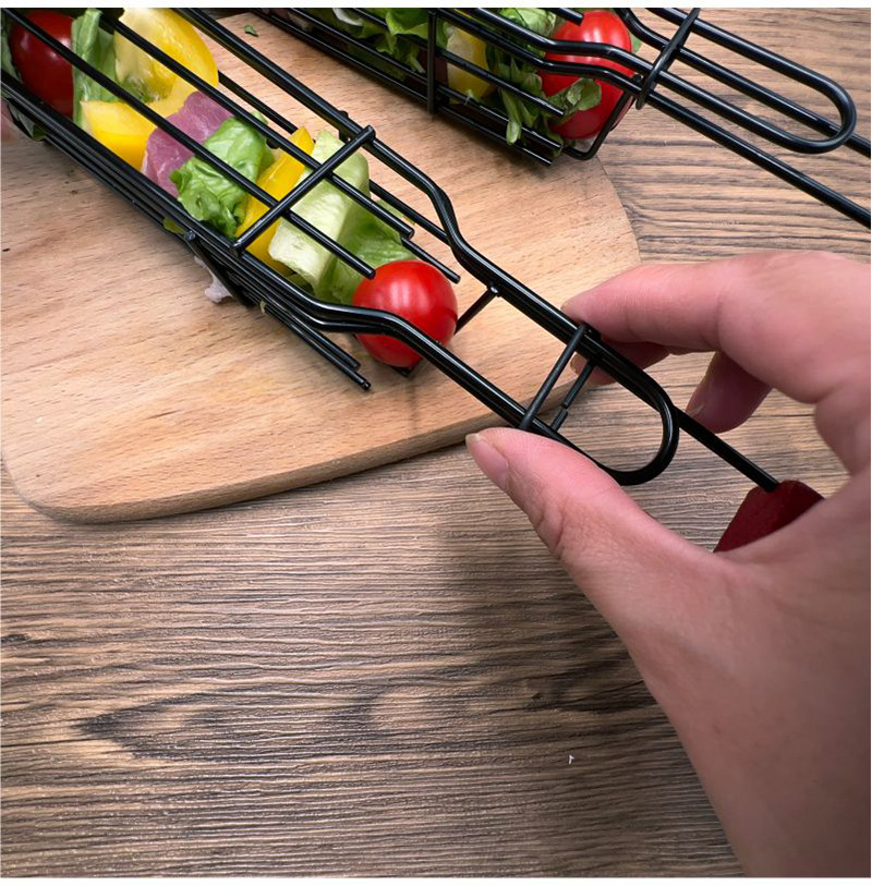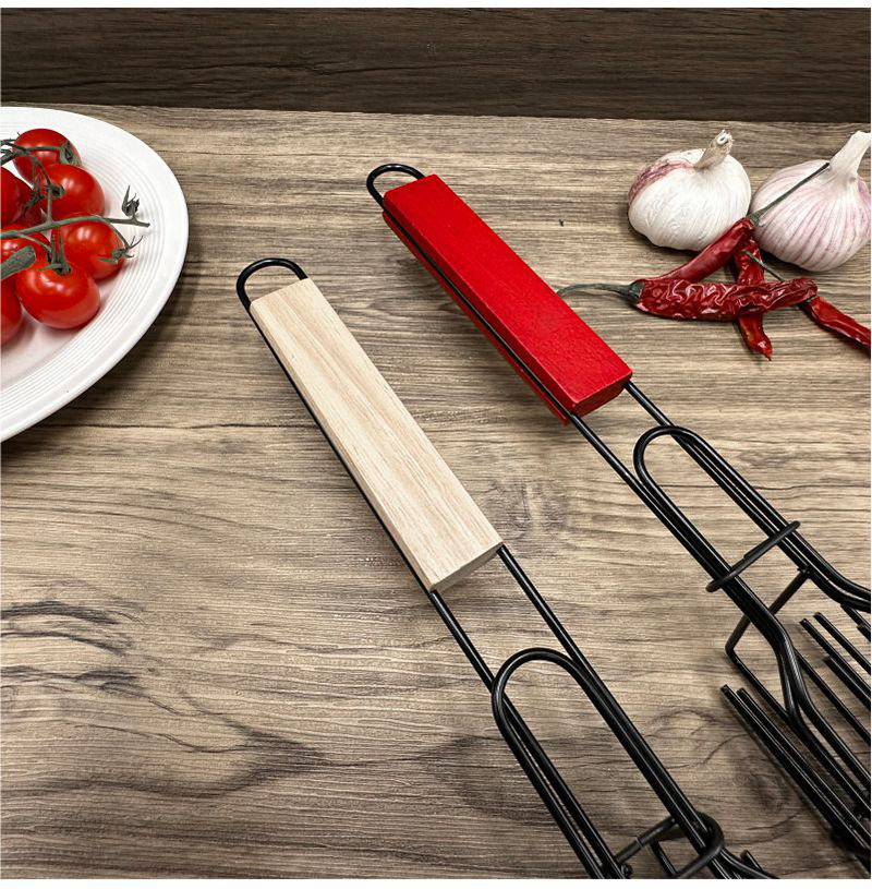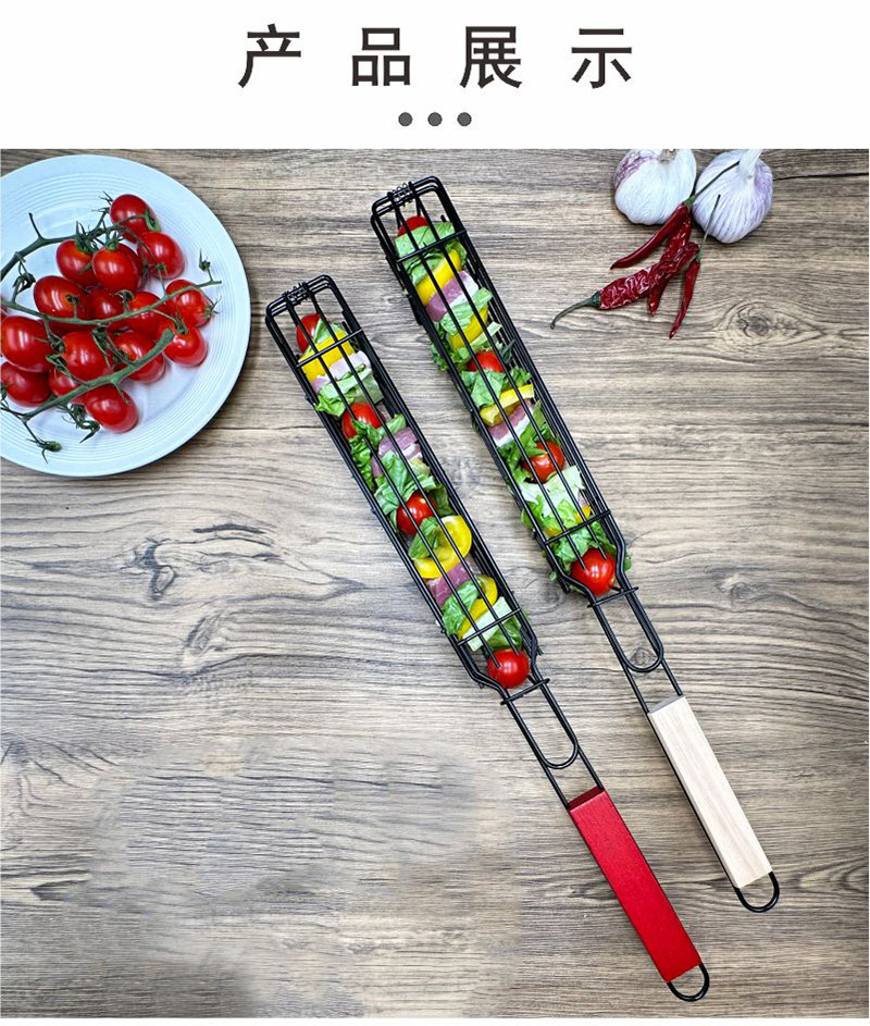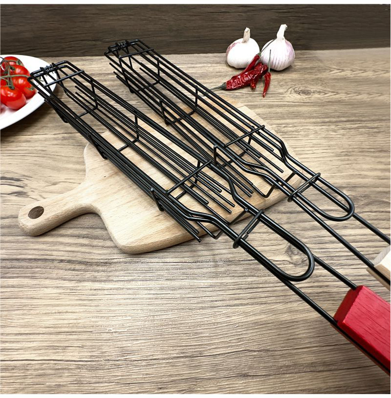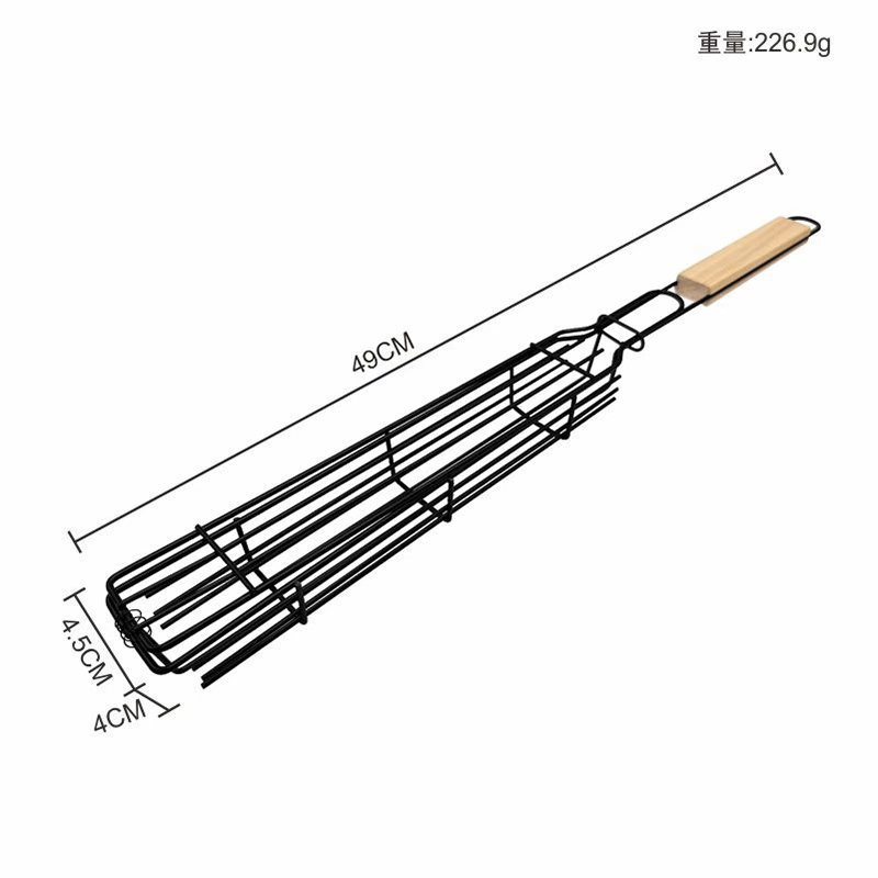 烧烤网烧烤笼香肠夹木柄BBQ网夹户外烧烤架不沾烧烤篮电泳香肠网