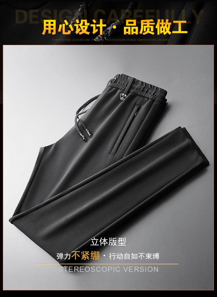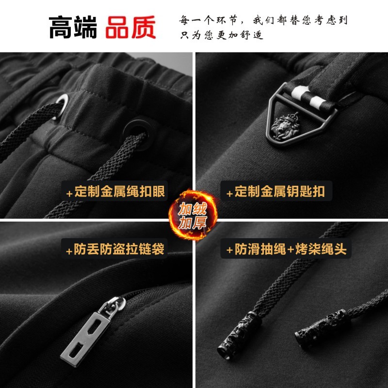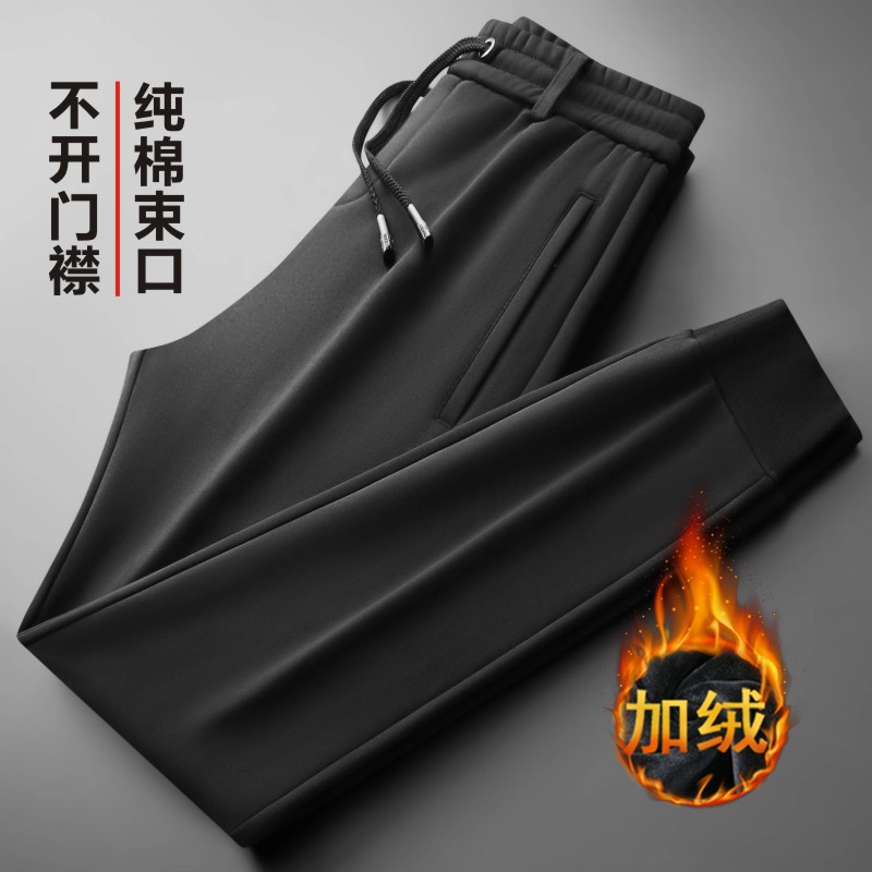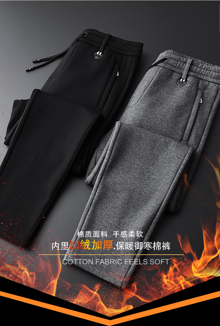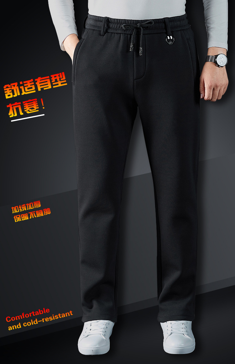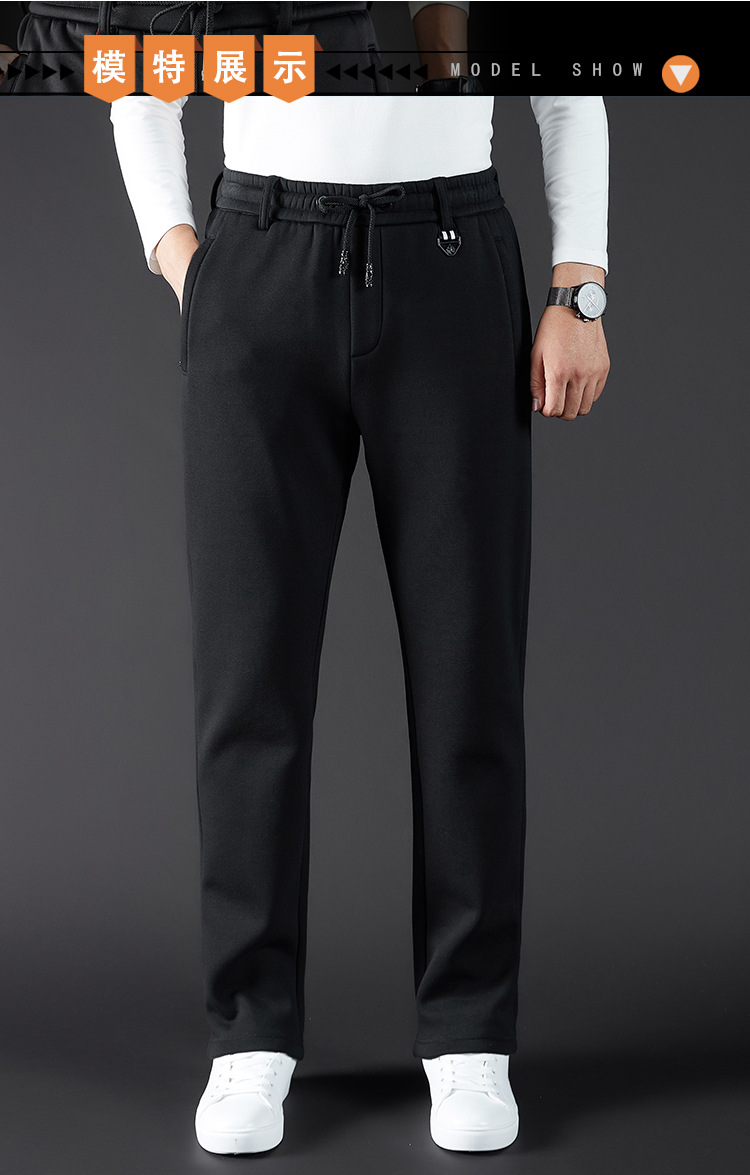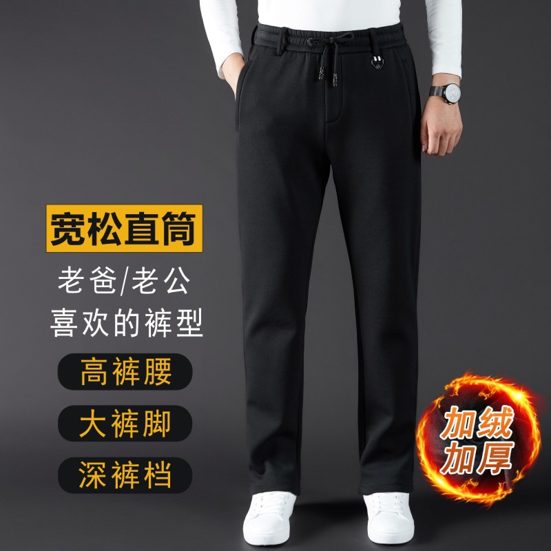 轻奢男士休闲裤秋冬中年男裤宽松直筒运动裤男弹力卫裤加绒棉裤子