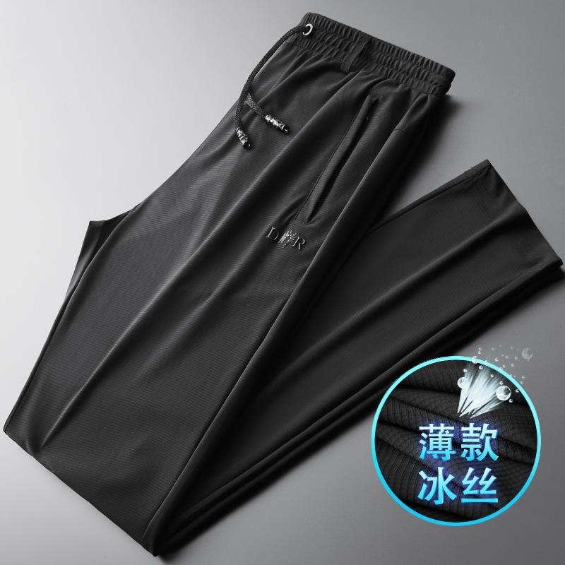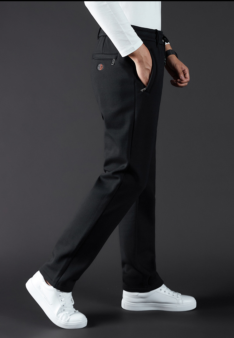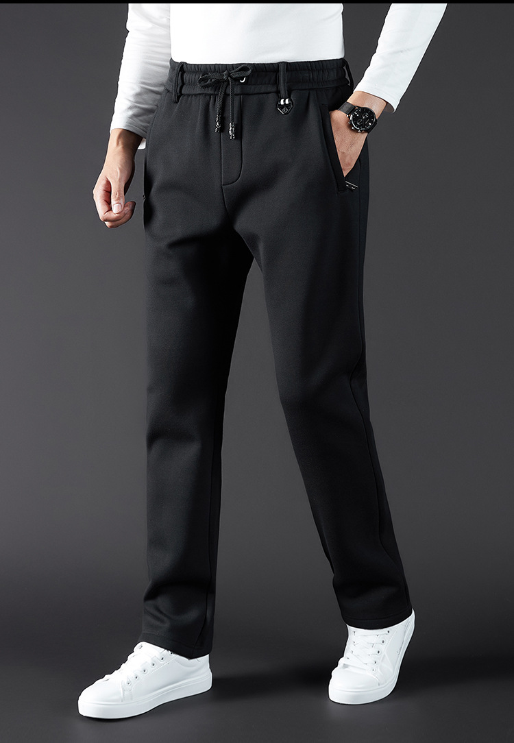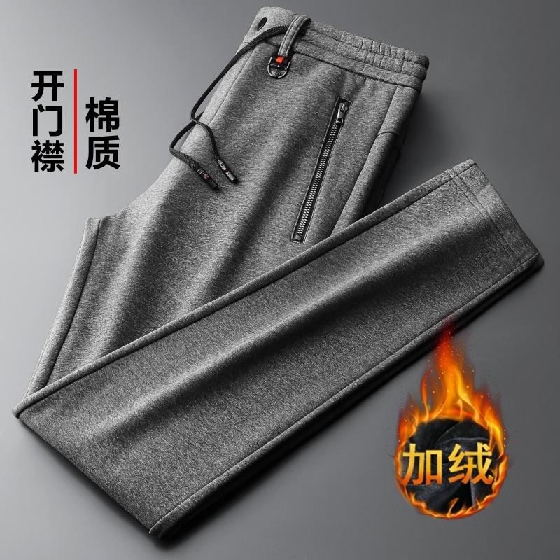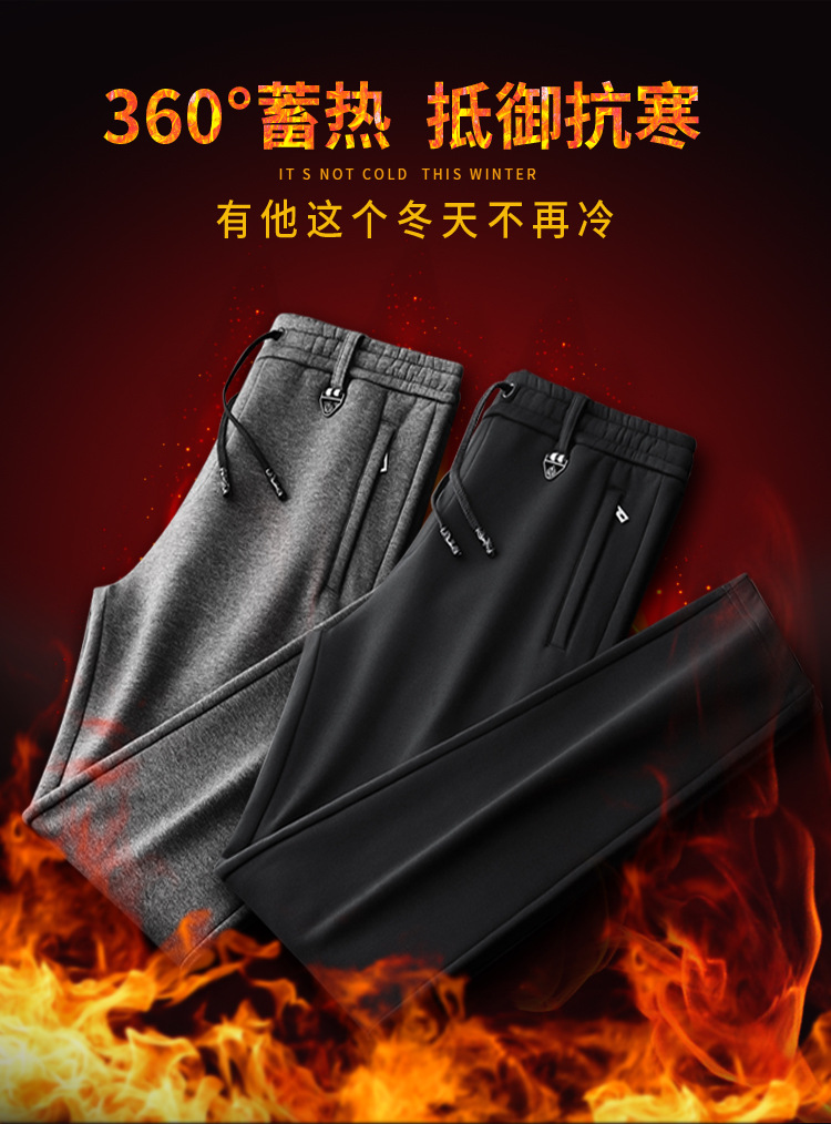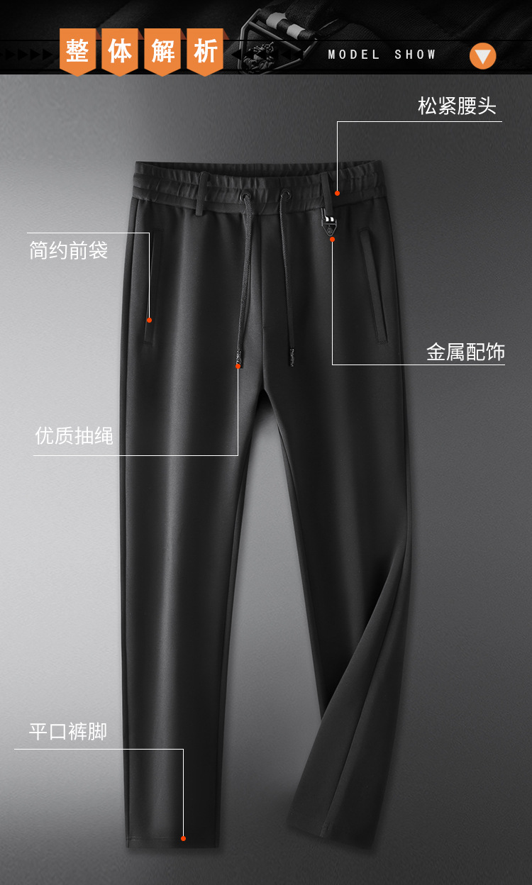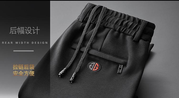 轻奢男士休闲裤秋冬中年男裤宽松直筒运动裤男弹力卫裤加绒棉裤子
