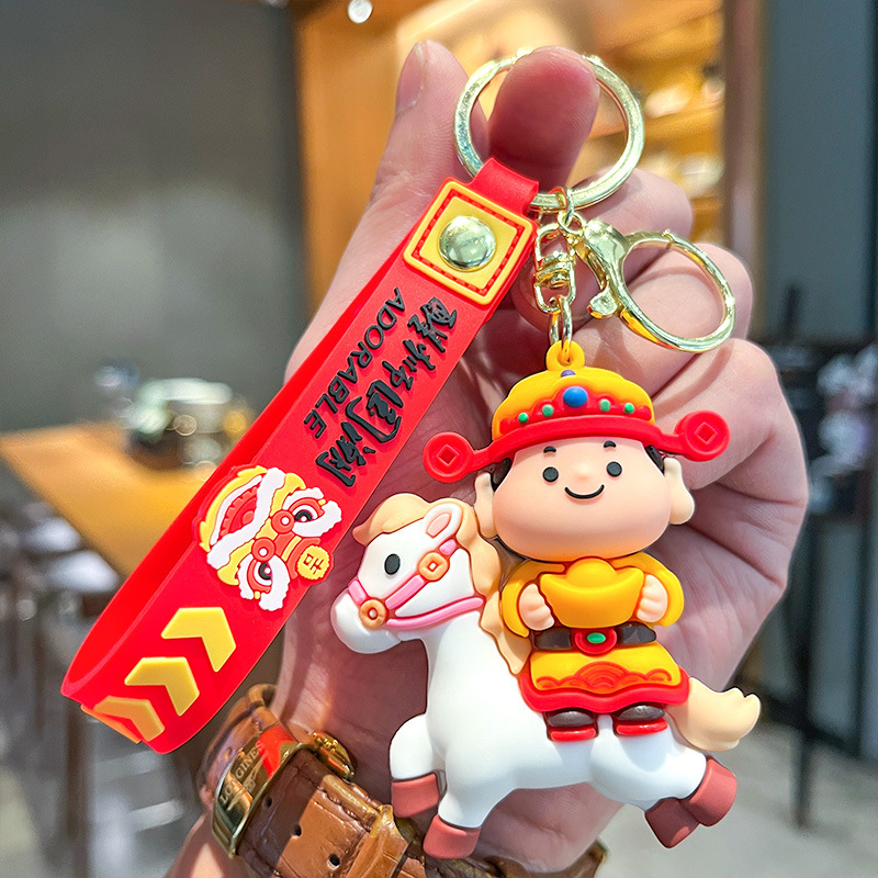 卡通马年生肖小财神马上发钥匙扣挂件挂饰汽车钥匙链地推礼物批发