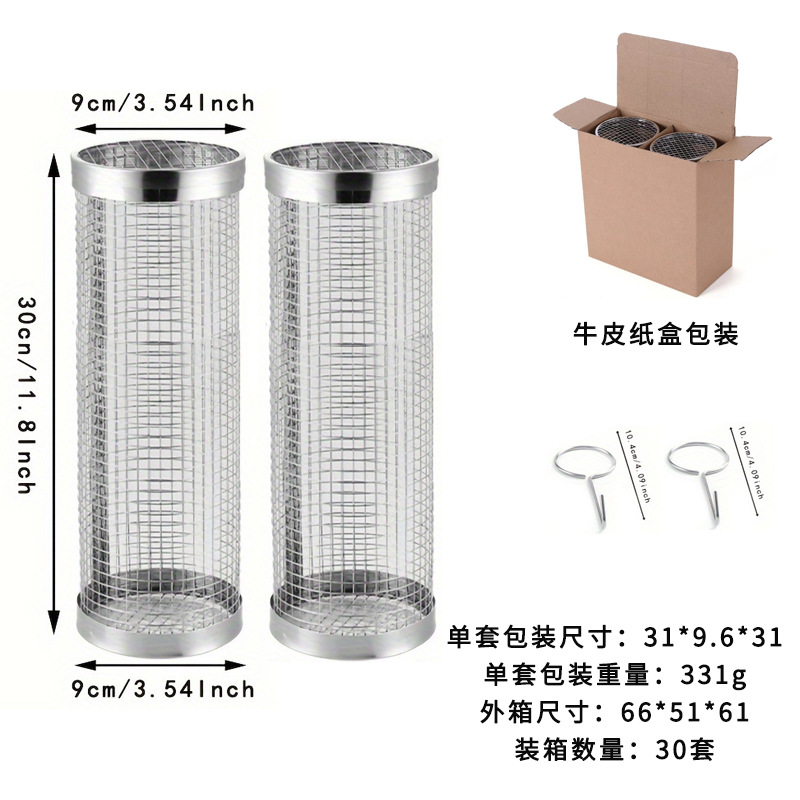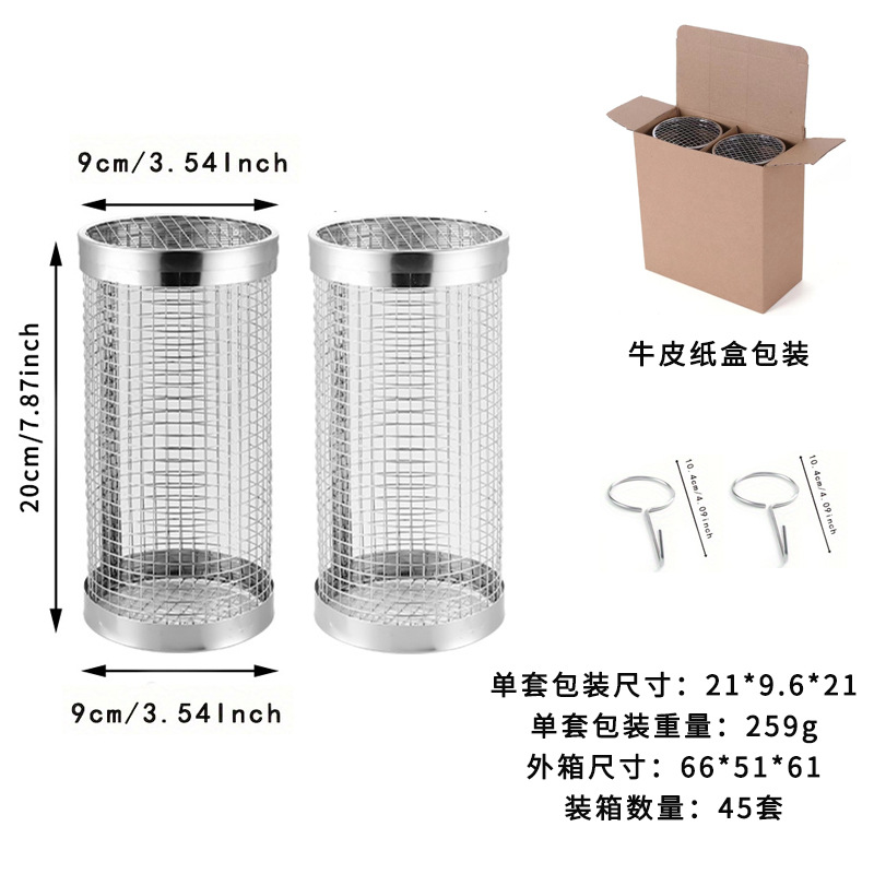 烧烤笼圆形烧烤桶户外BBQ烟熏笼便携式烧烤炉子旋转滚动不锈钢笼