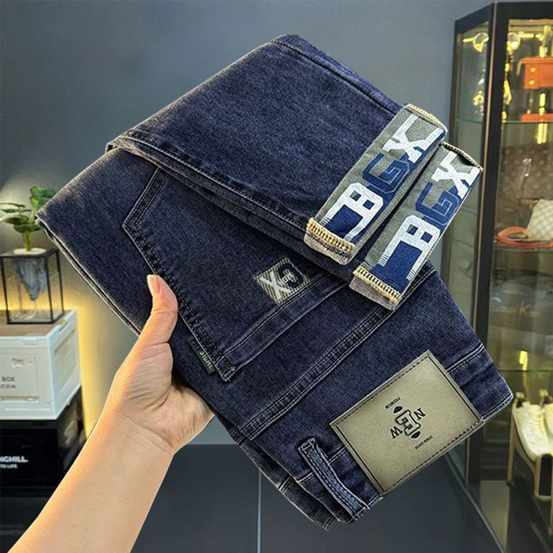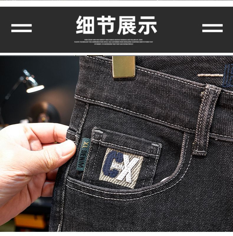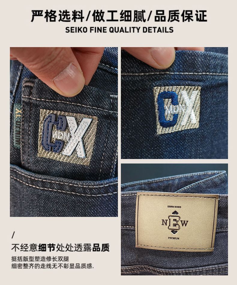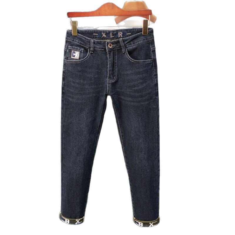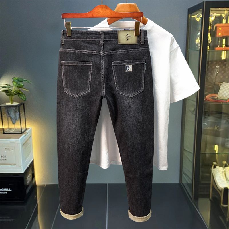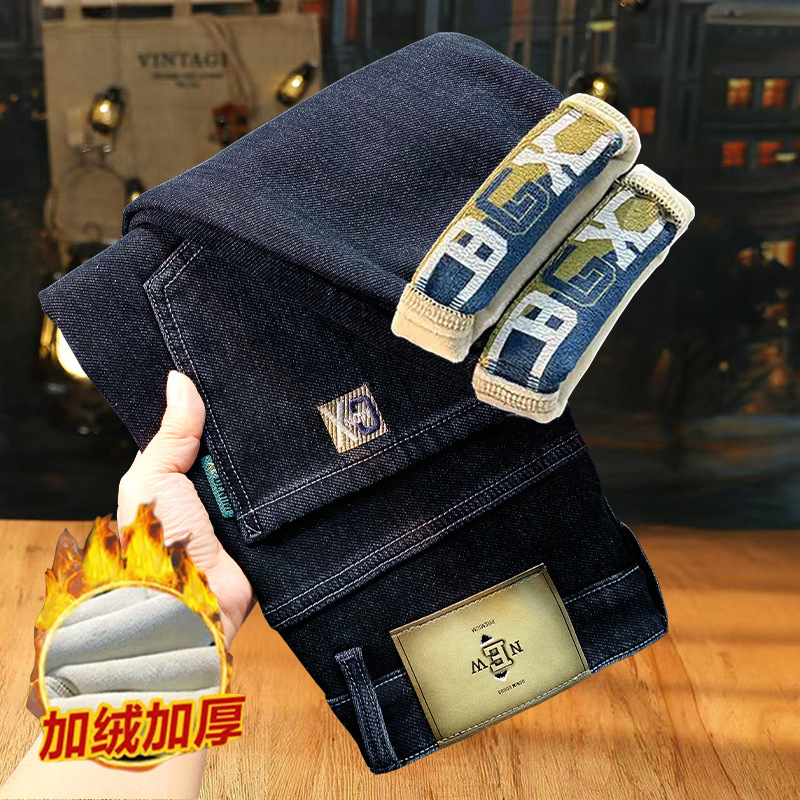 一件代发秋冬新款加绒加厚牛仔裤男士小直筒修身弹力保暖休闲裤子