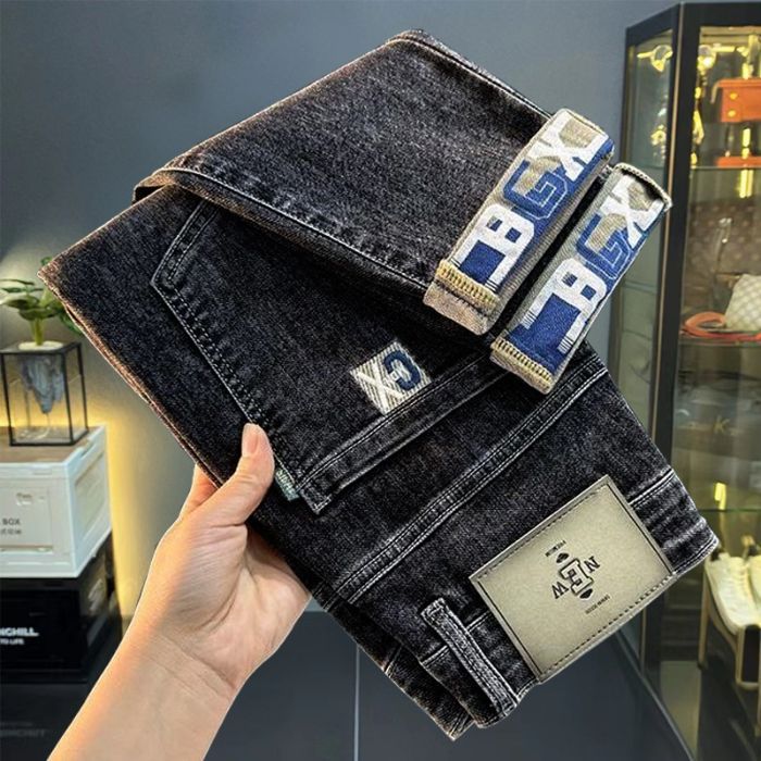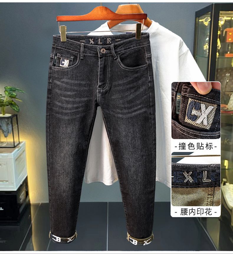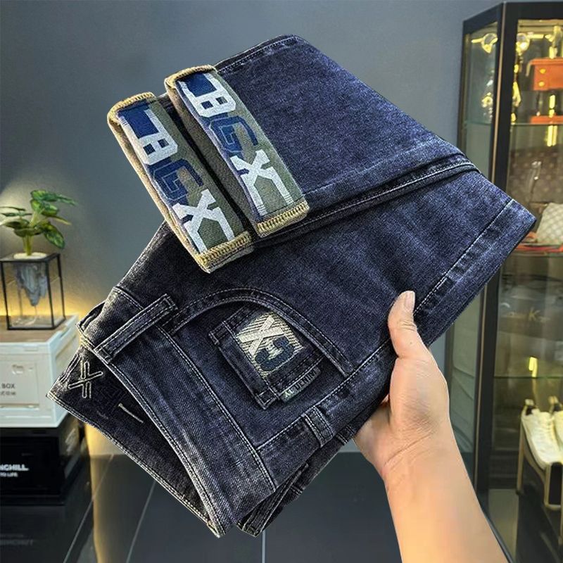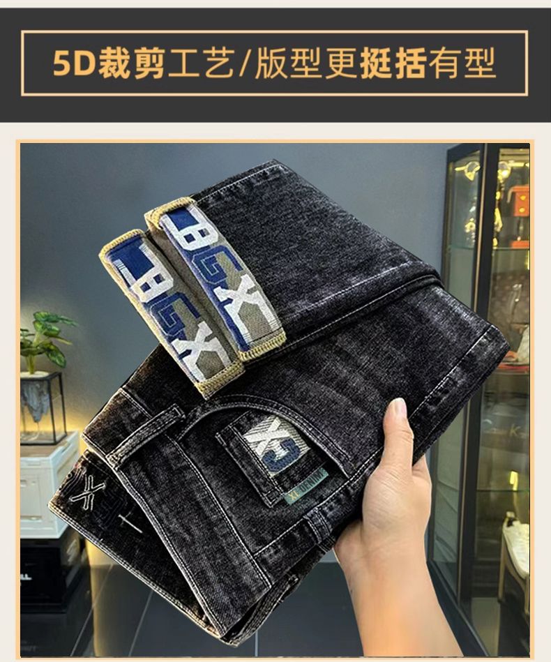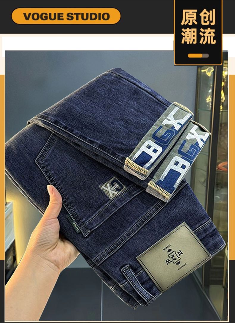 一件代发秋冬新款加绒加厚牛仔裤男士小直筒修身弹力保暖休闲裤子