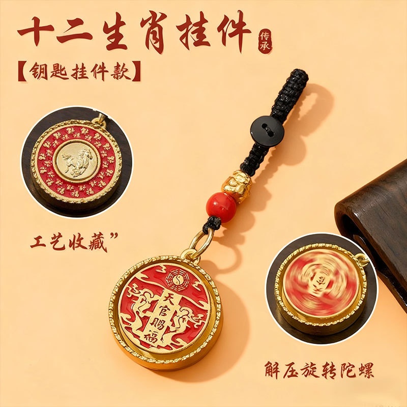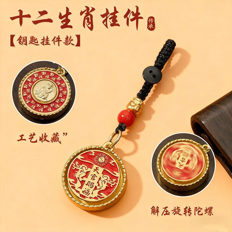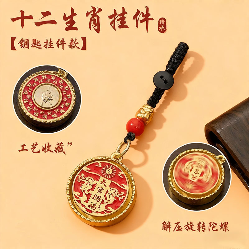 马年挂件十二生肖天官赐福转转挂件送礼工艺品国风钥匙扣国潮饰品