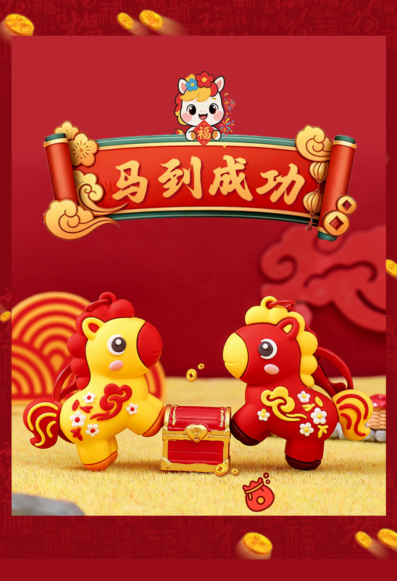 萌叙正版新年小马钥匙扣马到成功生肖公仔挂饰创意小礼品马年挂件
