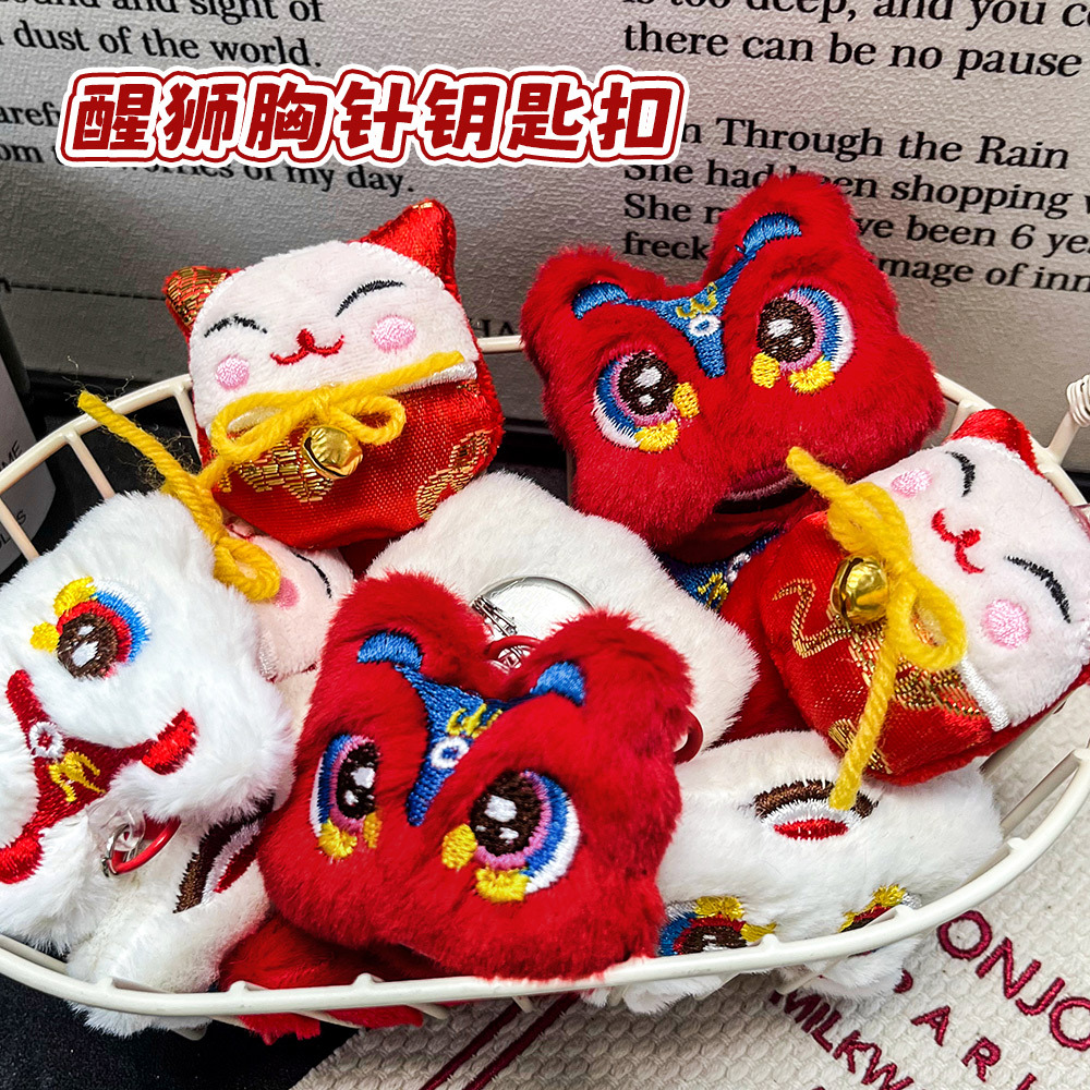 卡通毛绒醒狮钥匙扣衣服装饰胸针小礼品马年可爱包包钥匙扣挂件