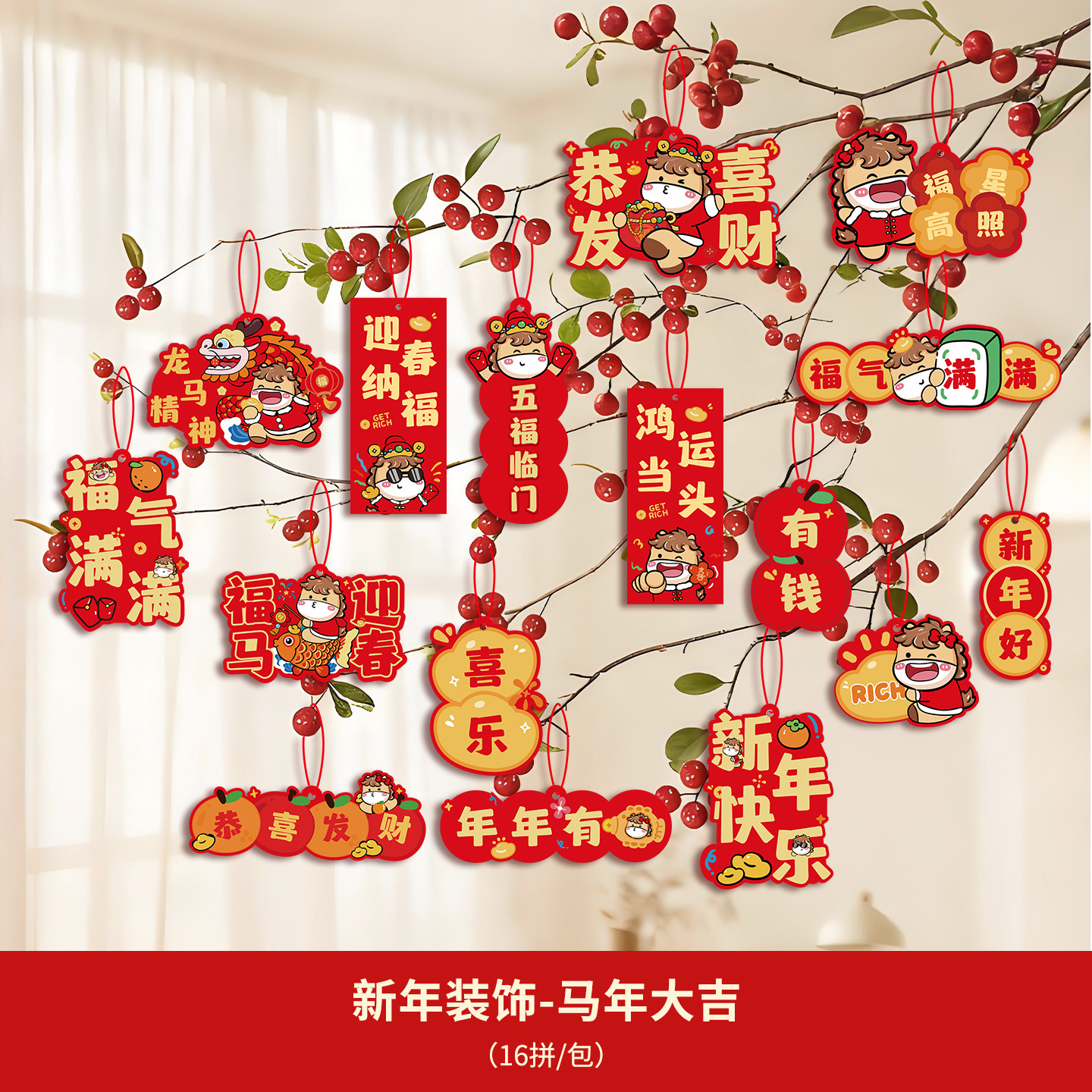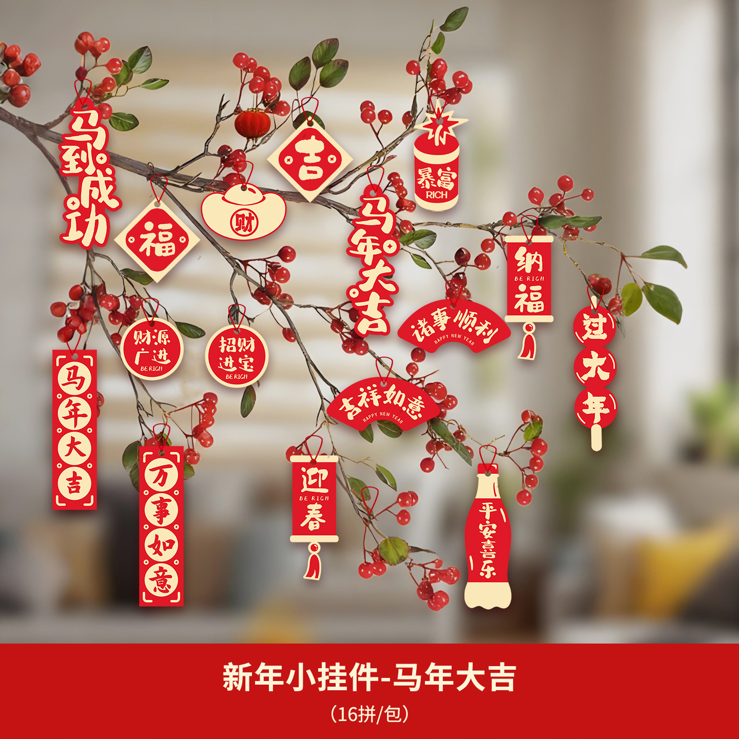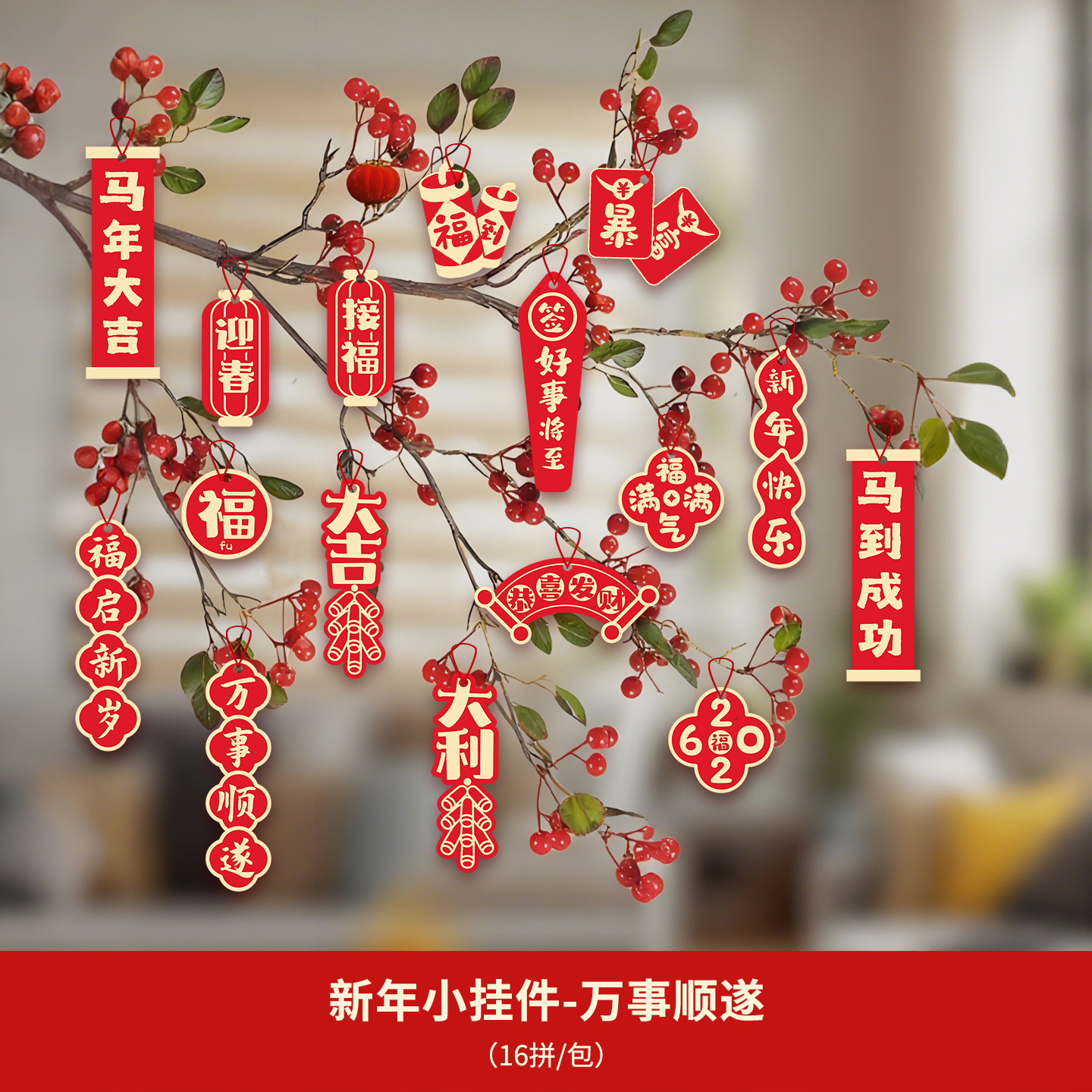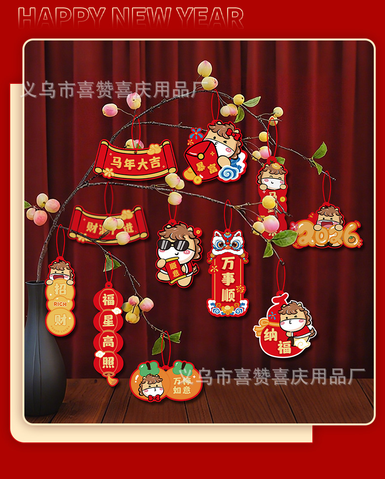 2026春节装饰新年挂件福字过年马年小对联客厅植物盆景挂饰批发