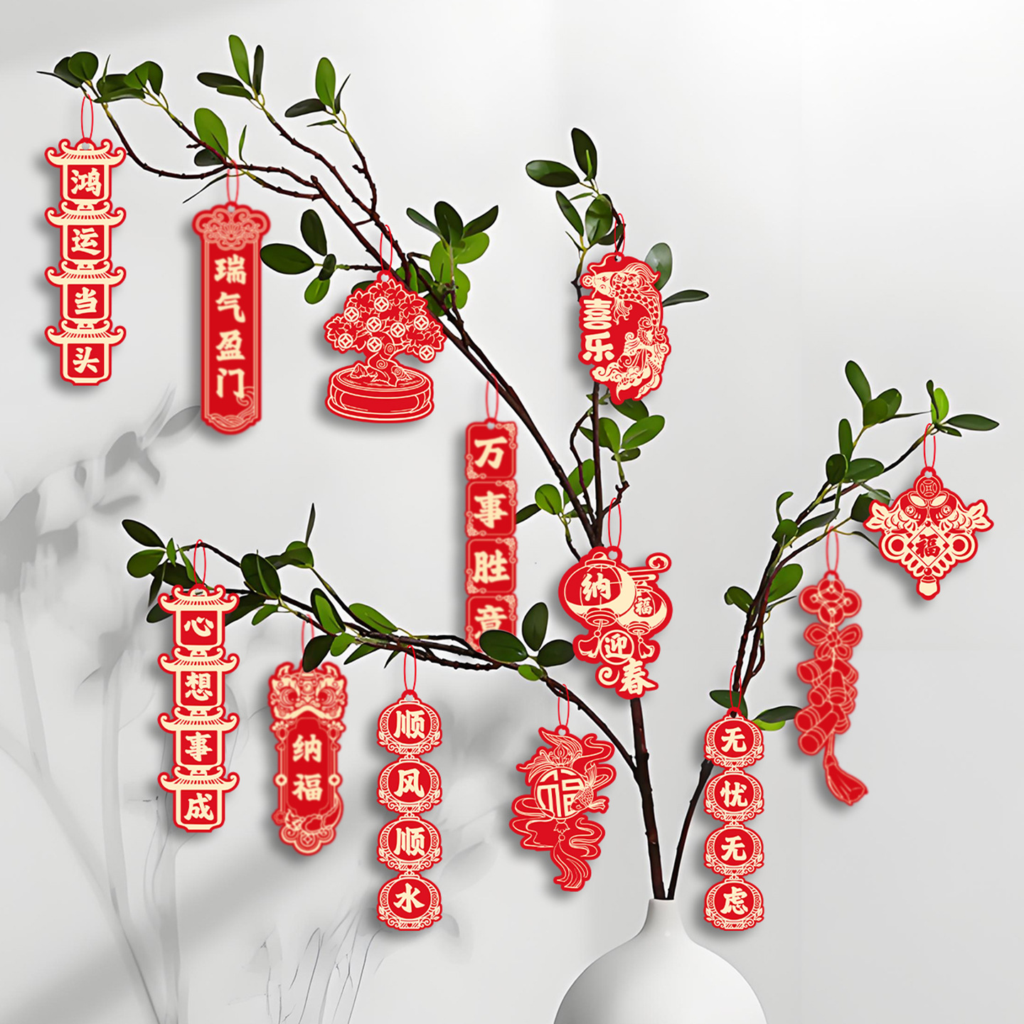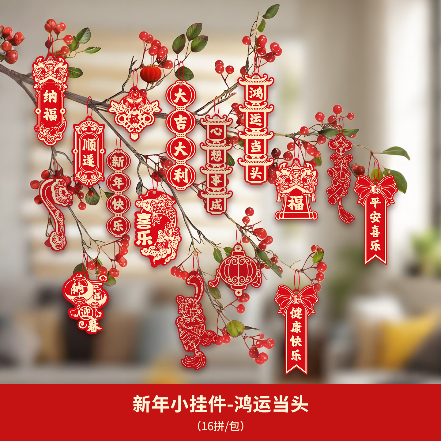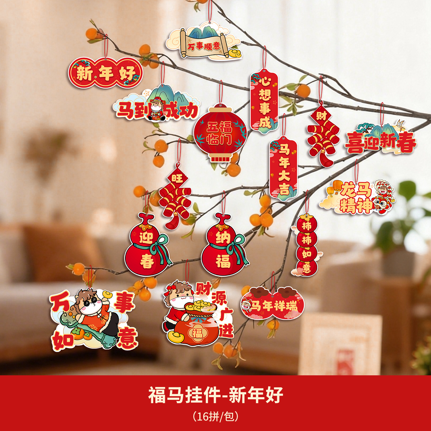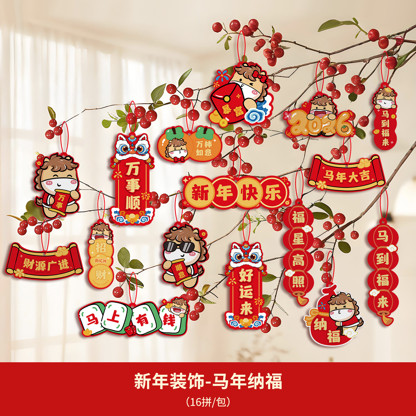 2026春节装饰新年挂件福字过年马年小对联客厅植物盆景挂饰批发