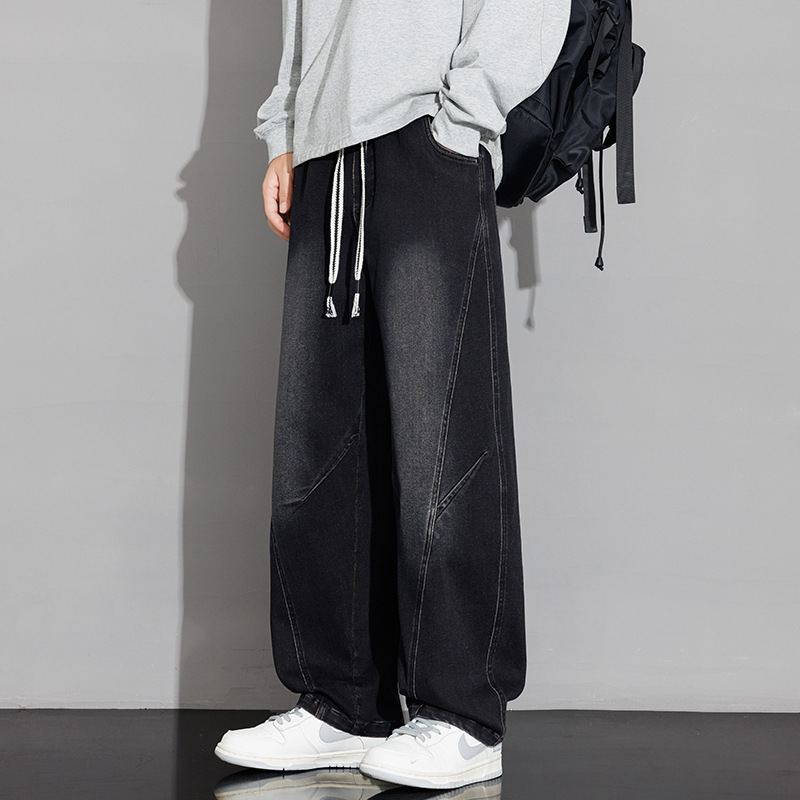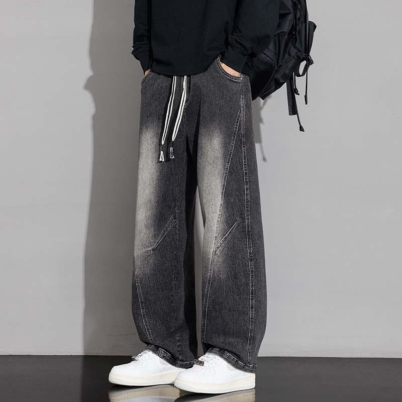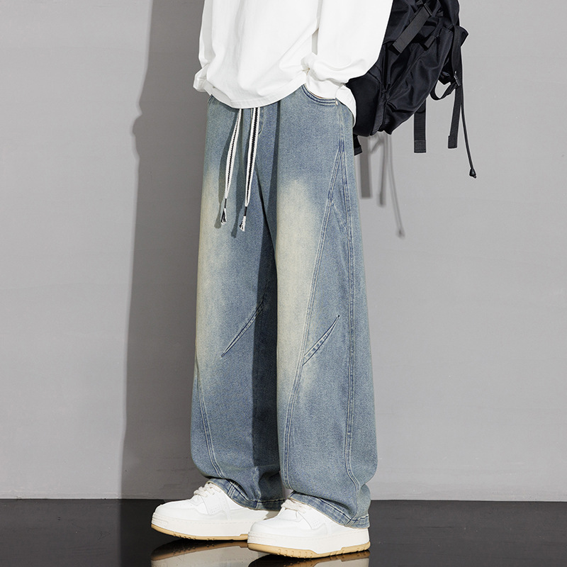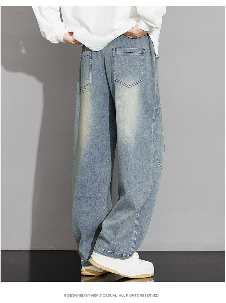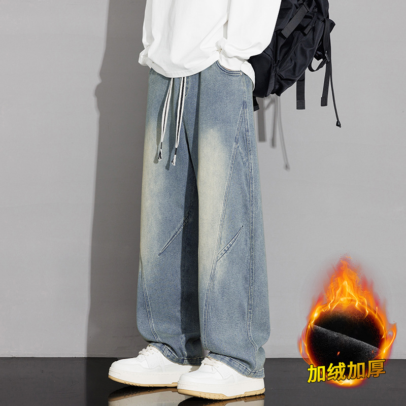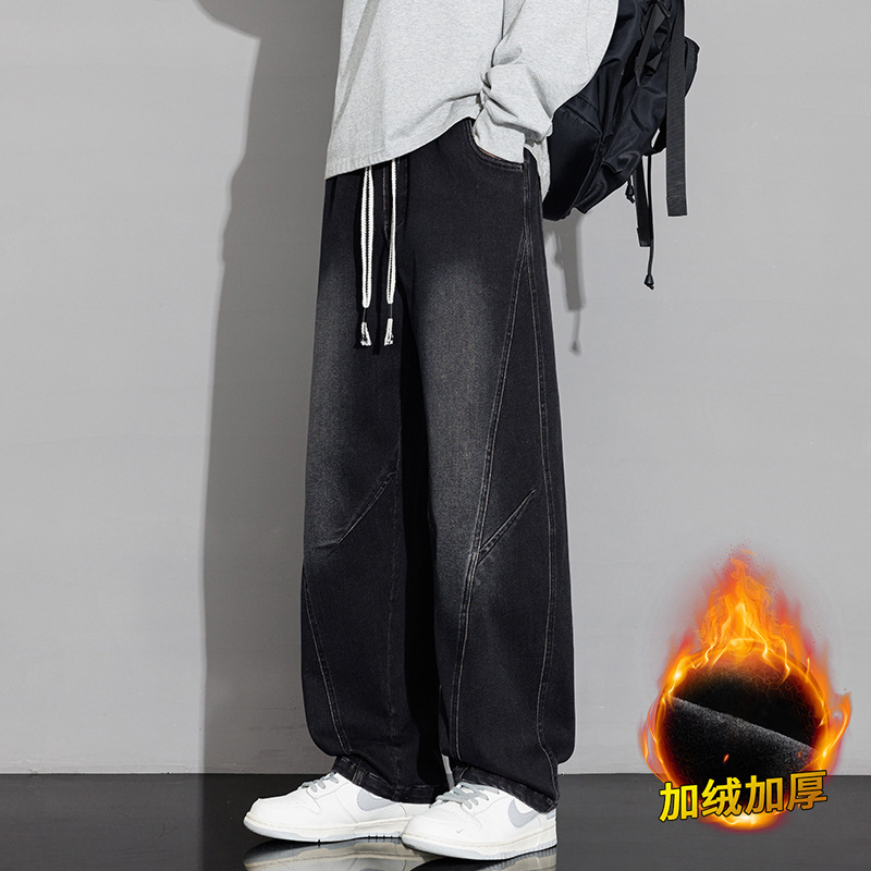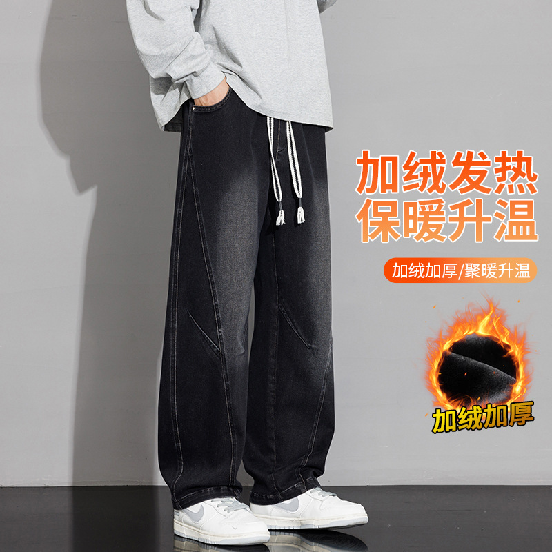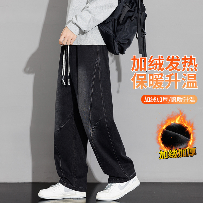 加肥加大码牛仔裤男冬季新款加绒加厚保暖宽松直筒阔腿休闲长裤子