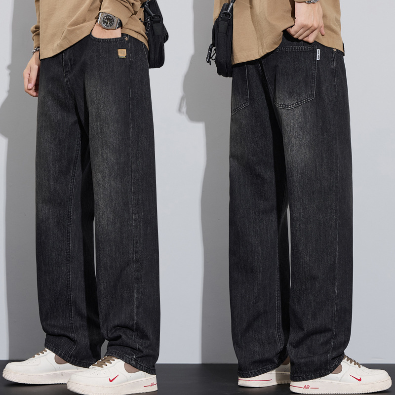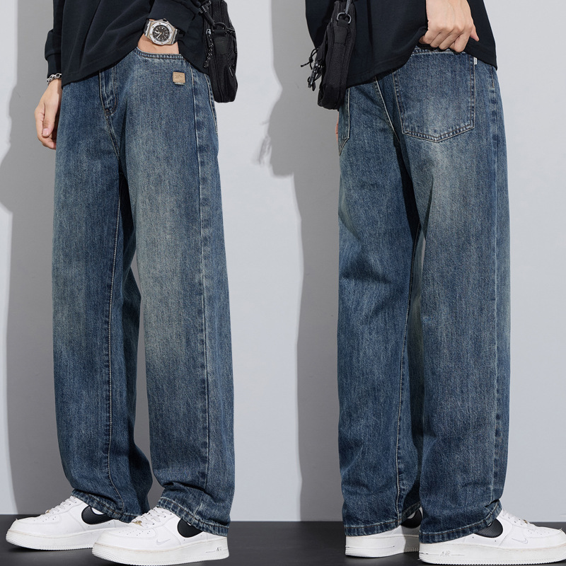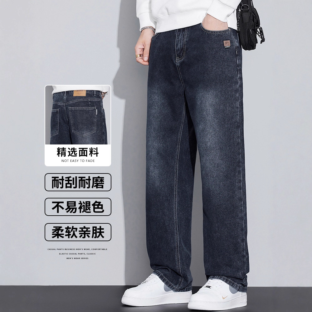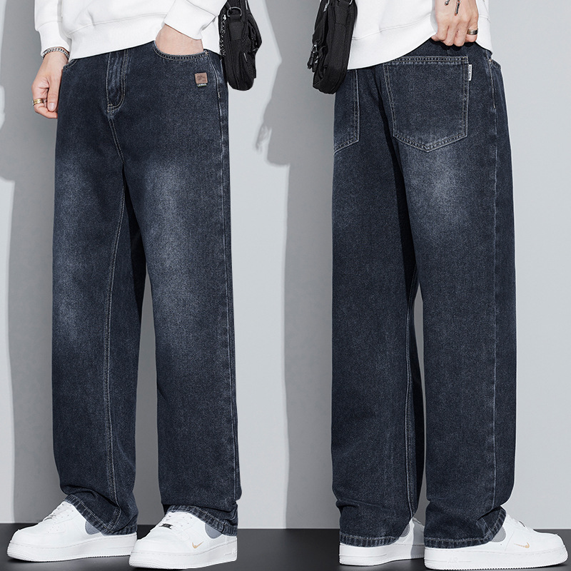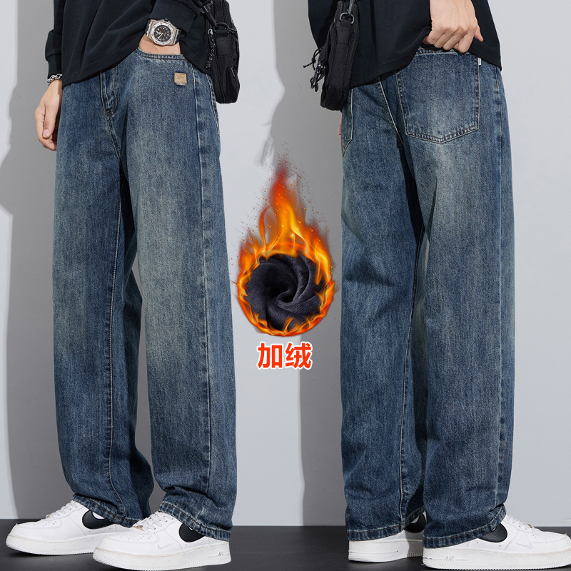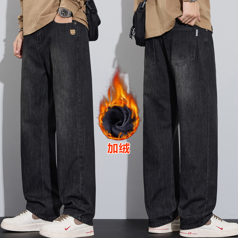 男装加绒牛仔裤男秋冬季2025新款男生休闲长裤宽松直筒阔腿裤子男
